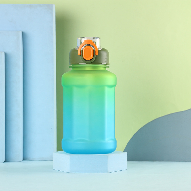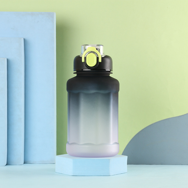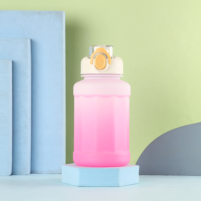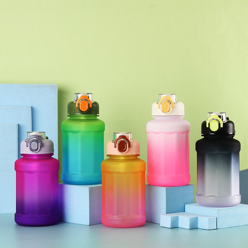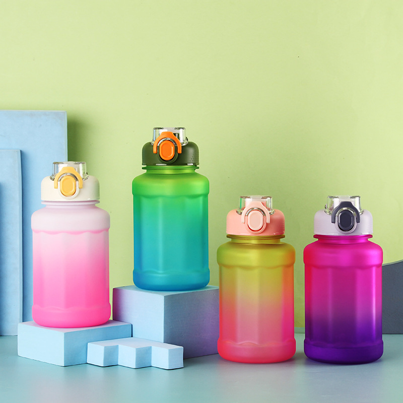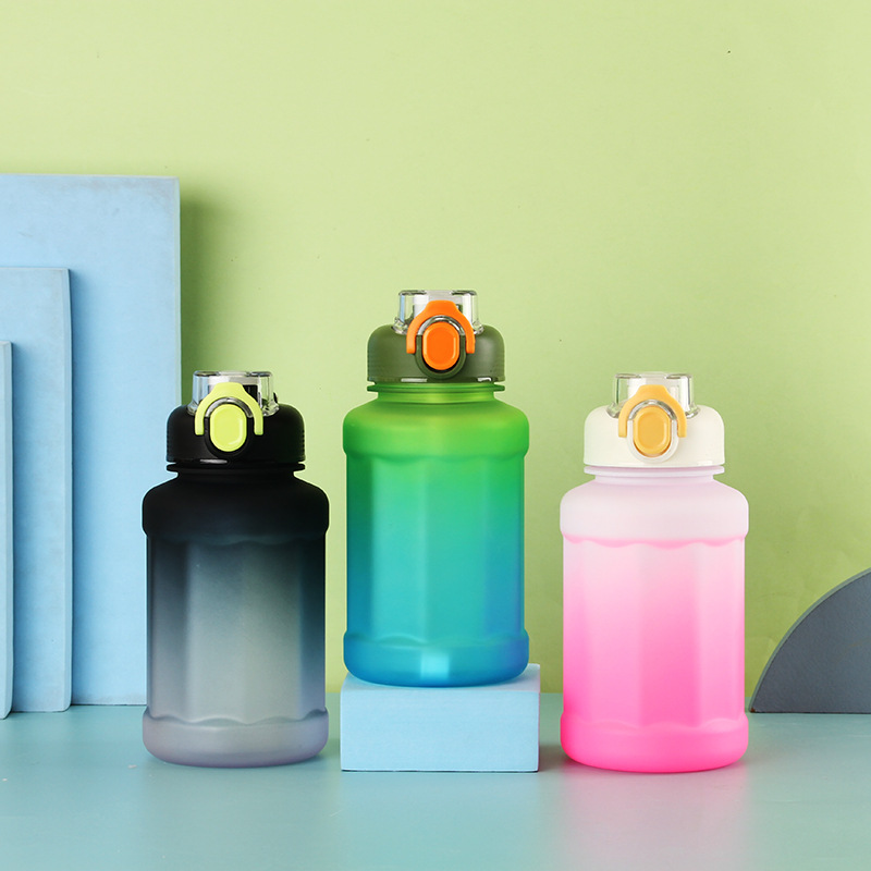 跨境渐变色磨砂水杯大容量吸管塑料杯弹跳盖户外运动健身吨吨桶