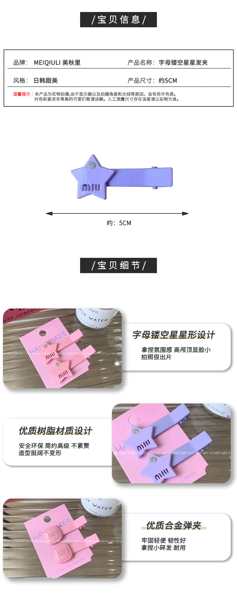 美秋里网红少女星星鸭嘴夹发饰 小众设计感甜酷辣妹五角星