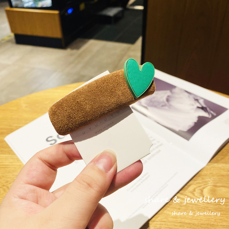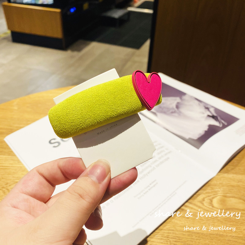 韩国彩色麂皮绒增厚海绵布艺发夹发饰撞色拼色少女爱心边夹bb夹