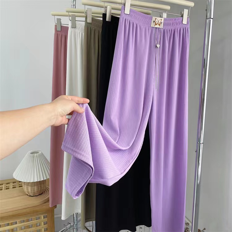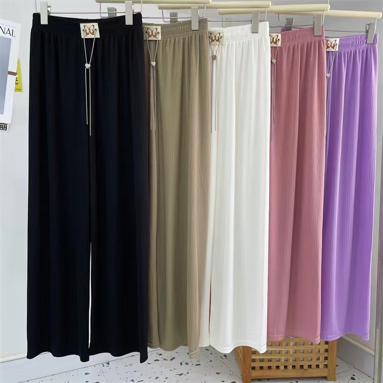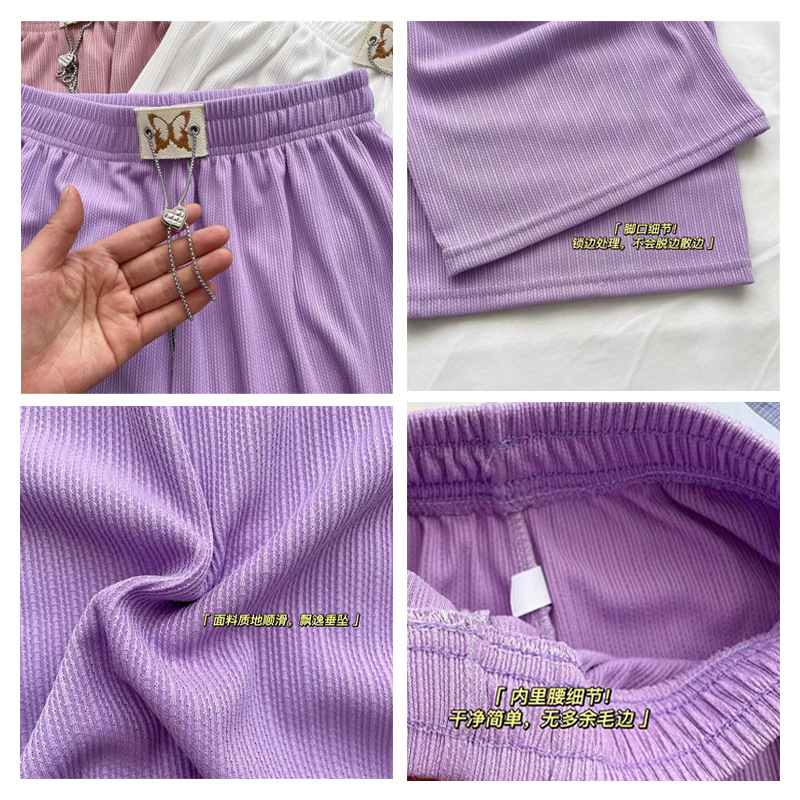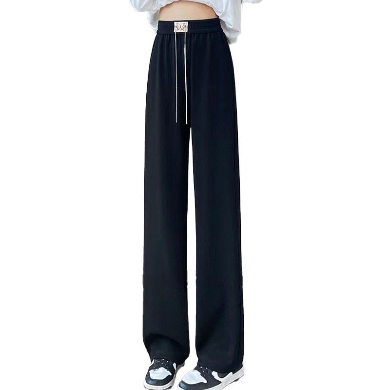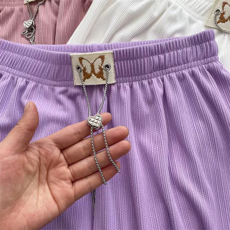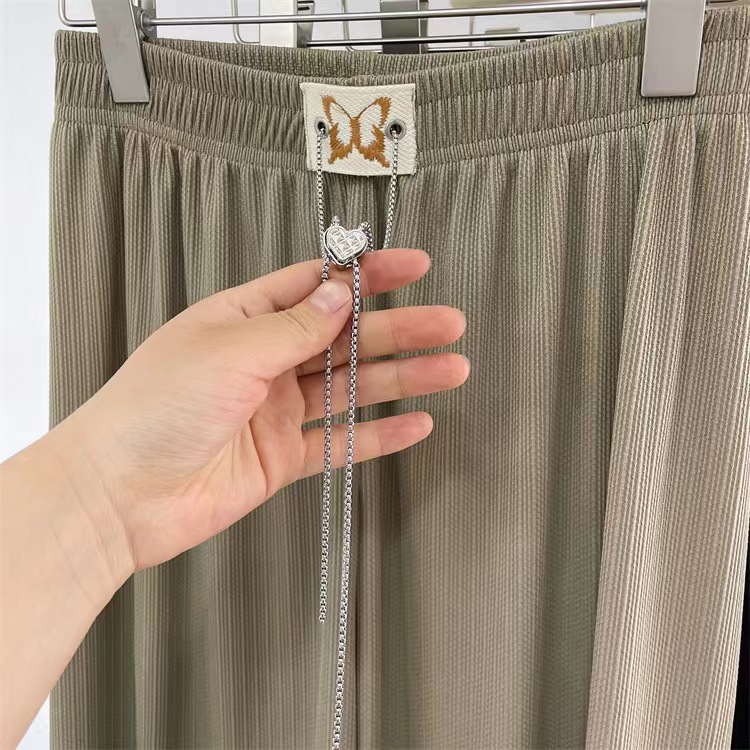 窄版阔腿裤女蝴蝶爱心链条抽绳休闲时尚垂感拖地闪光条直筒阔腿裤