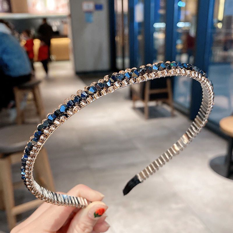 本发箍款式时尚百搭,,采用优质水晶,精工鱼线穿制而成,6色可选,宽约0.9cm,周长约39cm,弹性极好,适合各种大小头佩戴