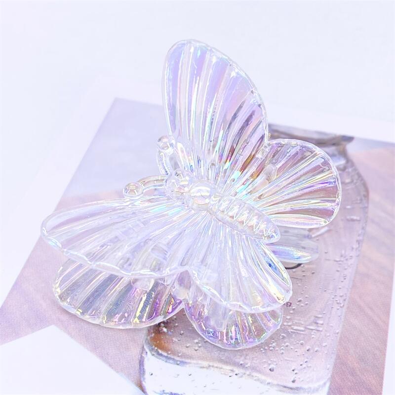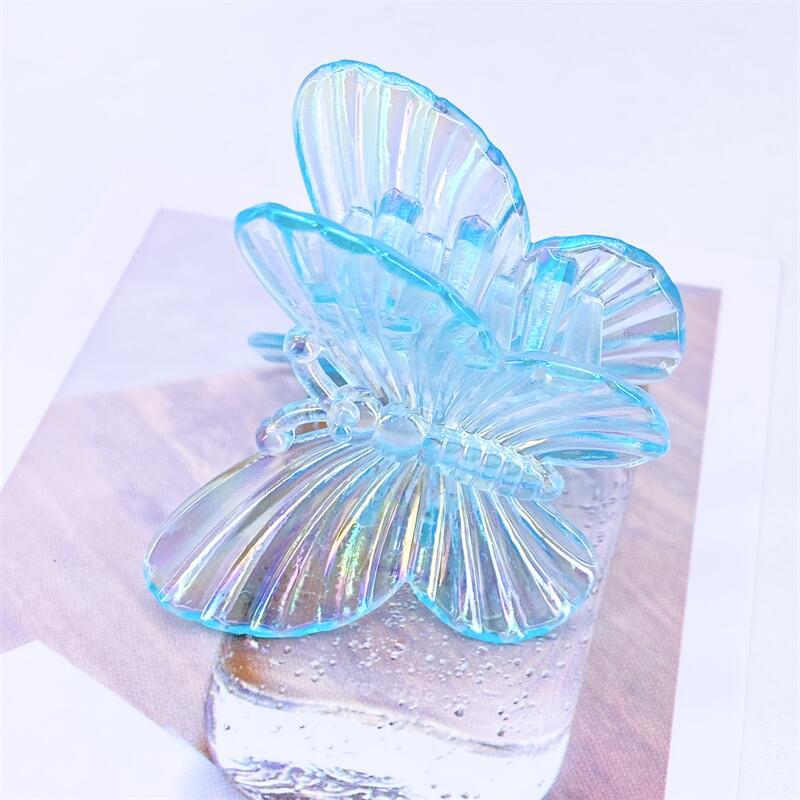 人鱼姬水晶蝴蝶盘发爪透明鲨鱼夹亚克力抓夹镭射5cm发夹头饰女孩