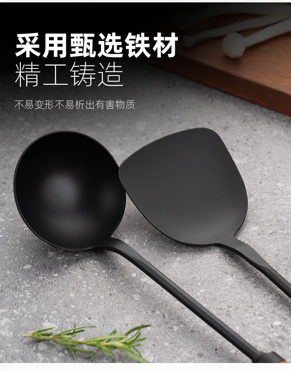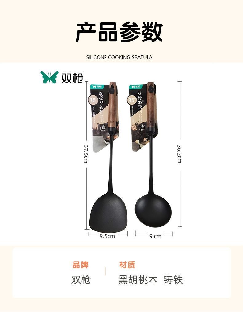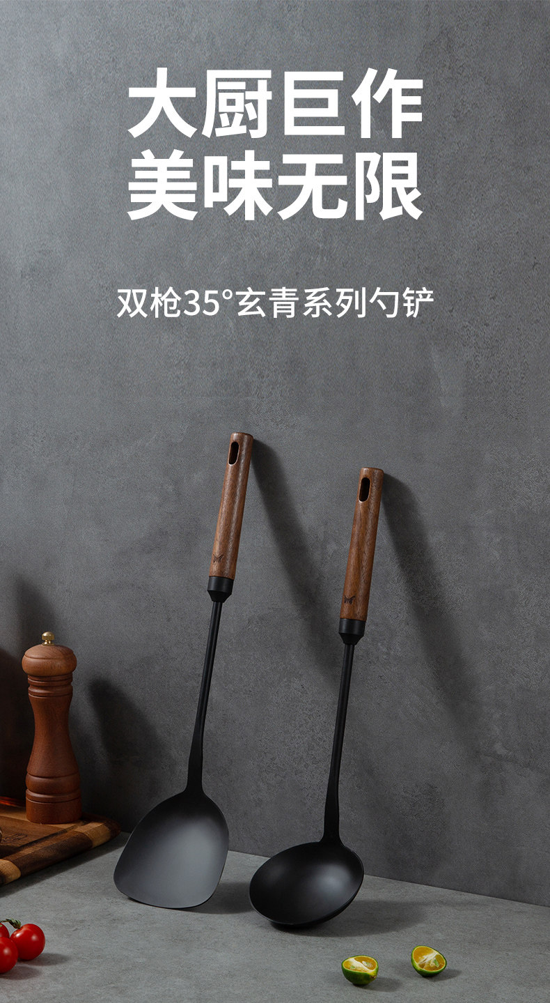 双枪35度玄青锅铲家用木柄铁铲小红书商超款炒勺锅勺汤勺炒菜铲子
