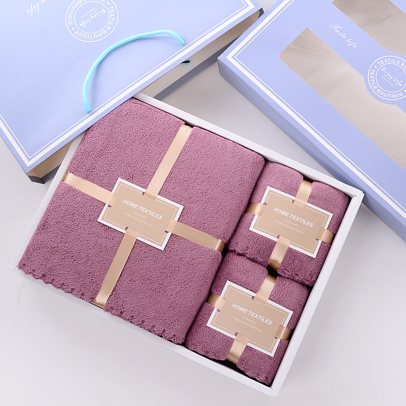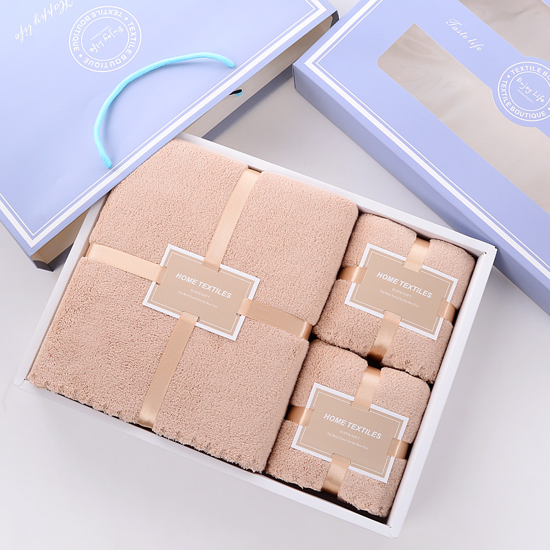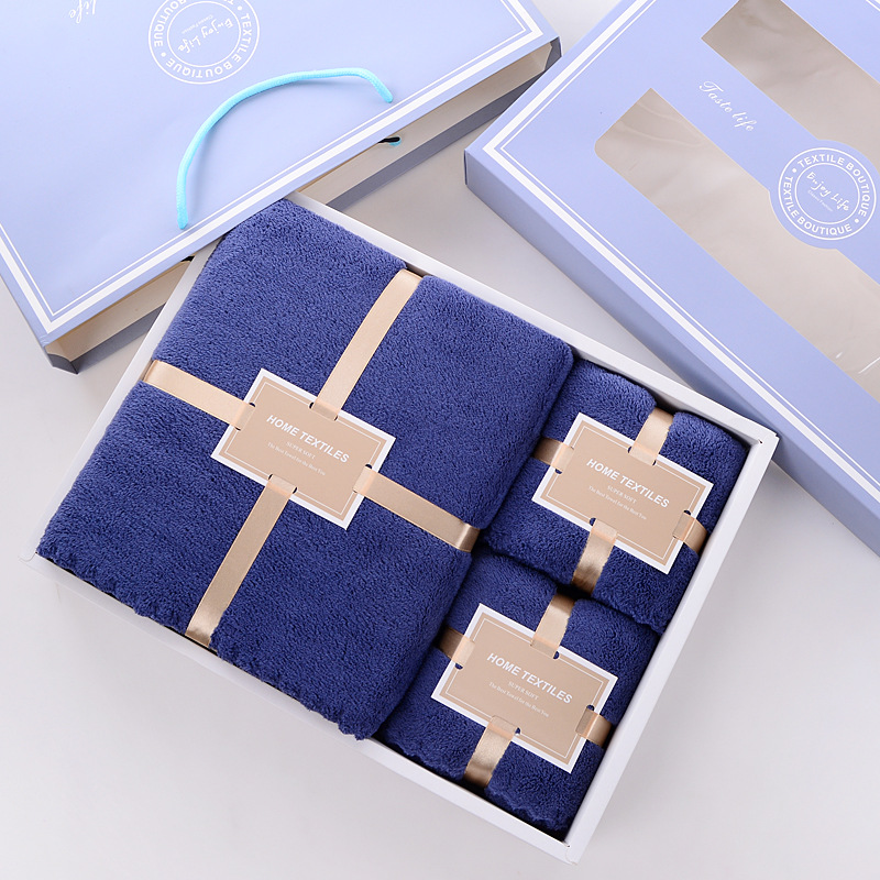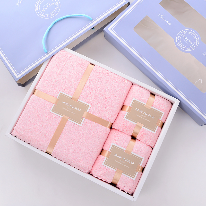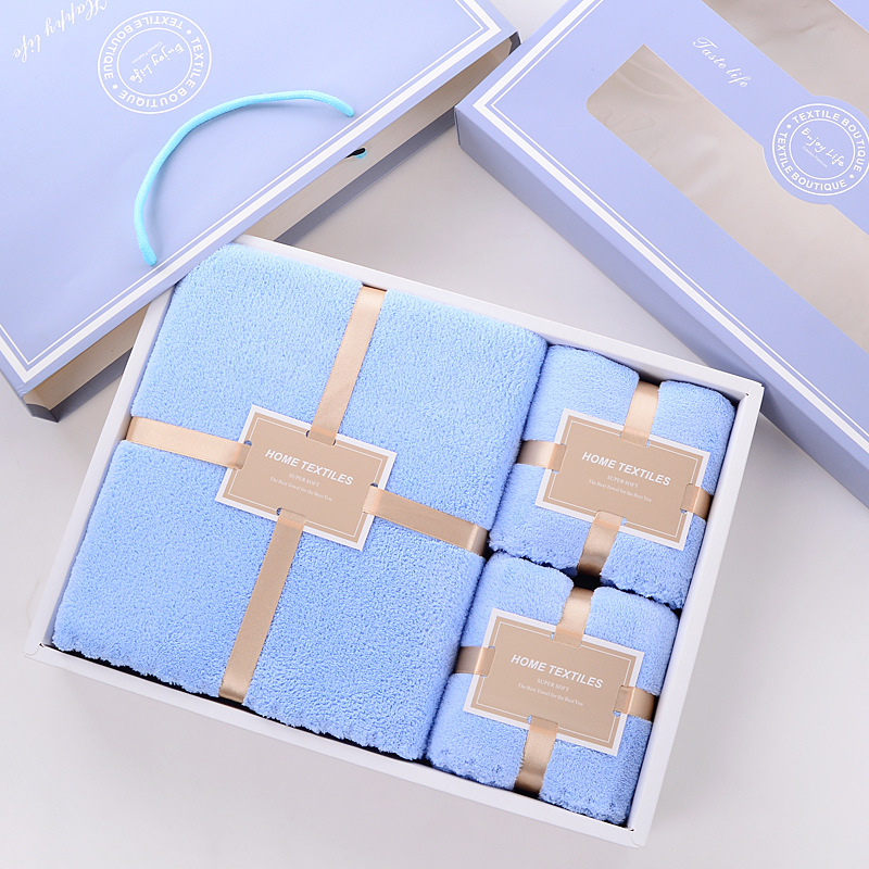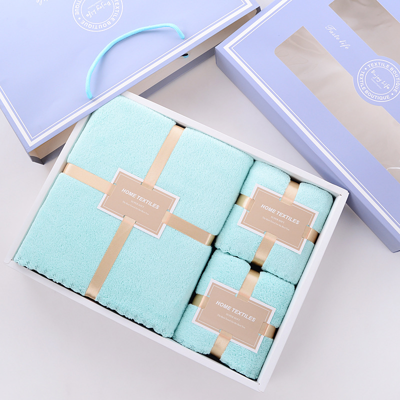 毛巾浴巾礼品盒亲子三件套婚庆回礼公司赠品婚庆寿宴可定制logo