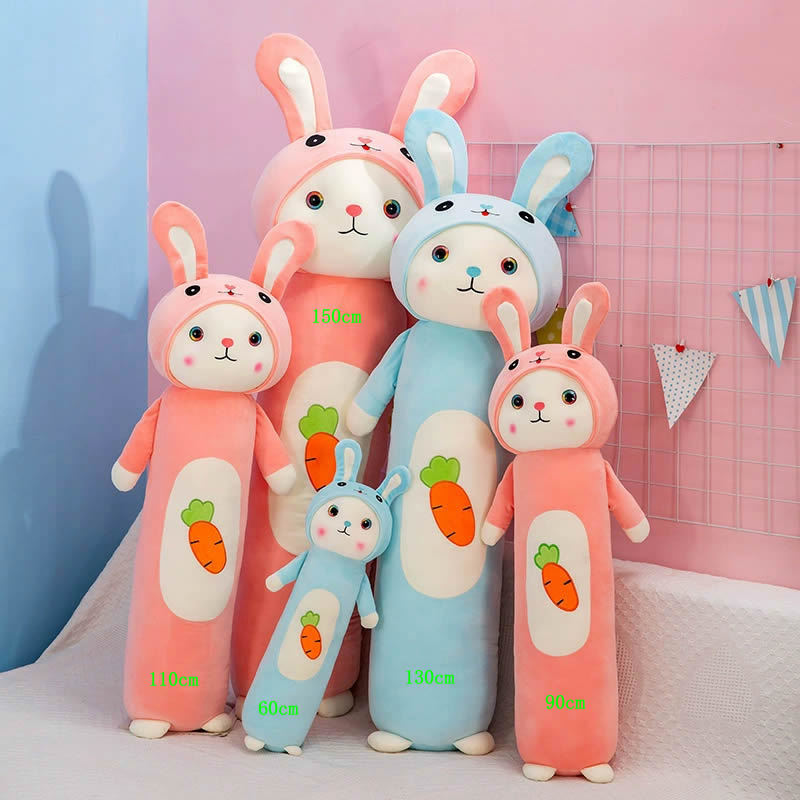 跨境批发胡萝卜兔子长条抱枕公仔 外贸精品水晶大眼兔子毛绒玩具