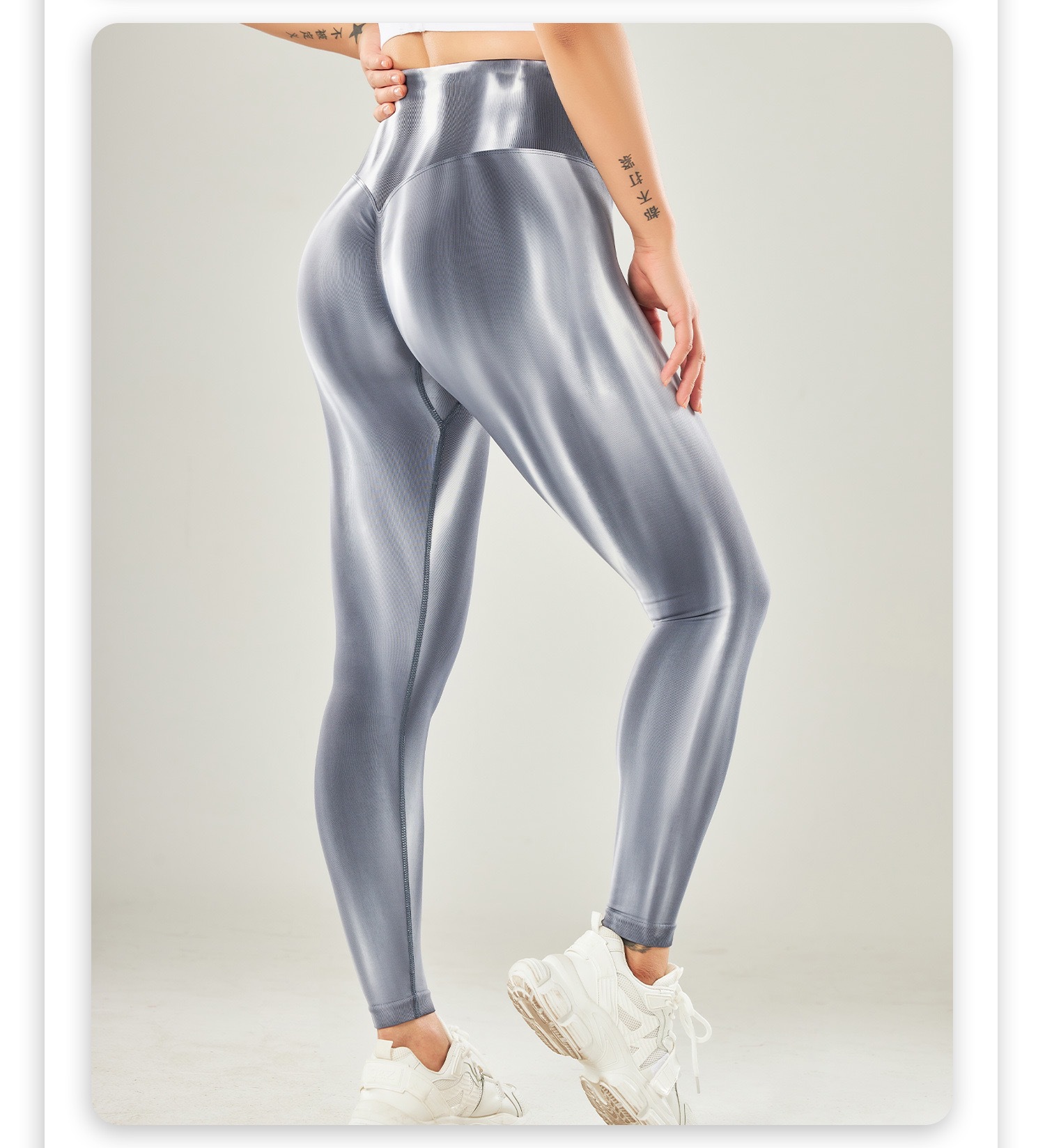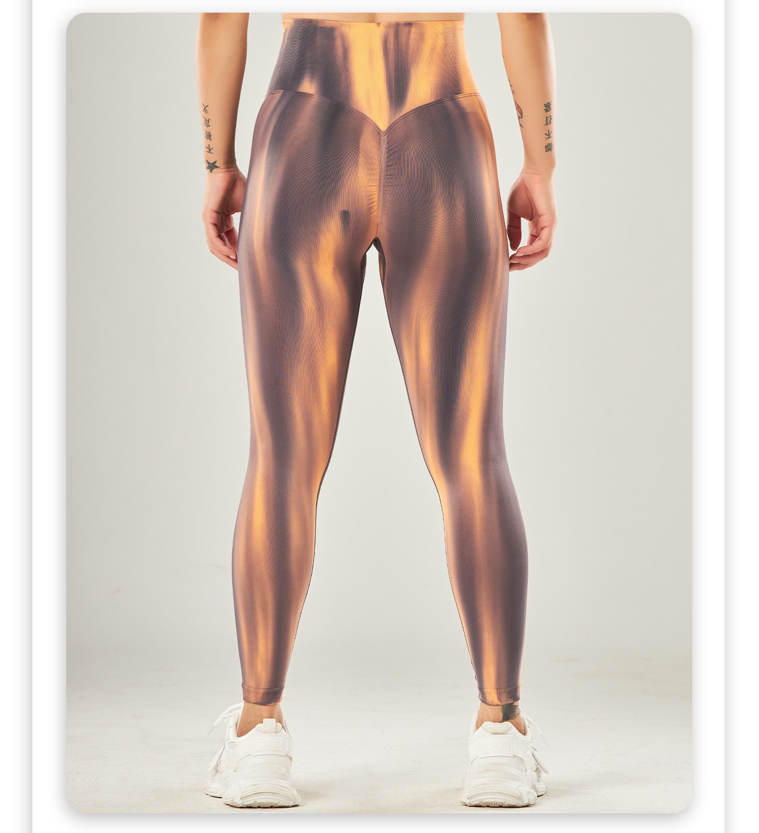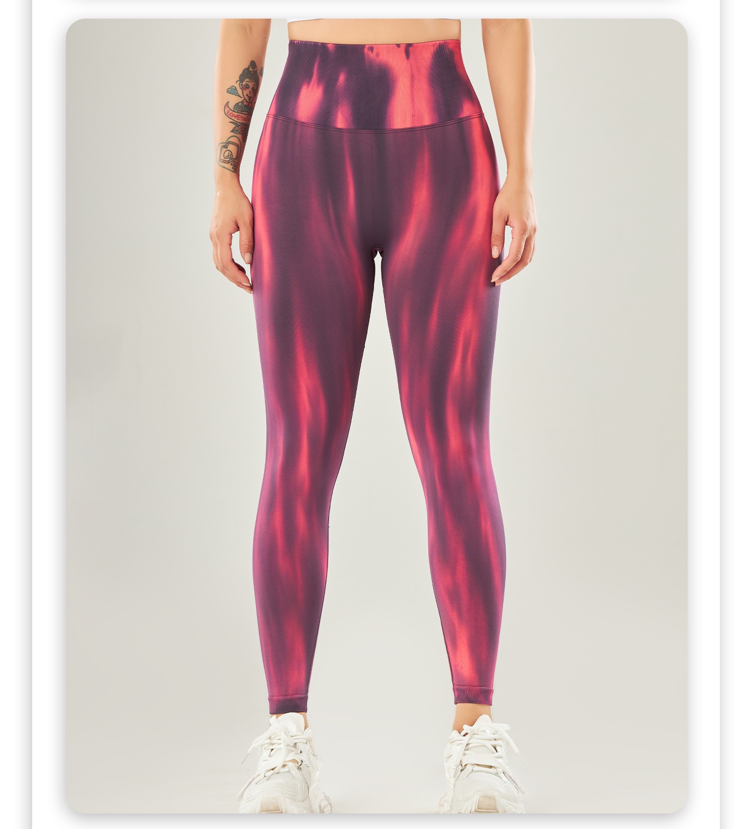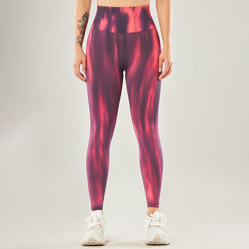 新款跨境扎染极光色瑜伽运动长裤无缝高腰蜜桃臀透气吸汗紧身长裤
