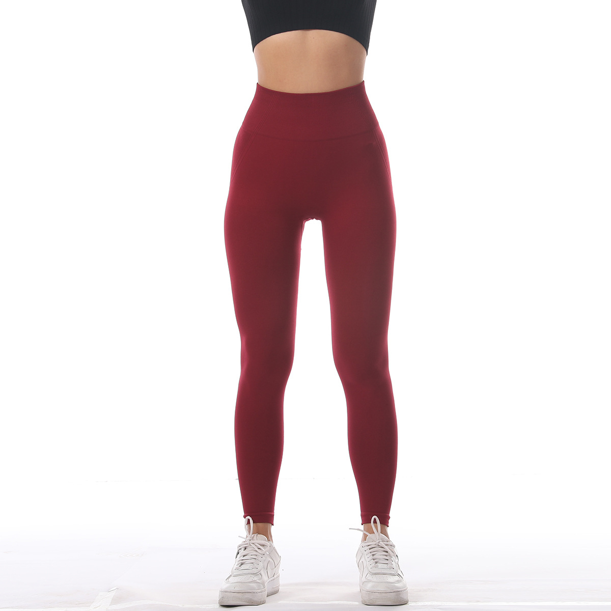 新款 欧美高弹无缝健身瑜伽运动长裤 蜜桃臀跑步健身高腰裤紧身裤
