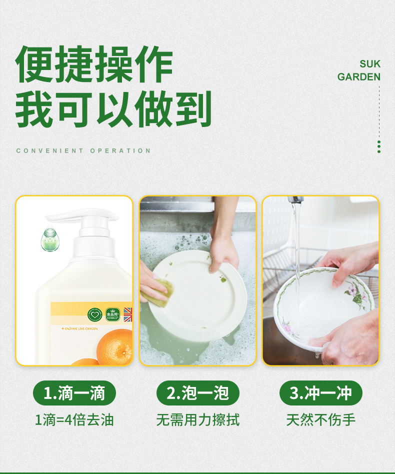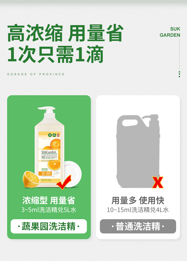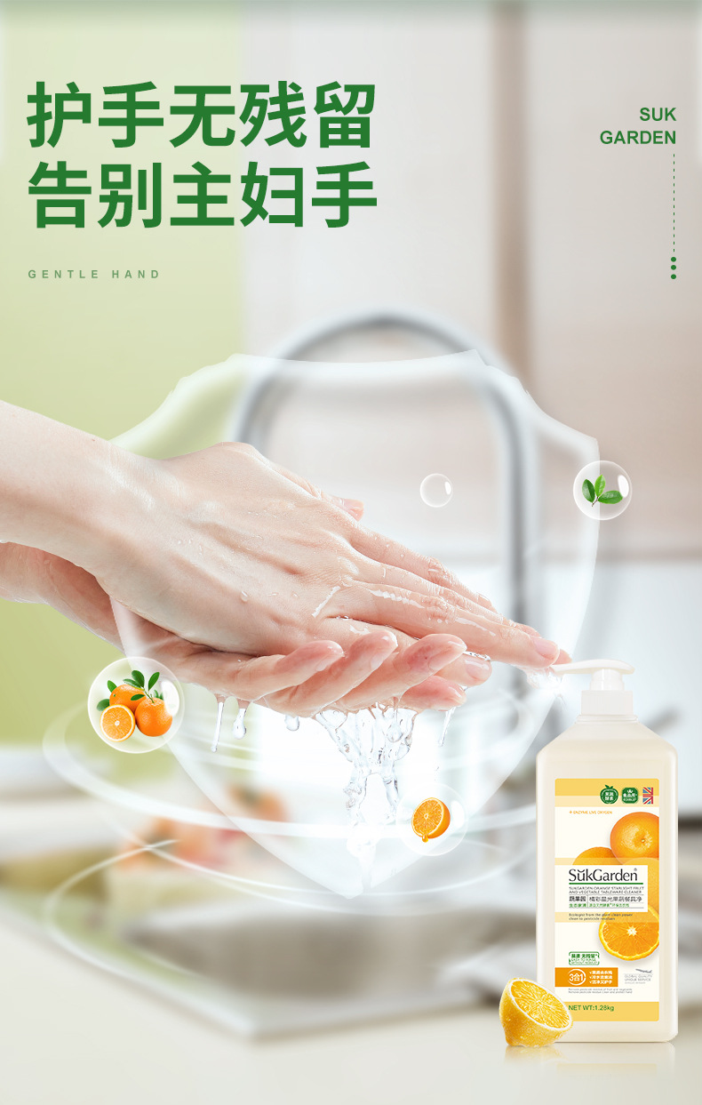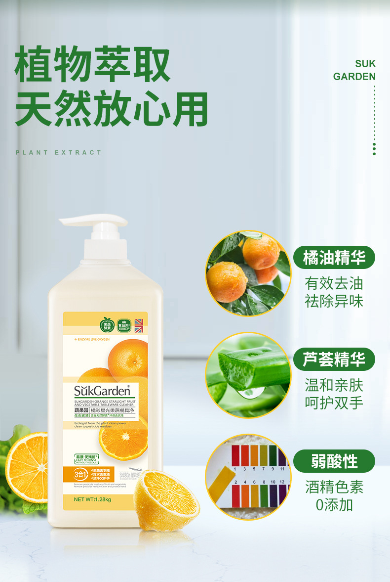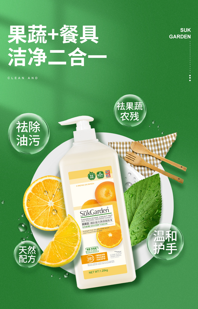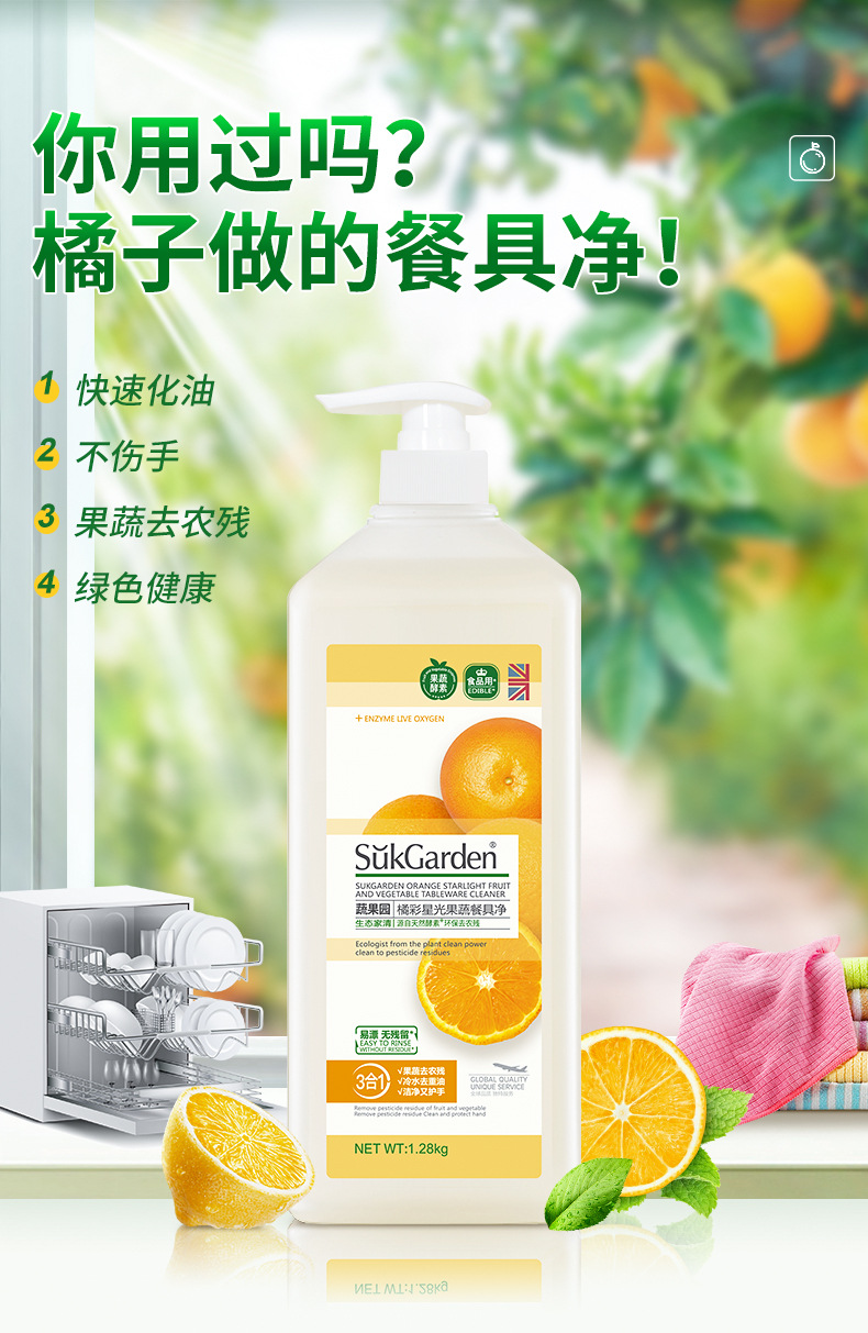 蔬果园1.28kg洗洁精橘采星光果蔬餐具净温和护手杀菌去农残家用