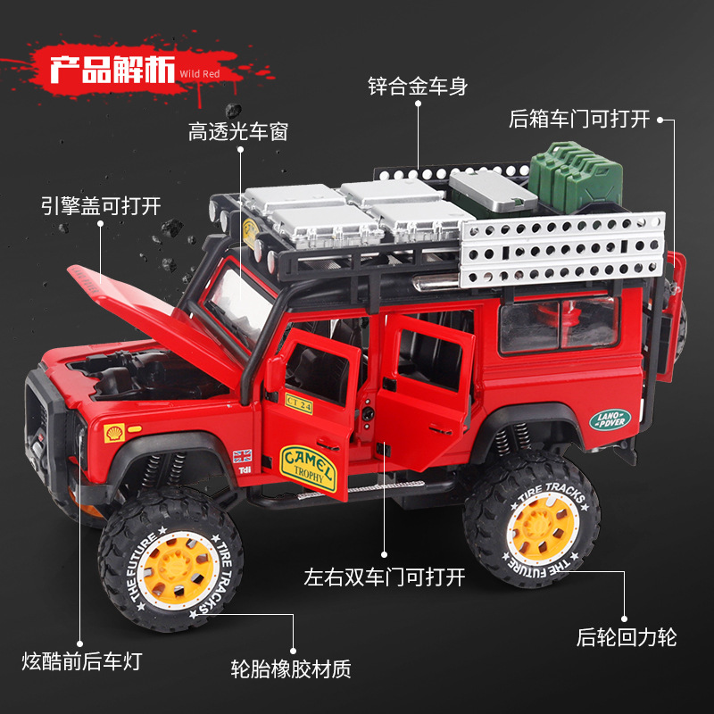 合金车模骆驼路虎1:28卫士汽车声光金属越野仿真回力汽车玩具