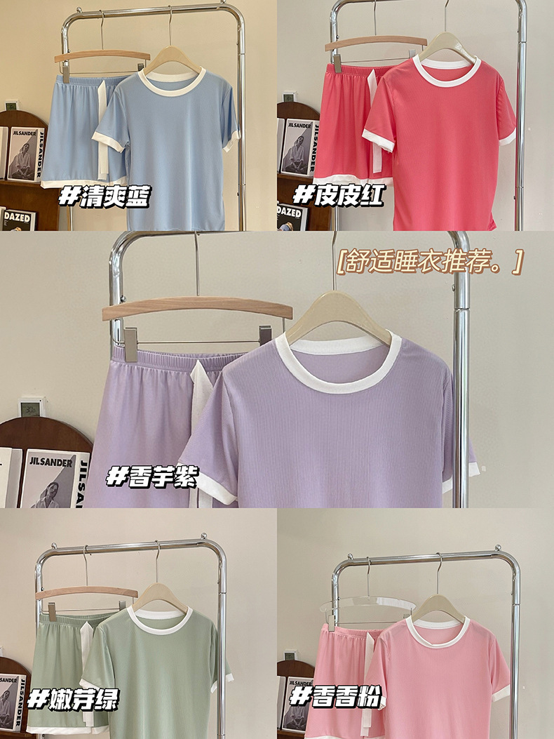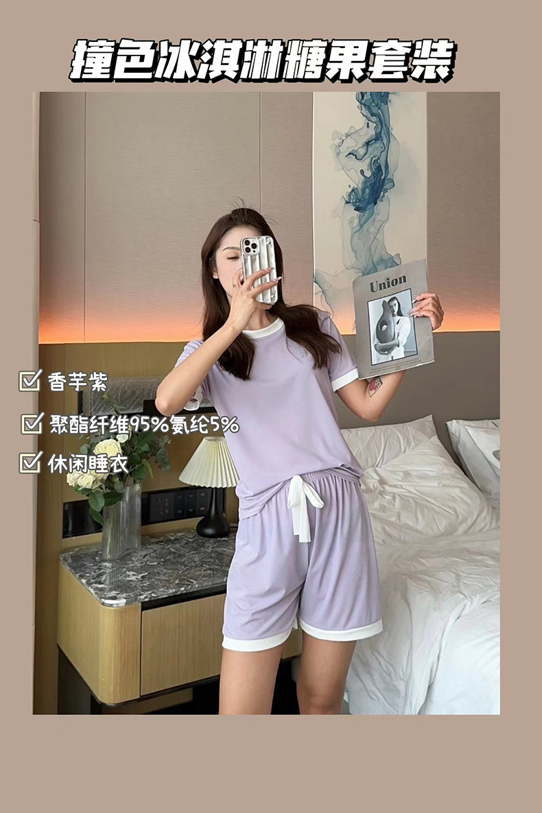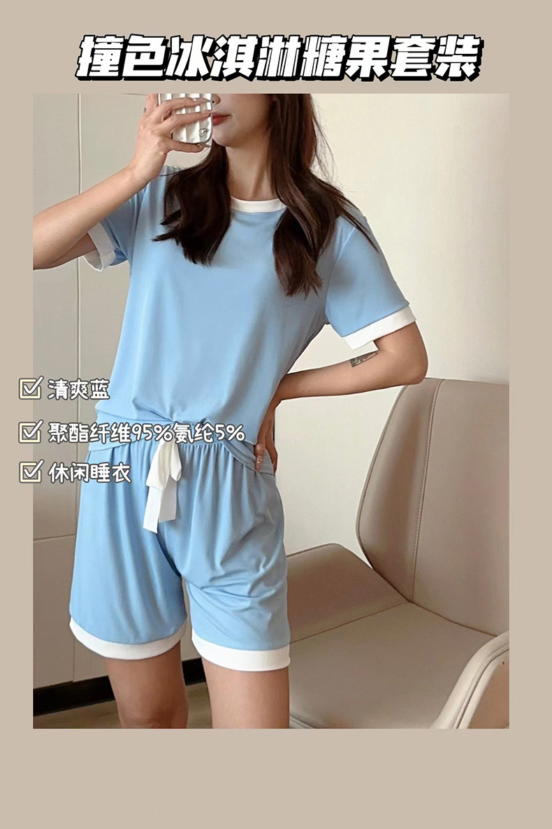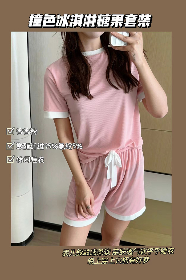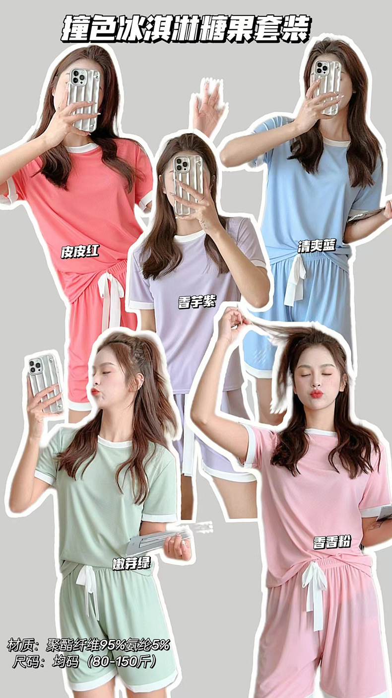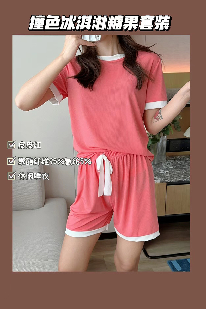 2023夏季新款撞色冰淇淋糖果套装冰丝睡衣女家居服短袖短裤两件套