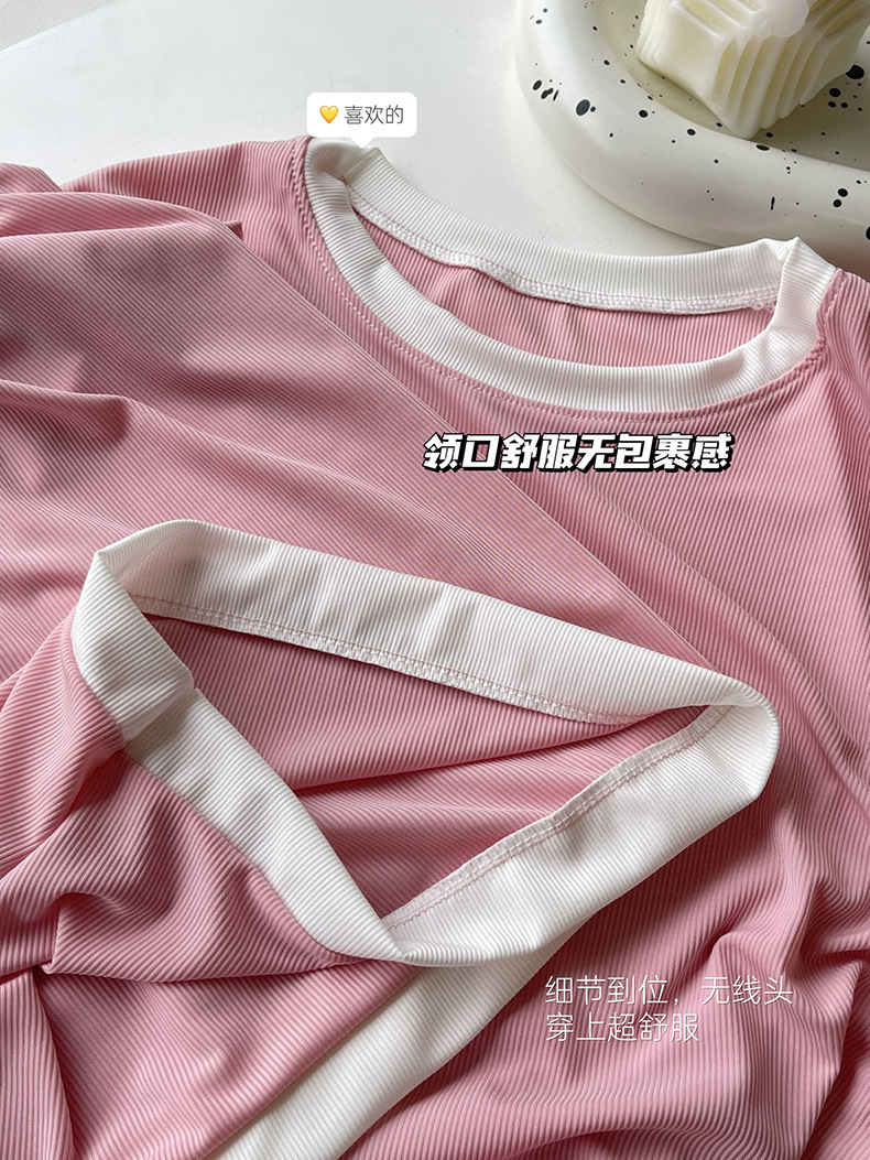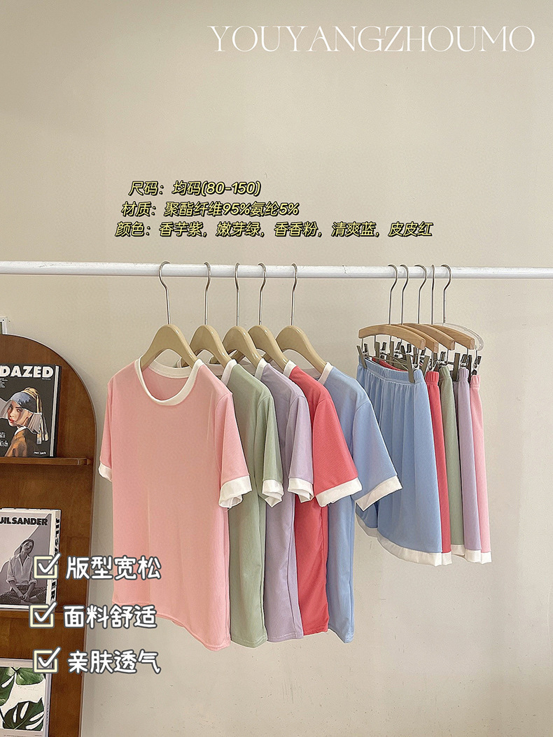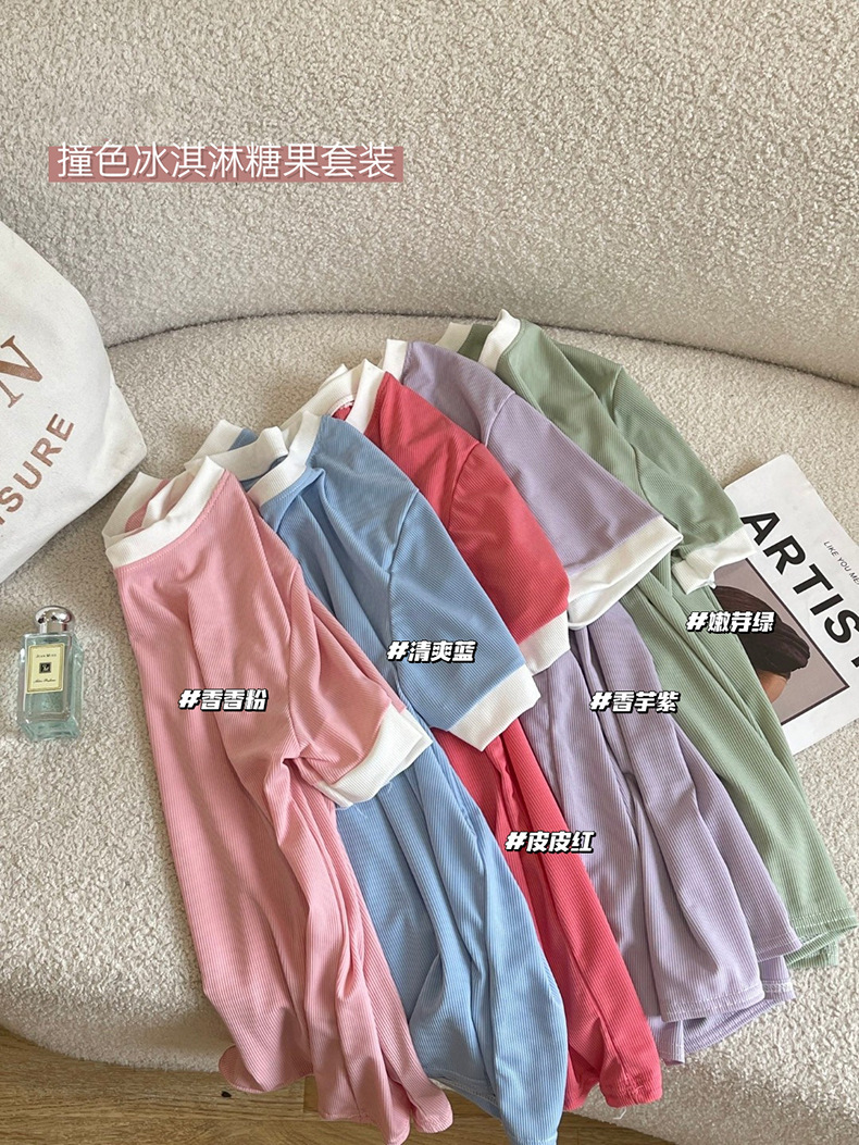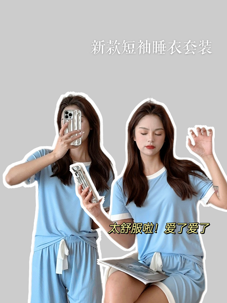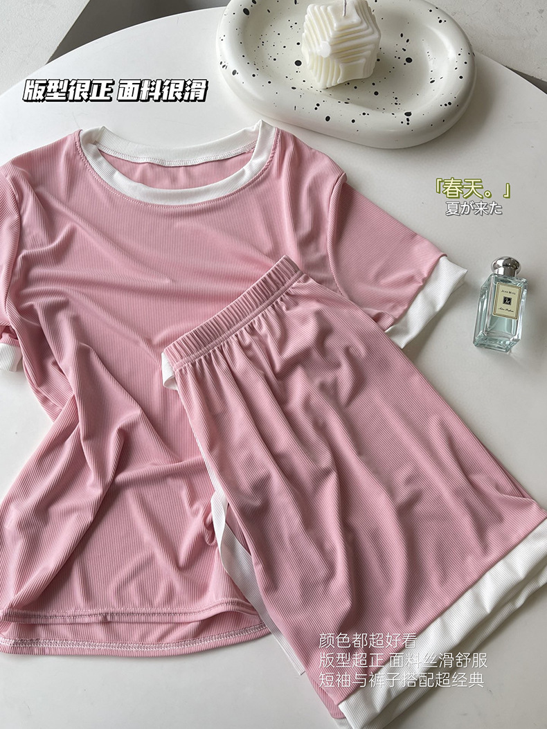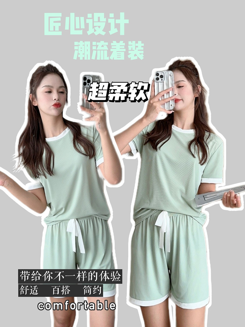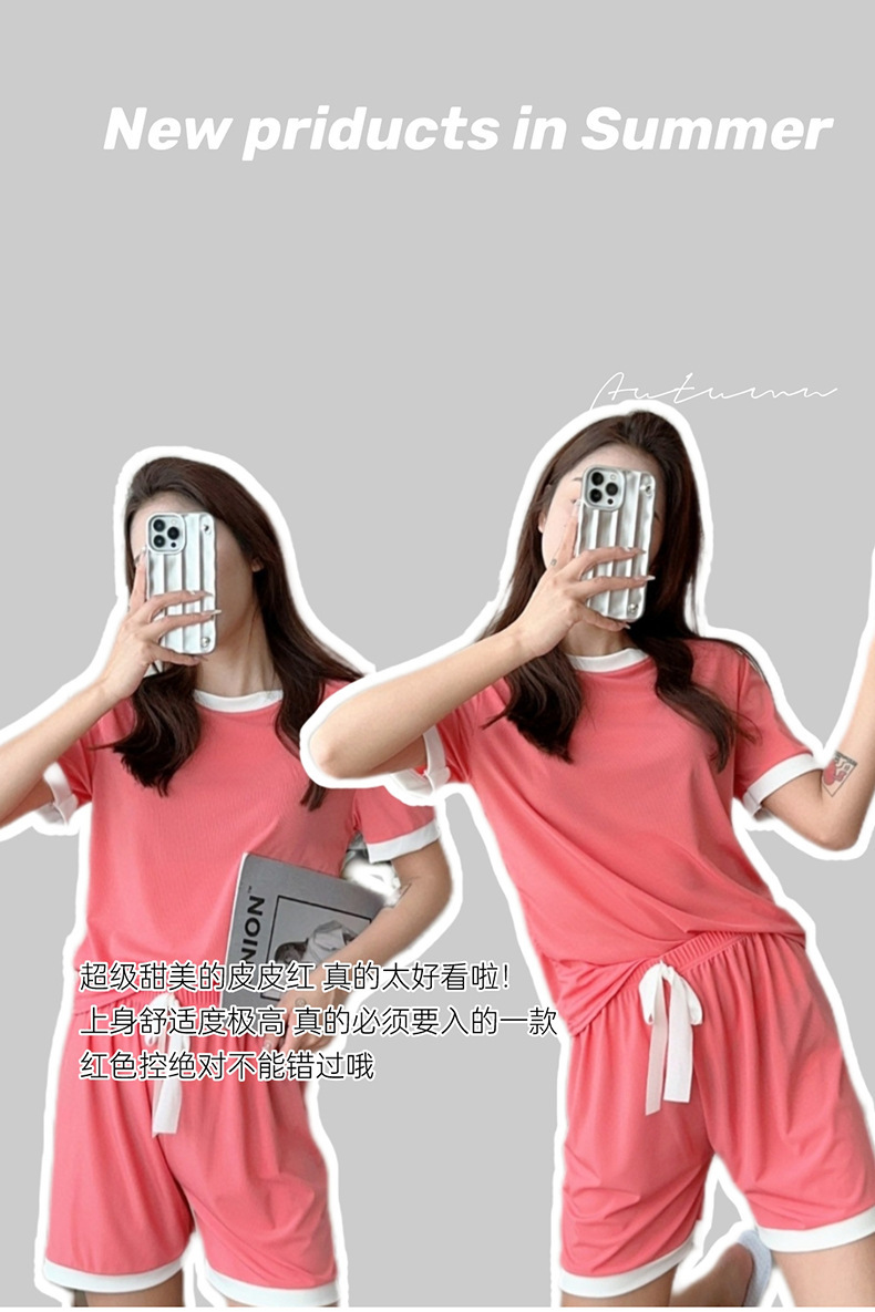 2023夏季新款撞色冰淇淋糖果套装冰丝睡衣女家居服短袖短裤两件套