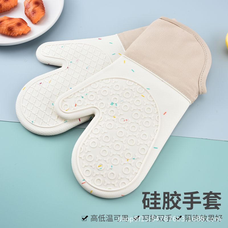 新款硅胶烘焙手套加棉双层微波炉烤箱手套厨房烘培烧烤隔热手套