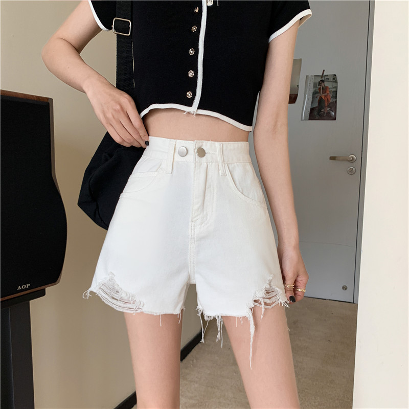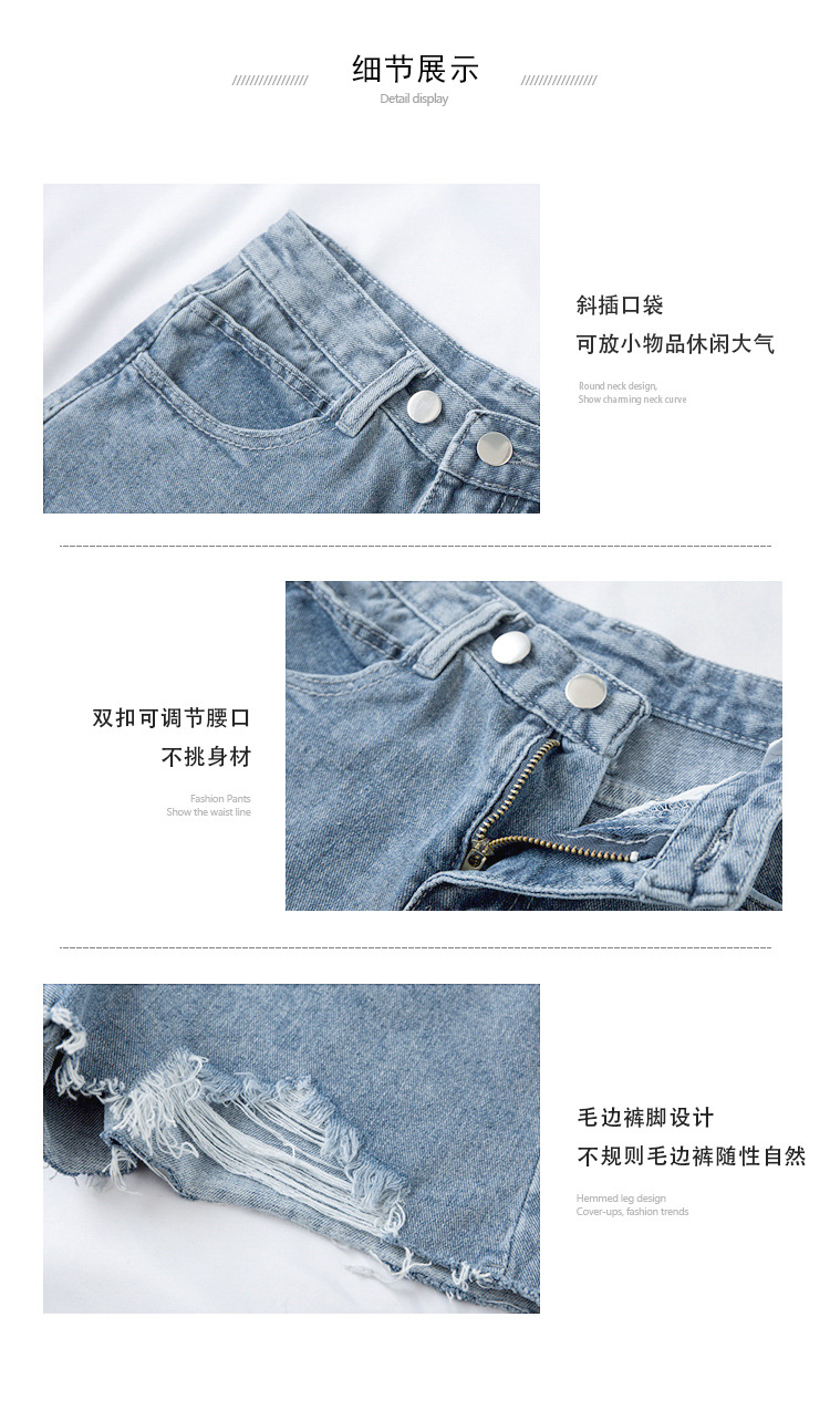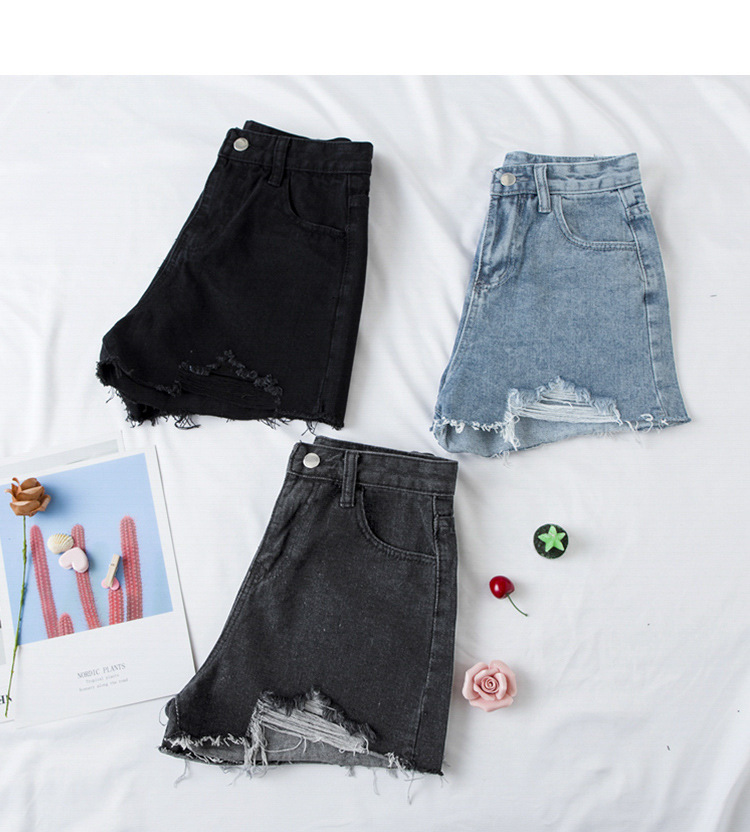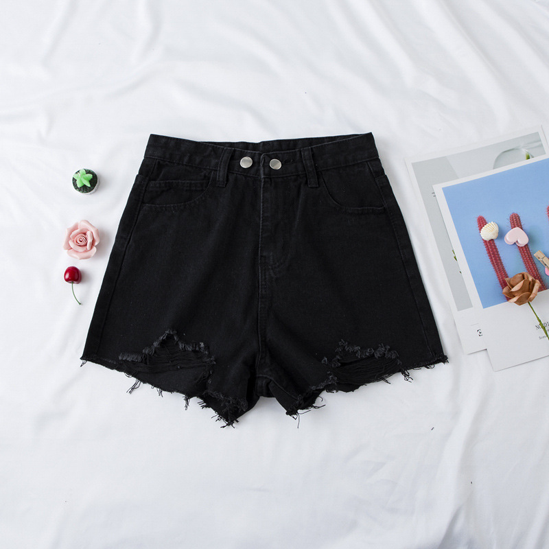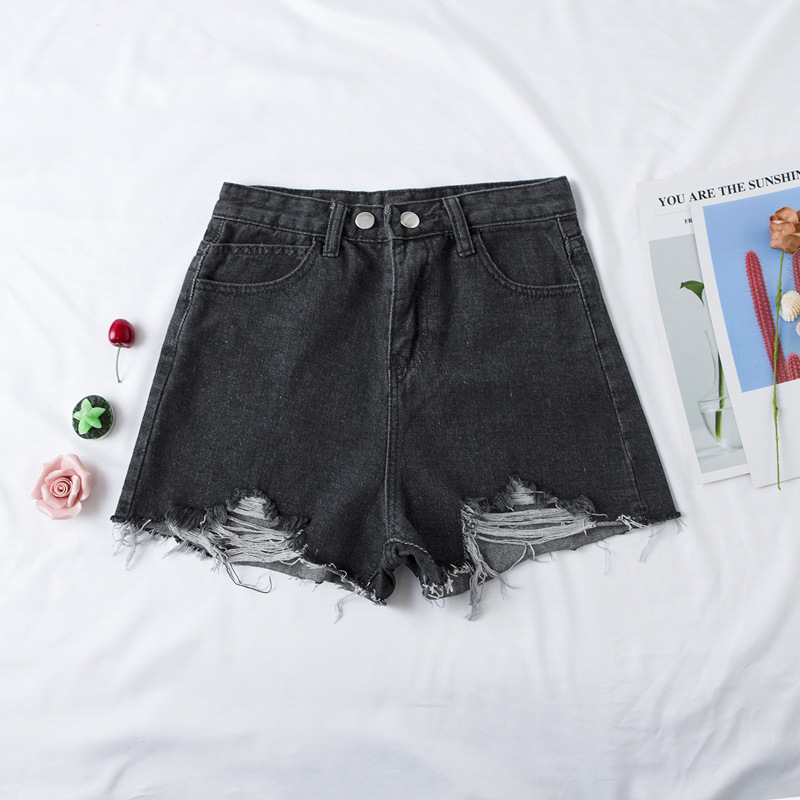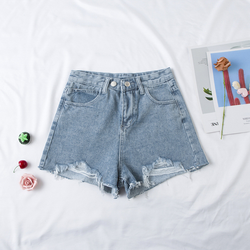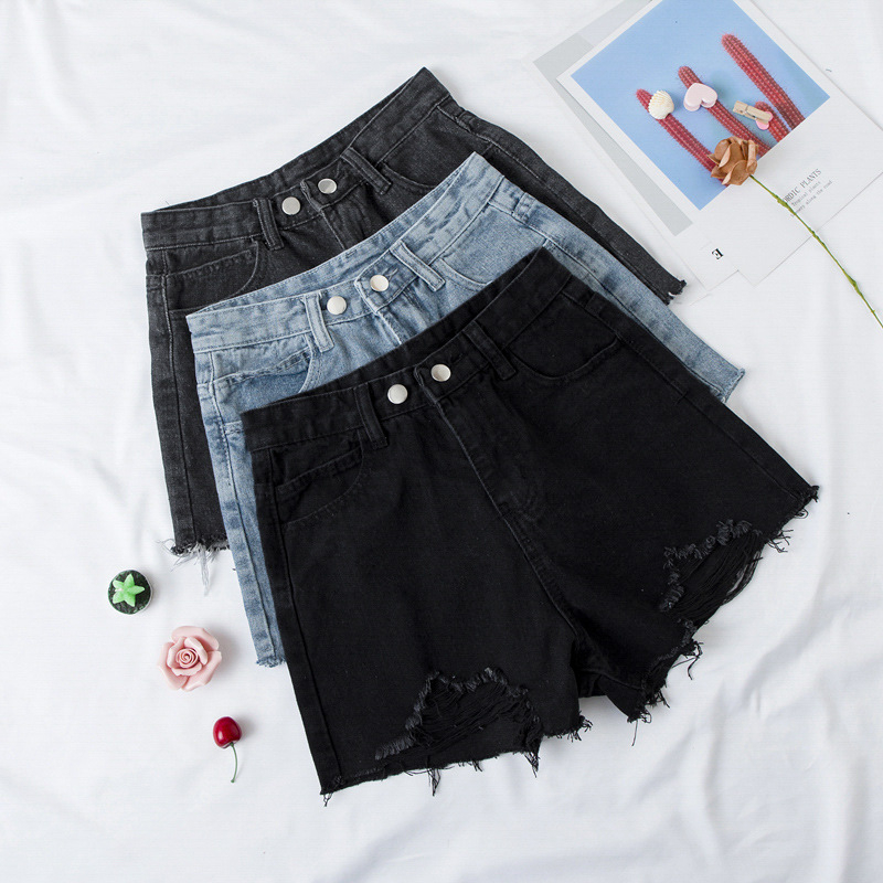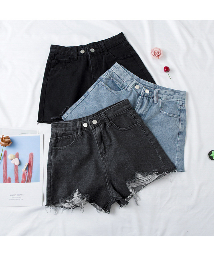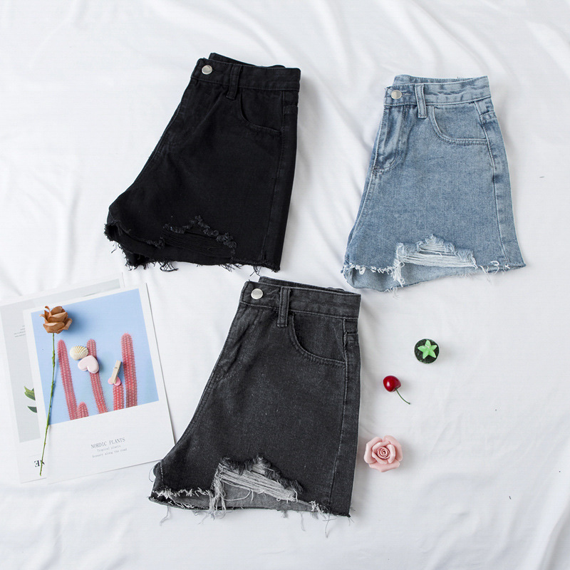 牛仔短裤女高腰夏季新款宽松毛边破洞a字显瘦阔腿辣妹热裤子春秋