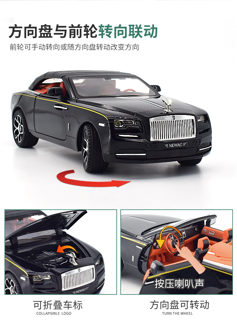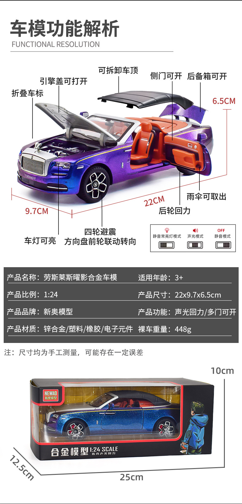 仿真劳斯矅影来斯合金轿车模型汽车回力声光儿童玩具车收藏礼品