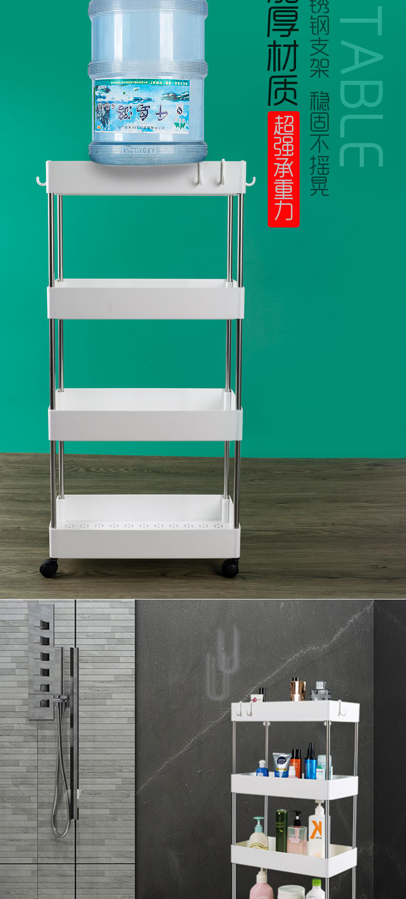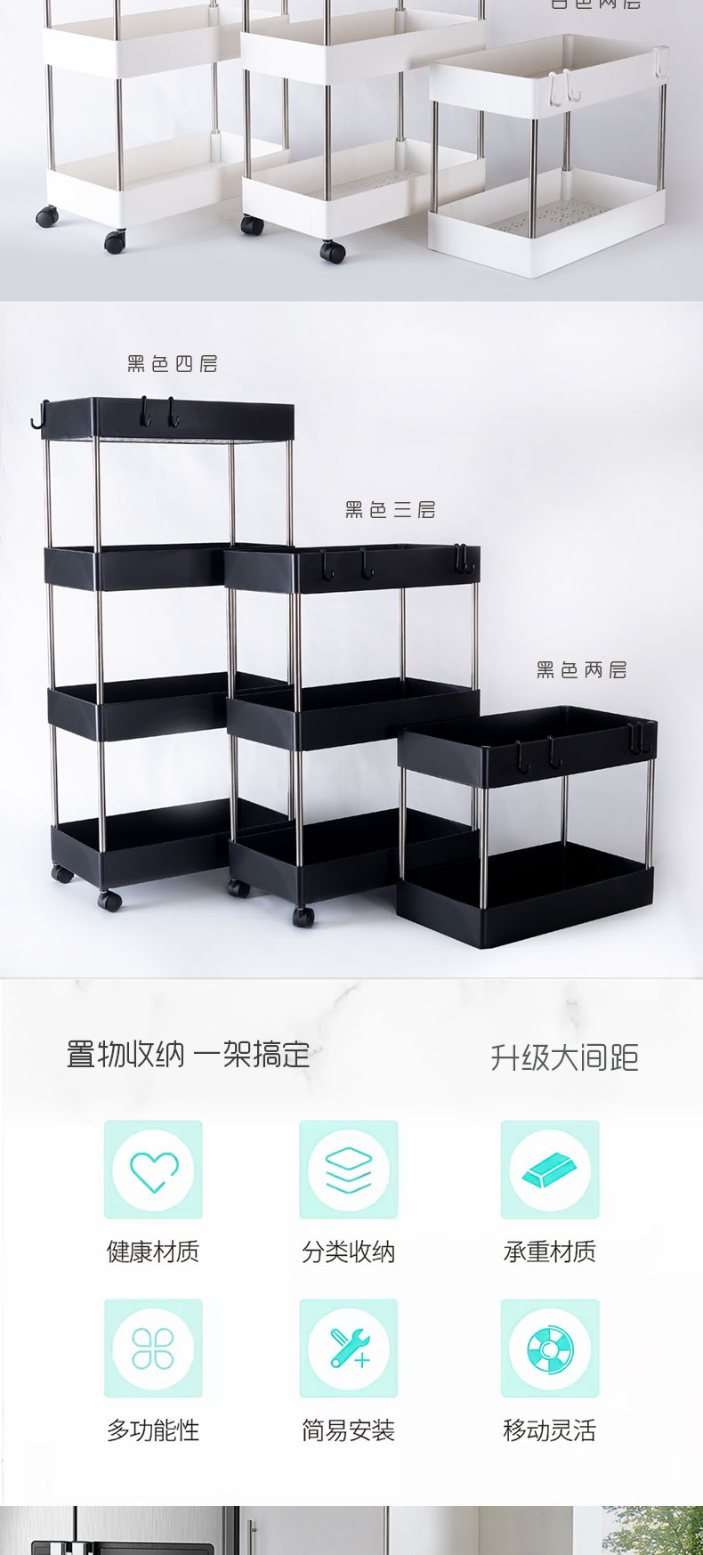 简约多功能置物架 多层可收纳卫浴厨房用品收纳架纯色可移动架子