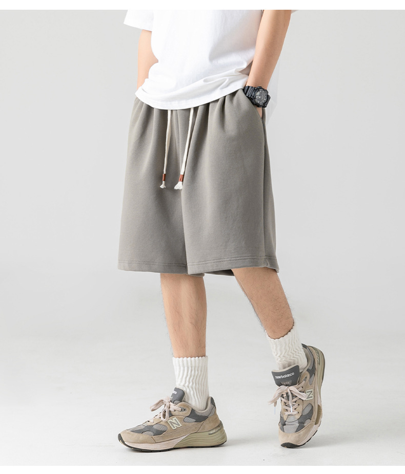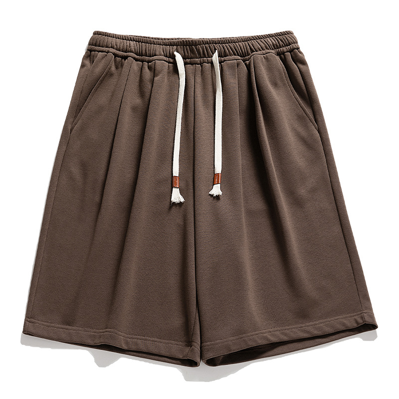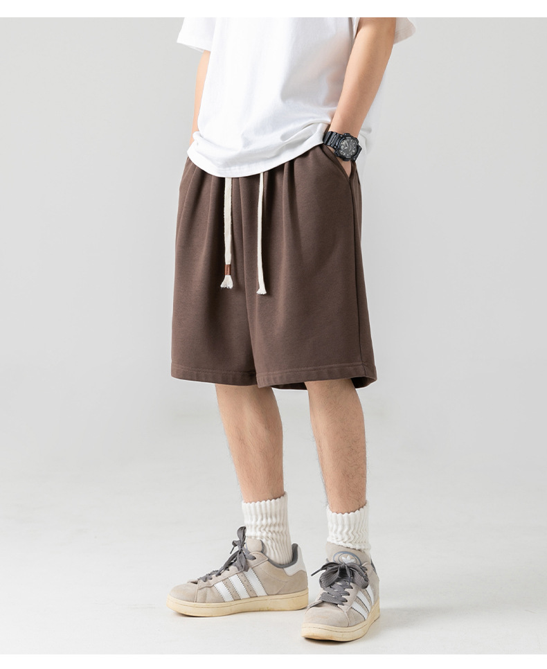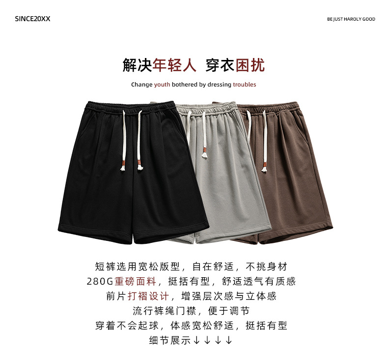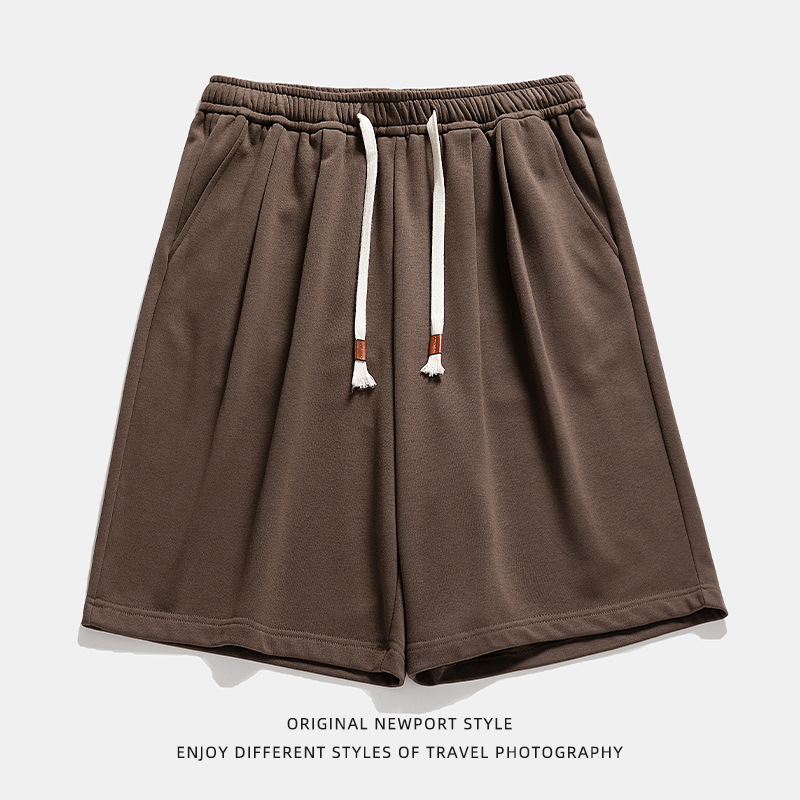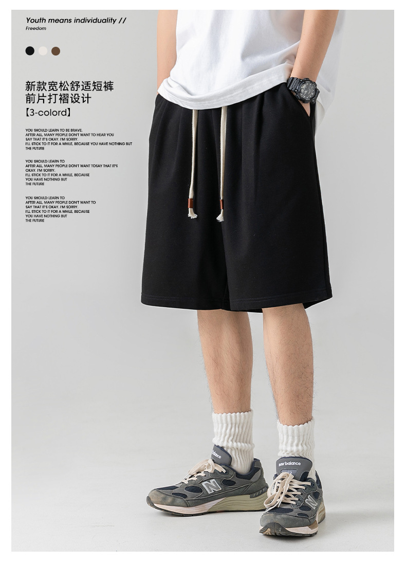 韩路日系男装复古打褶设计短裤男夏款潮牌宽松纯色薄款五分休闲裤