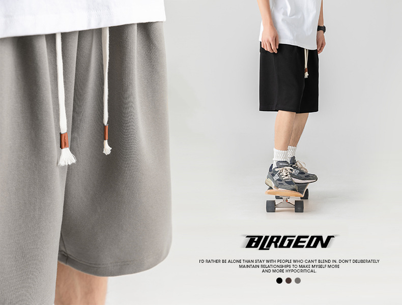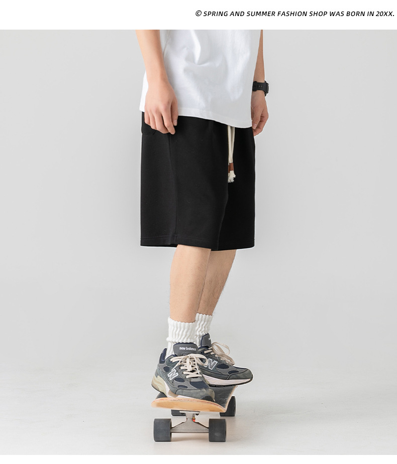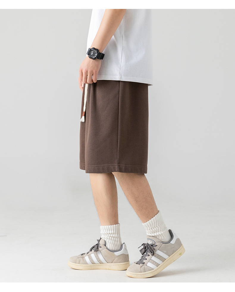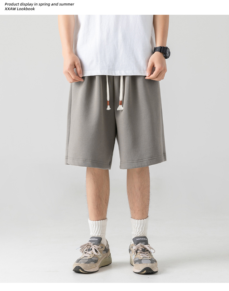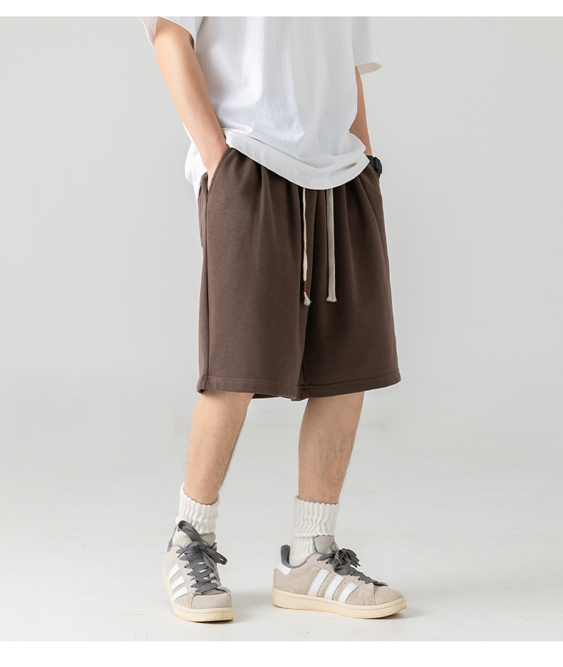 韩路日系男装复古打褶设计短裤男夏款潮牌宽松纯色薄款五分休闲裤