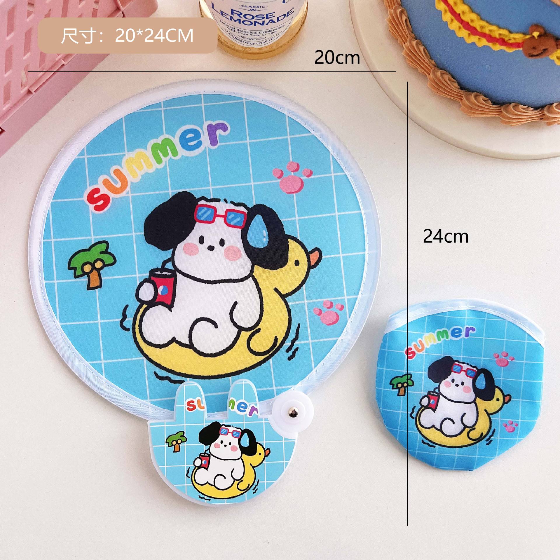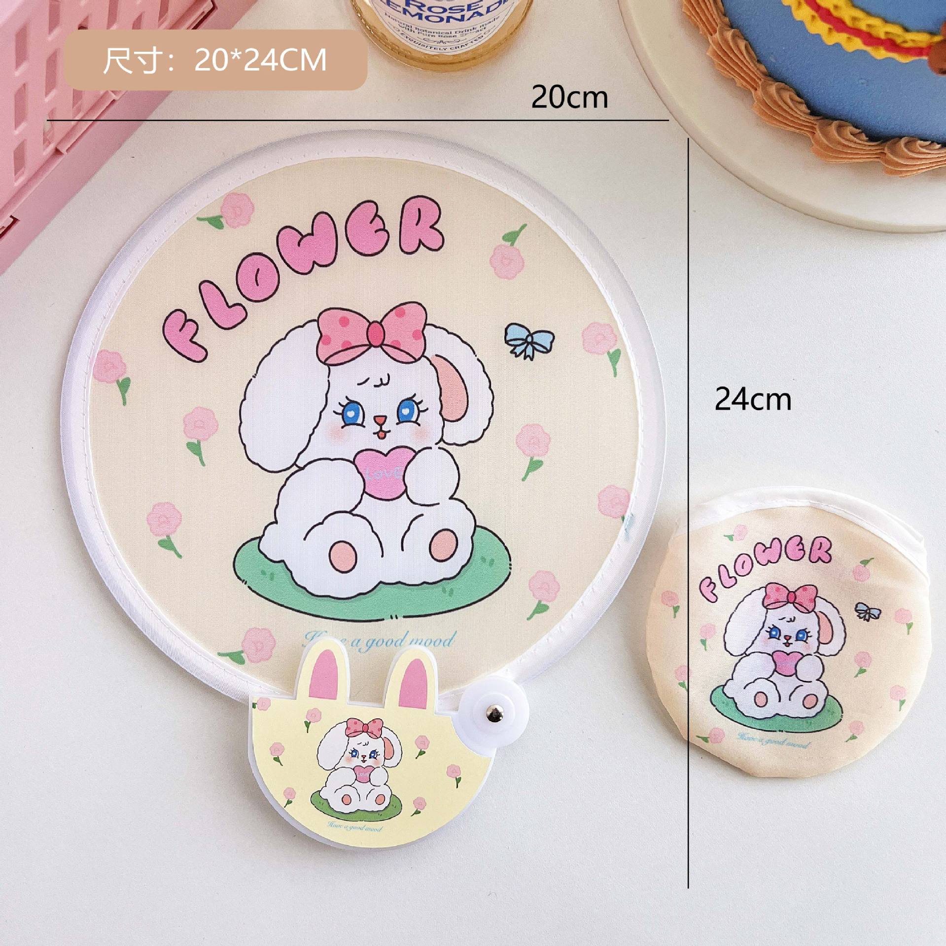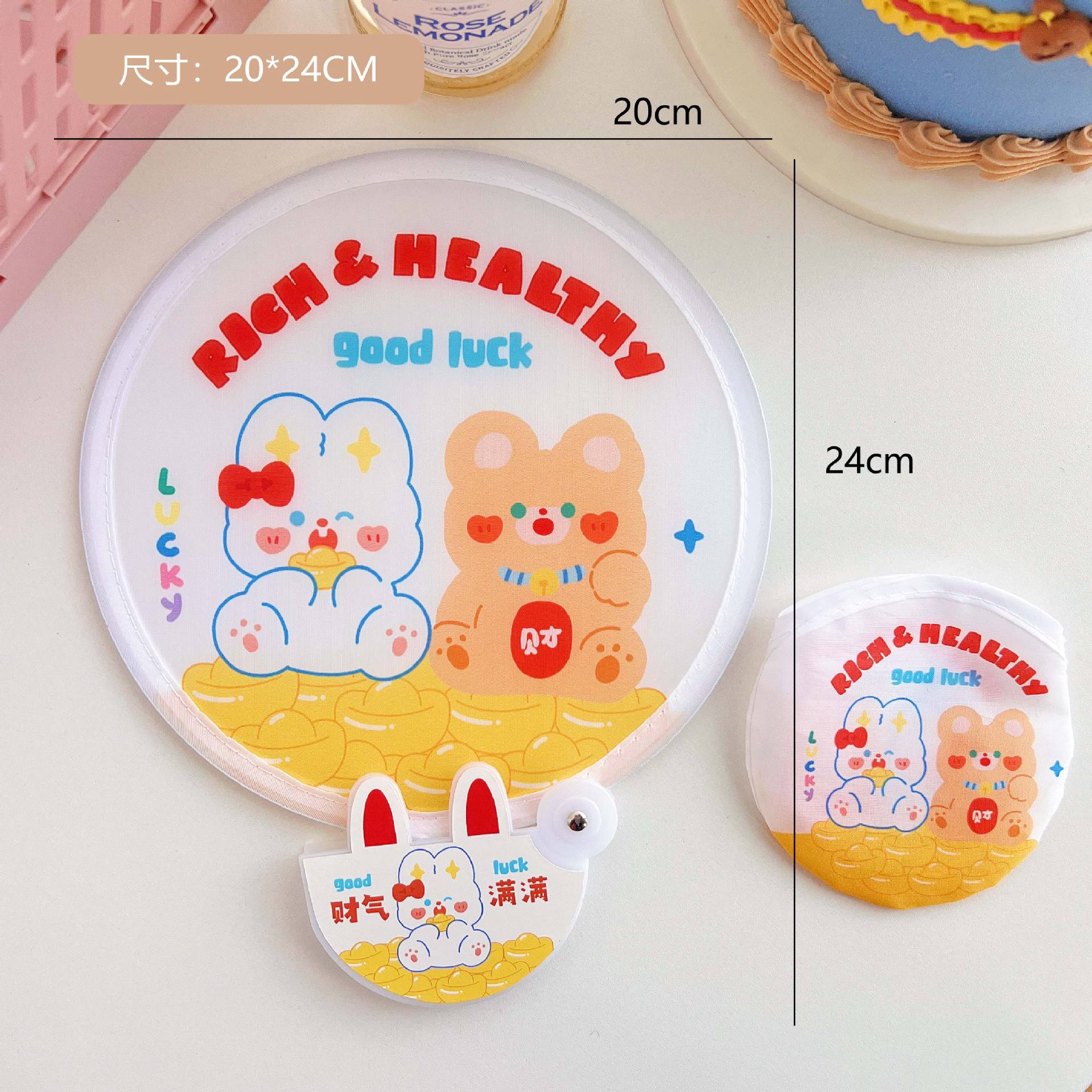 可爱ins折叠团扇卡通迷你布面扇子随身小扇子带柄折扇便携小圆扇