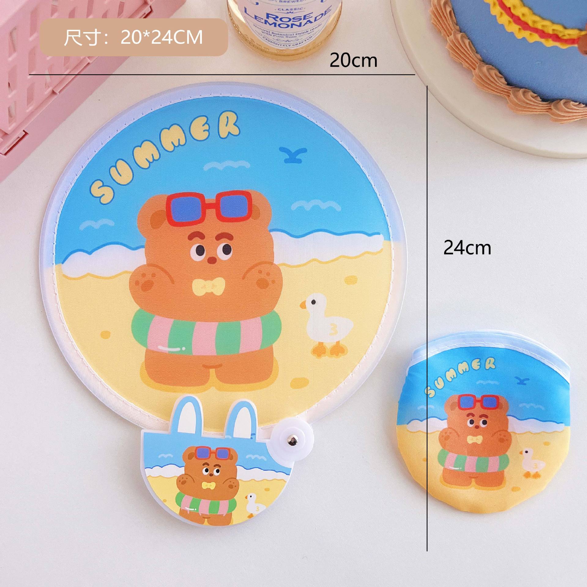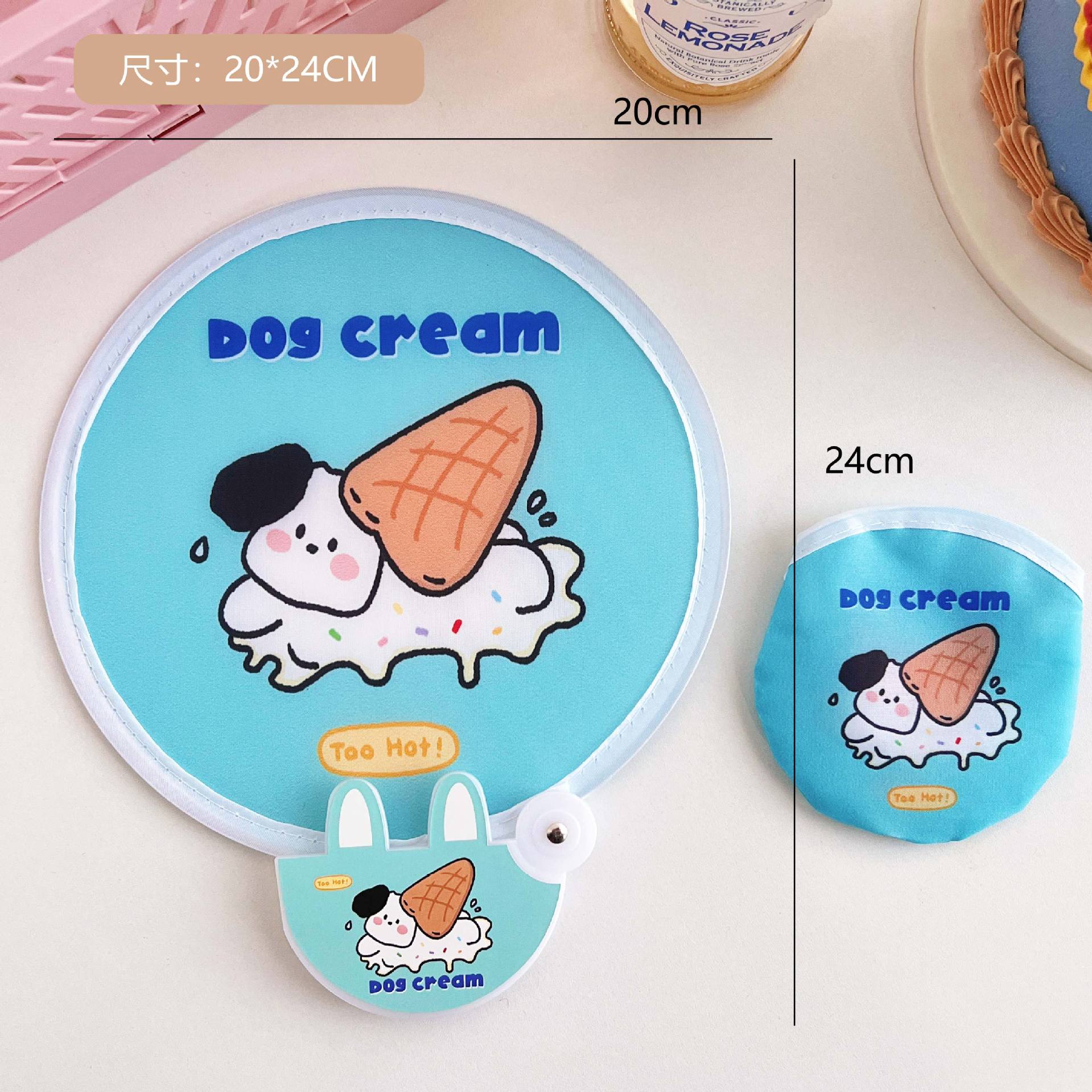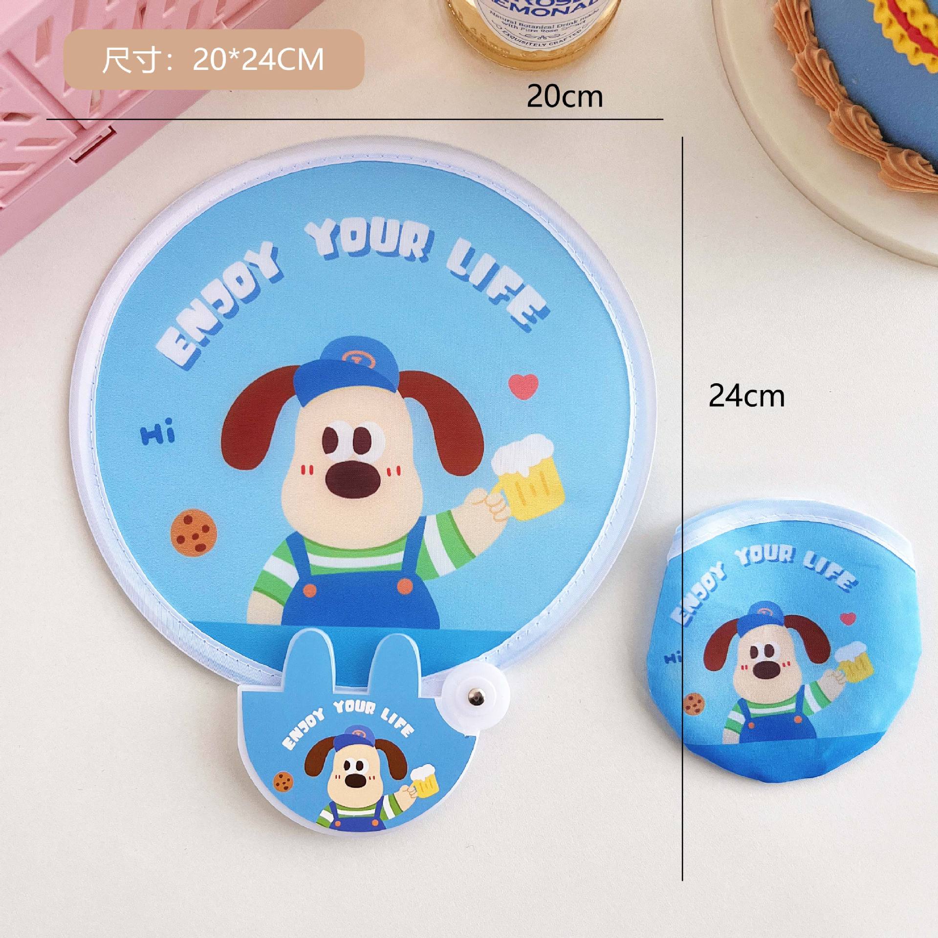 可爱ins折叠团扇卡通迷你布面扇子随身小扇子带柄折扇便携小圆扇