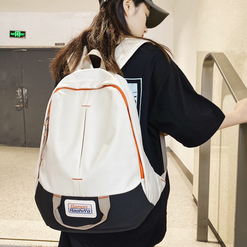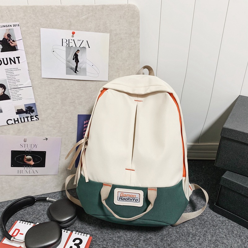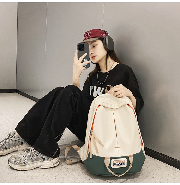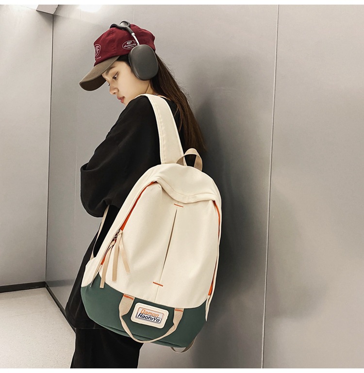 书包女ins高中小学生初中生森系撞色背包大学生双肩包