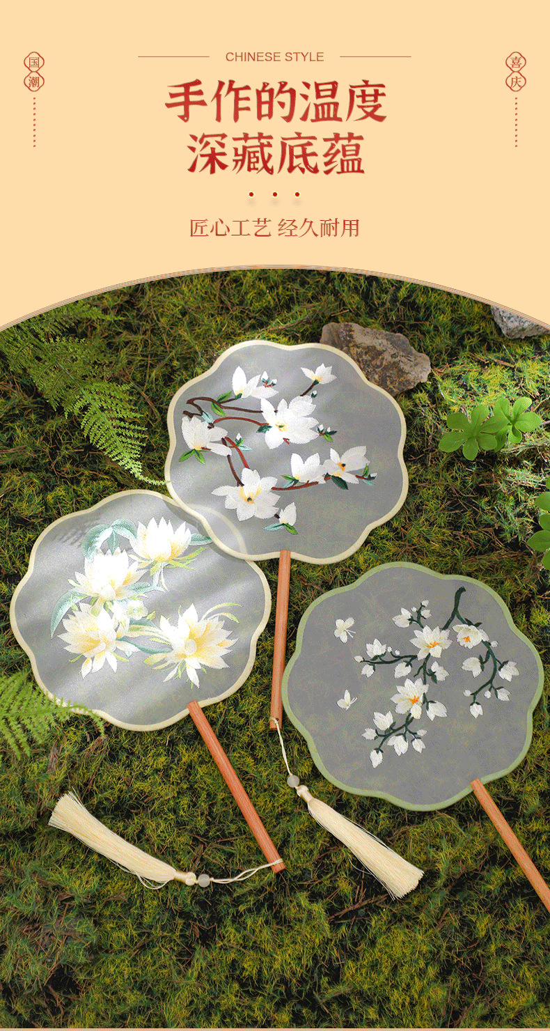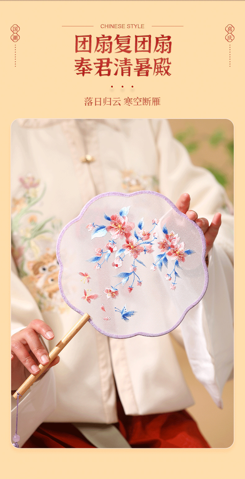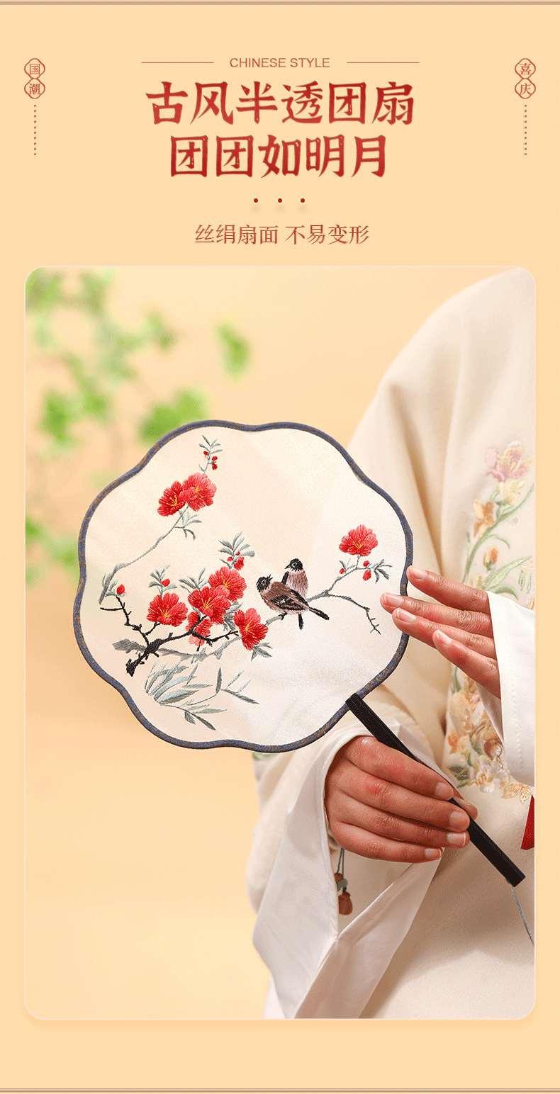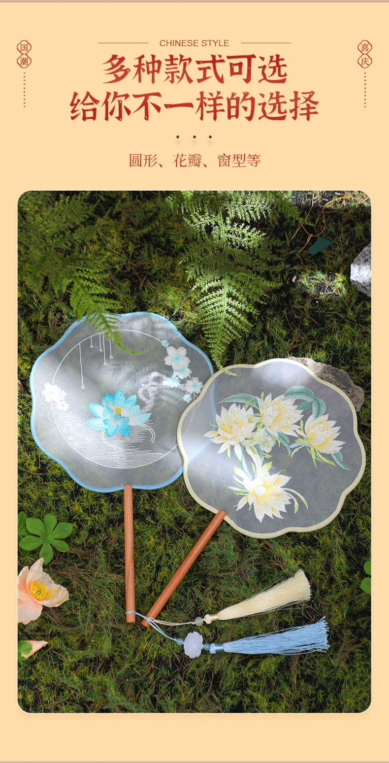 高档双面刺绣团扇厂家直供古风汉服舞蹈旗袍走秀拍照道具苏绣宫扇