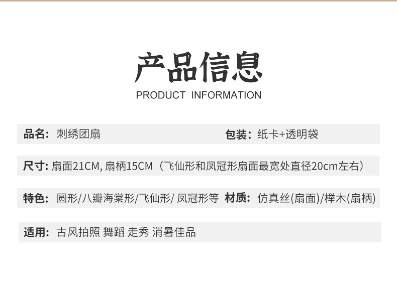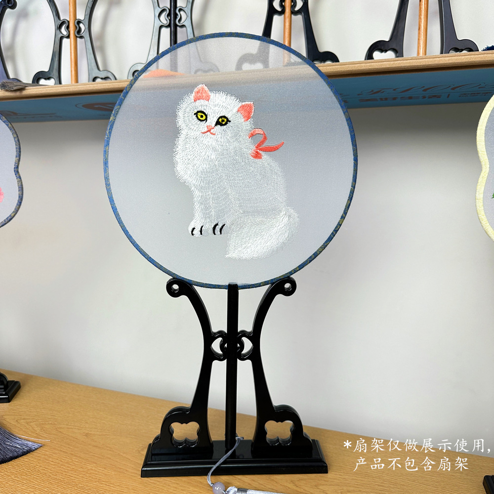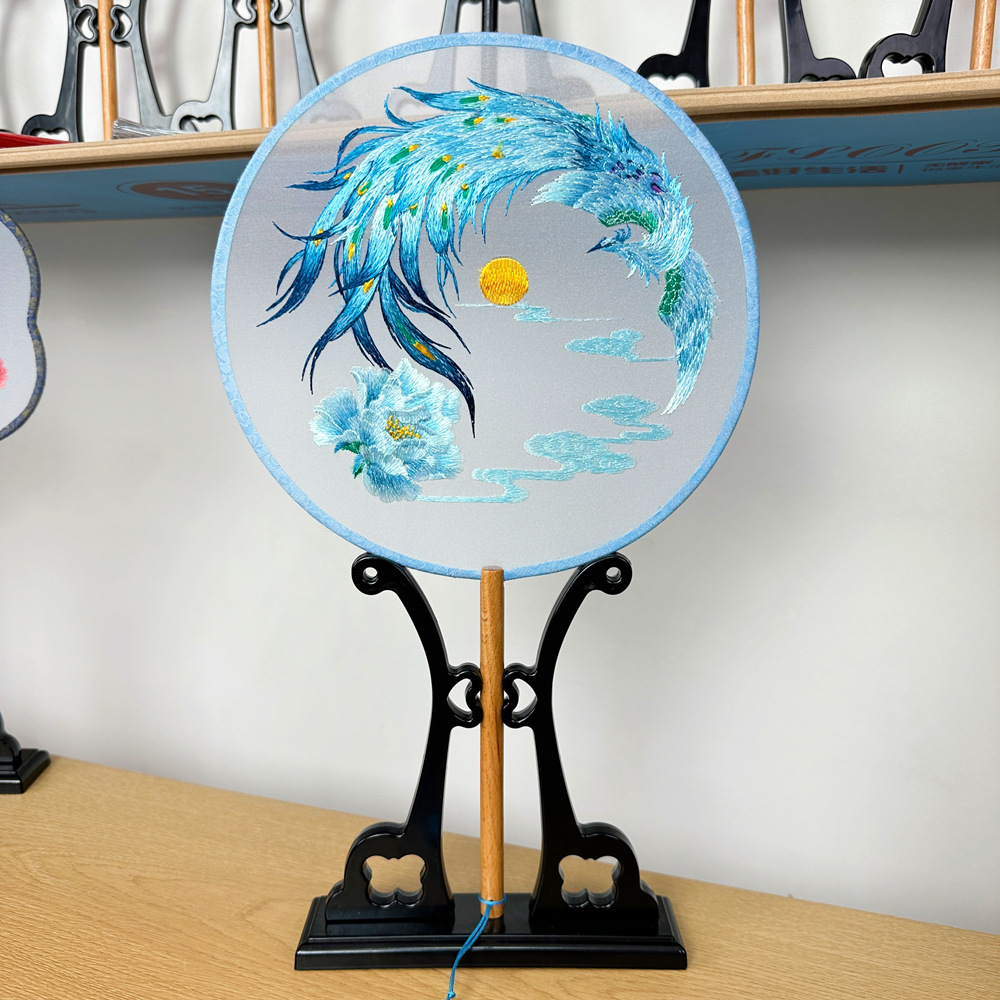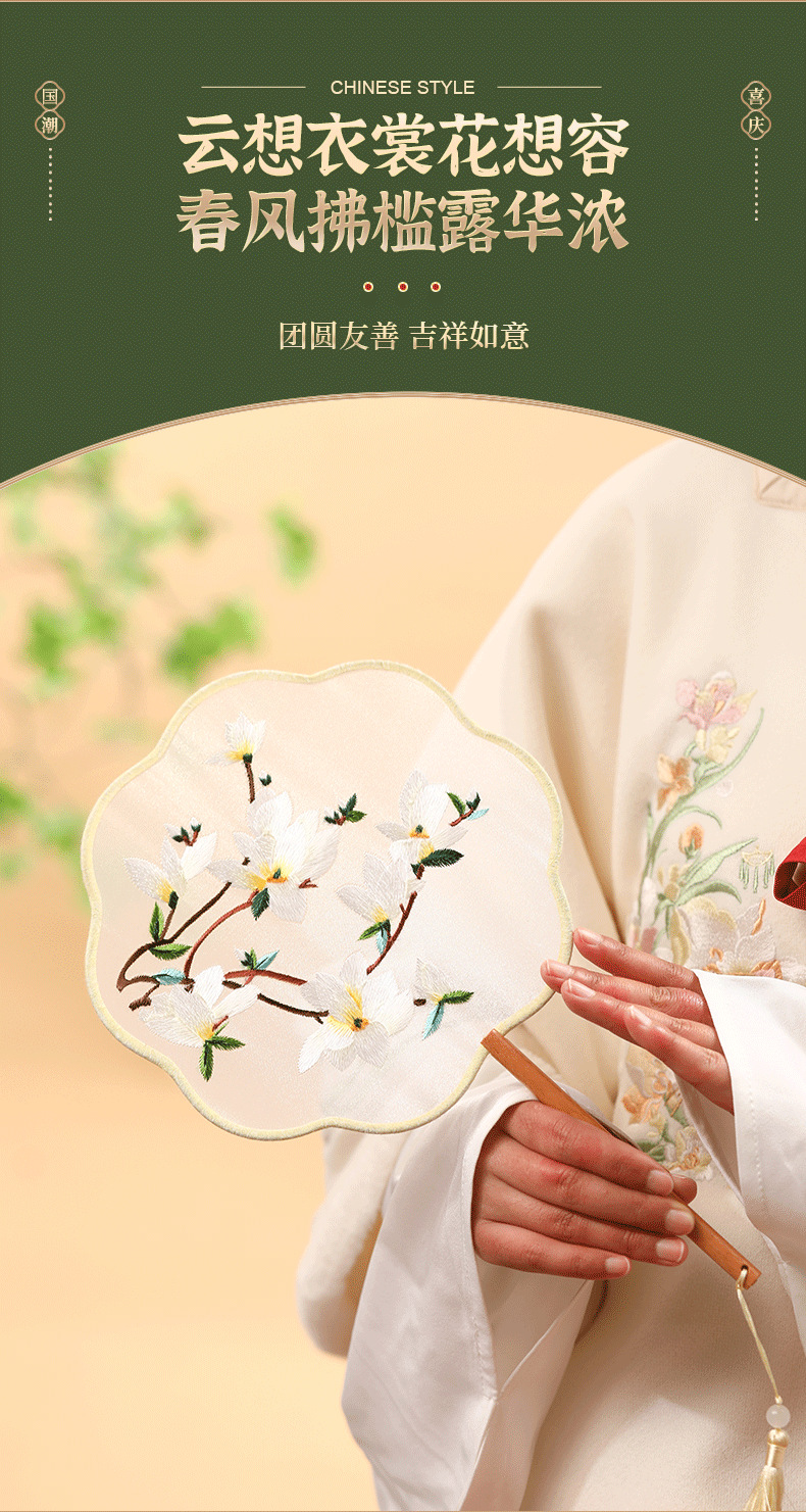 高档双面刺绣团扇厂家直供古风汉服舞蹈旗袍走秀拍照道具苏绣宫扇