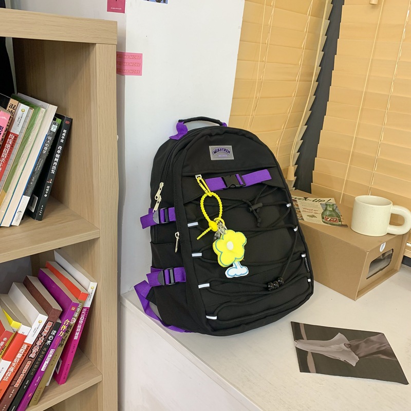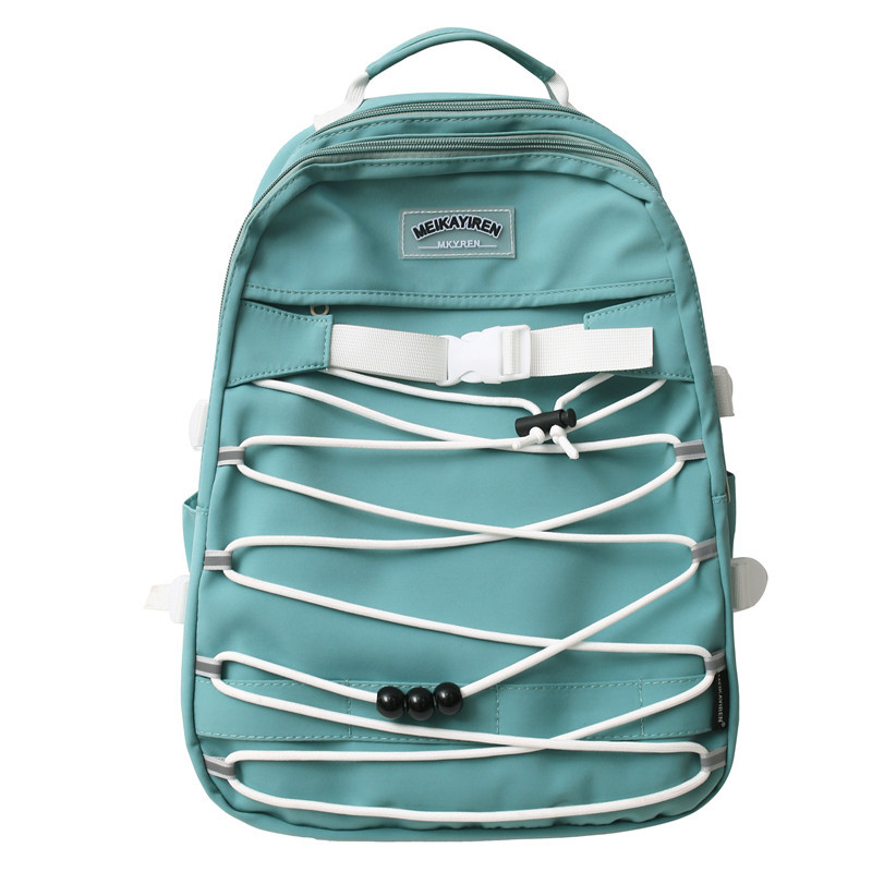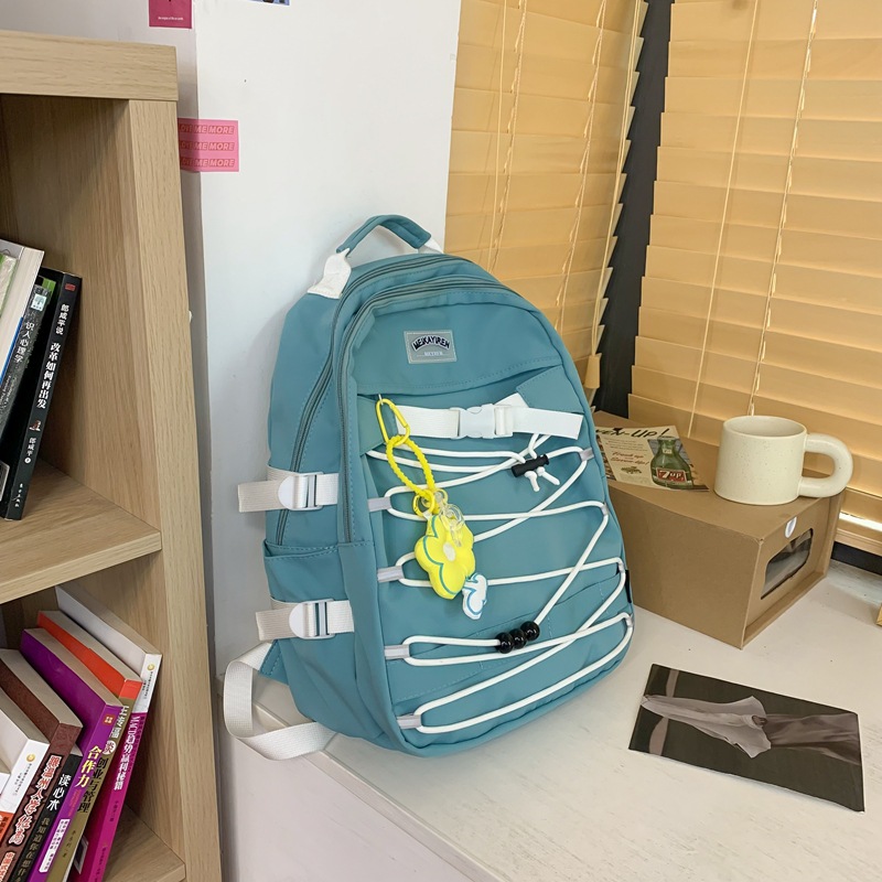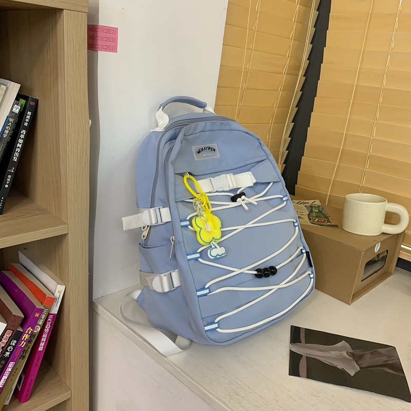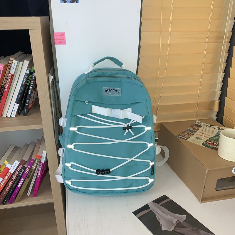 新款森系时尚颜值反光带女双背包简约学院风交叉绳学生背包