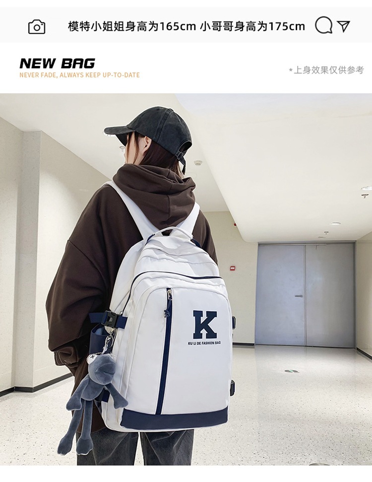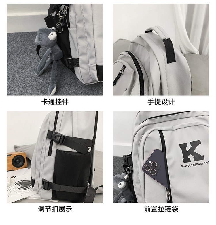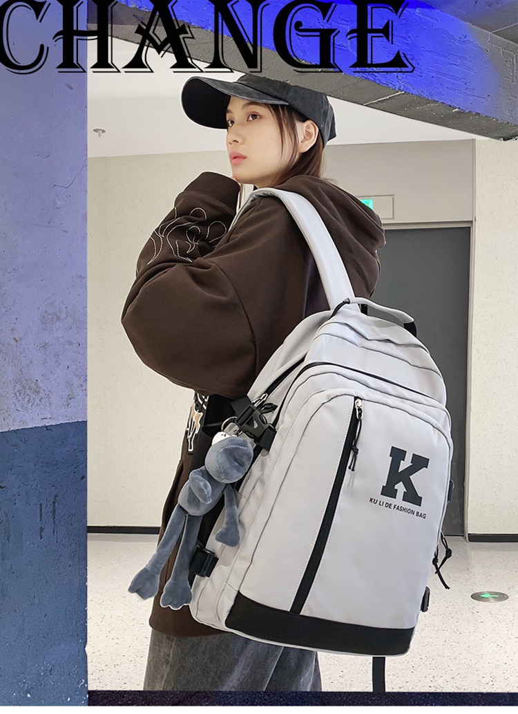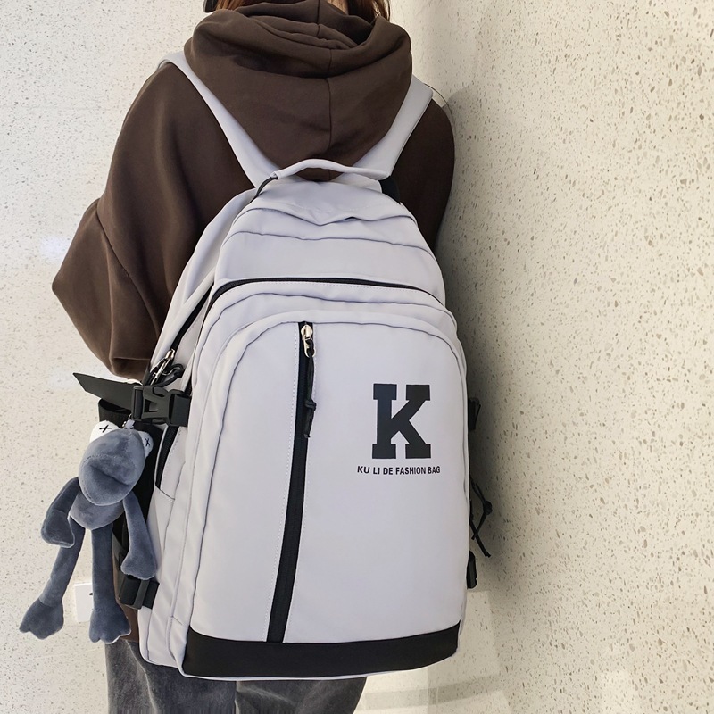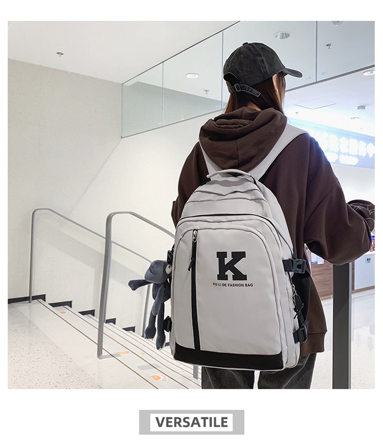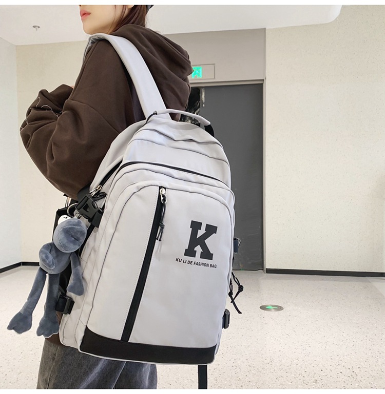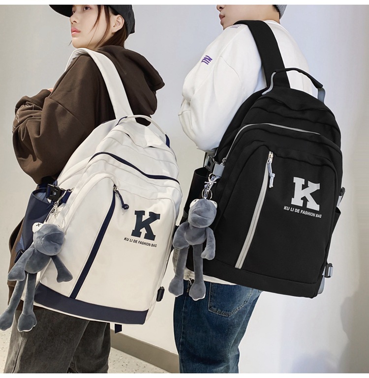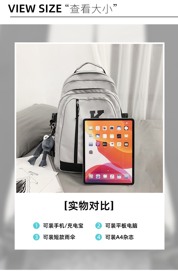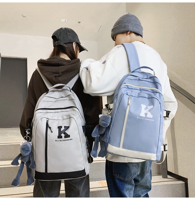 双肩包女情侣潮流学院风书包初中生简约字母工装背包