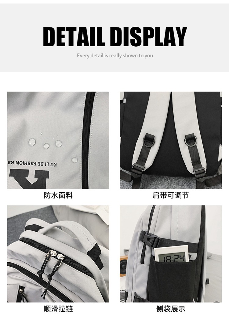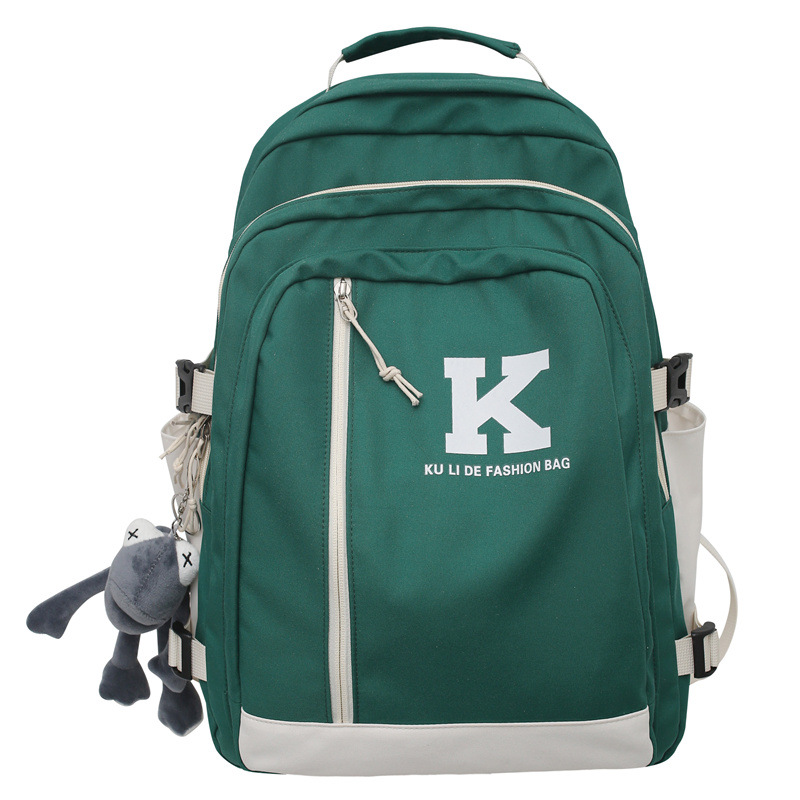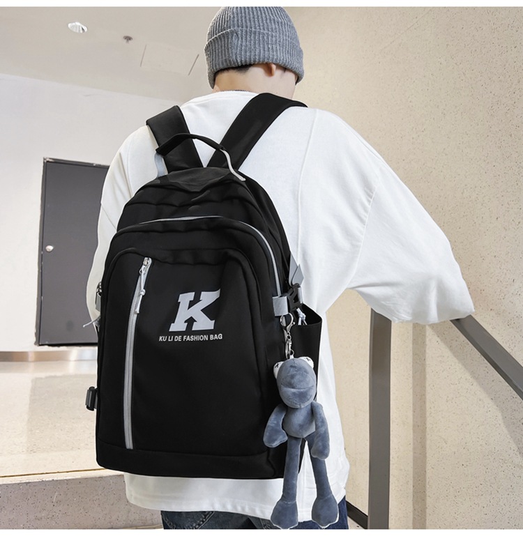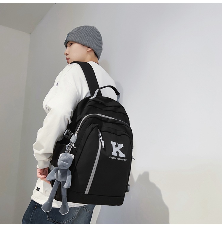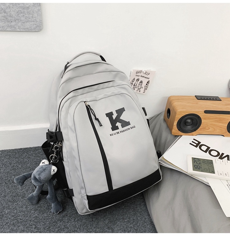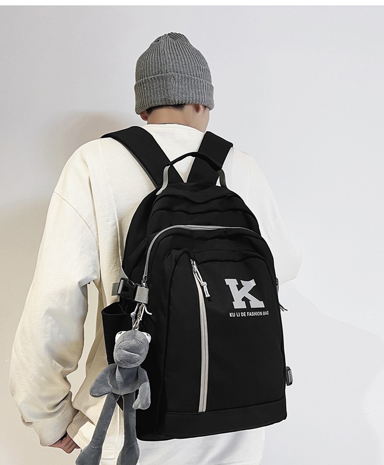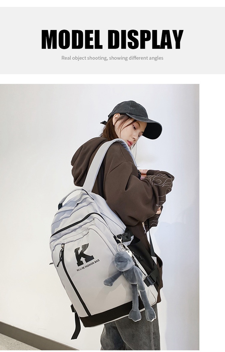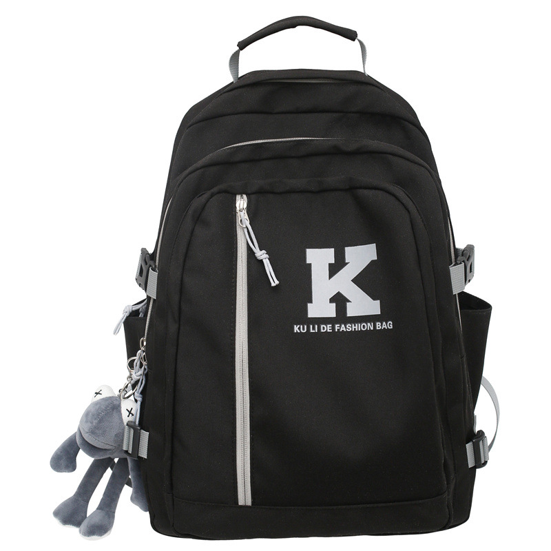 双肩包女情侣潮流学院风书包初中生简约字母工装背包