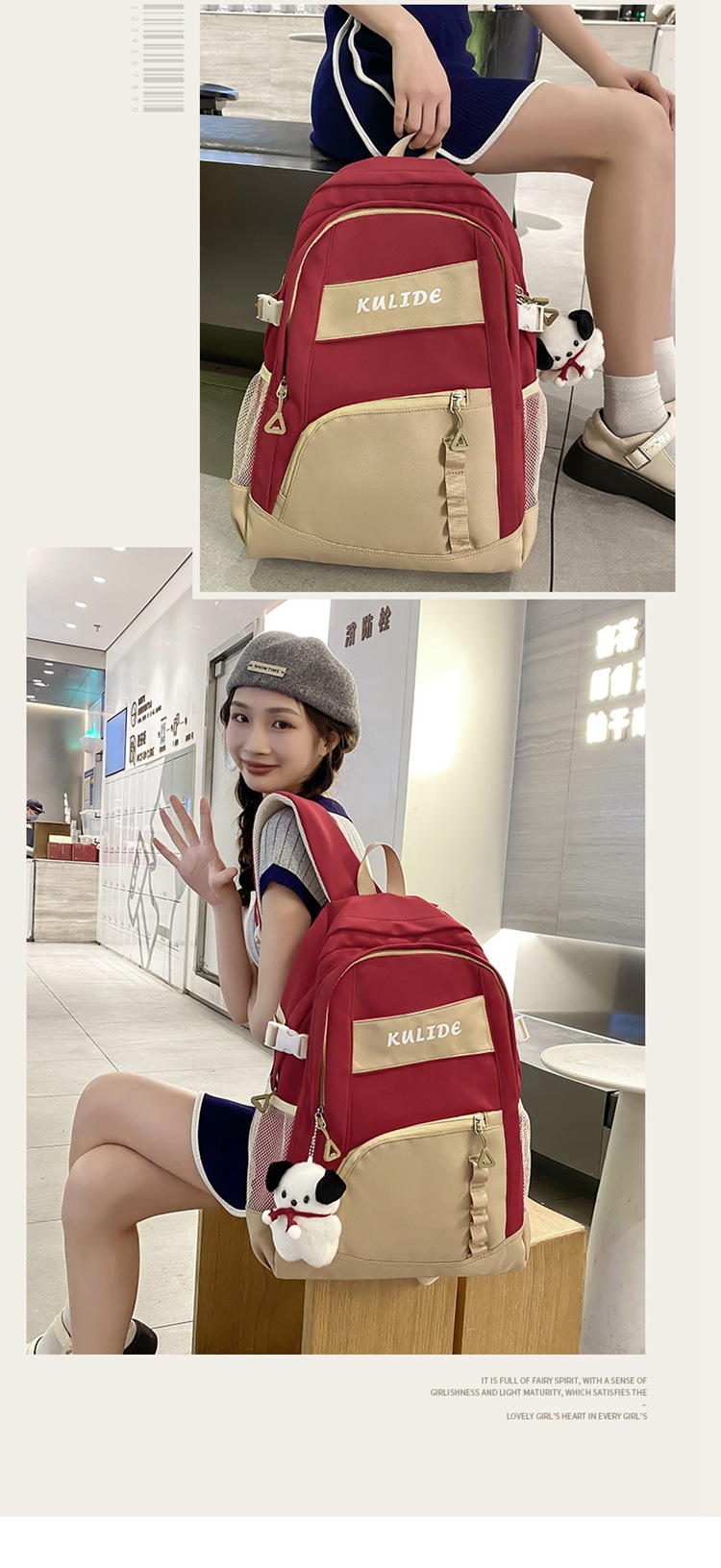 新款书包女撞色初高中学生双肩包轻便小学生三到六年级双肩包