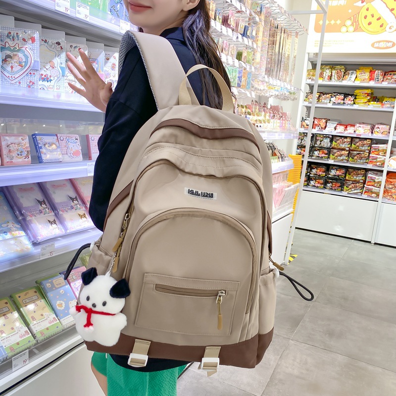 少女撞色书包女ins高中初中小学生背包双肩包