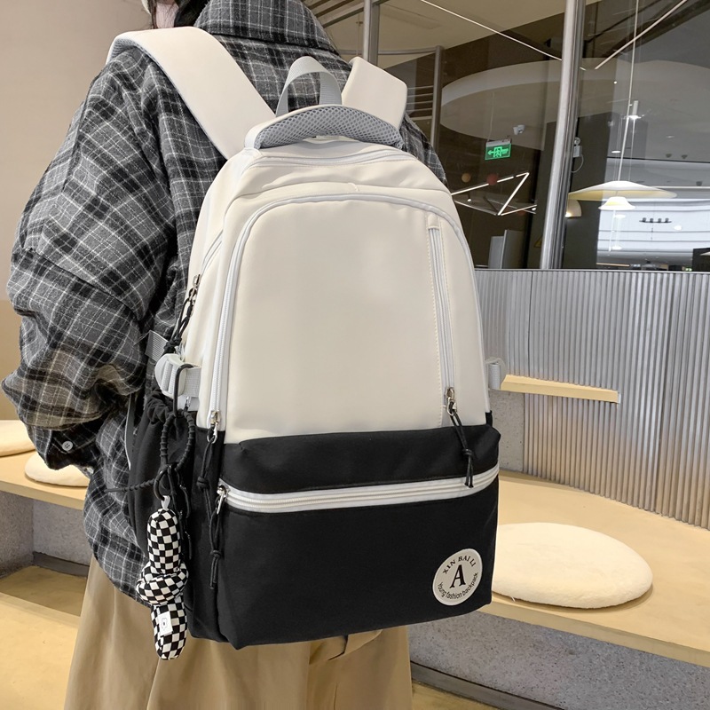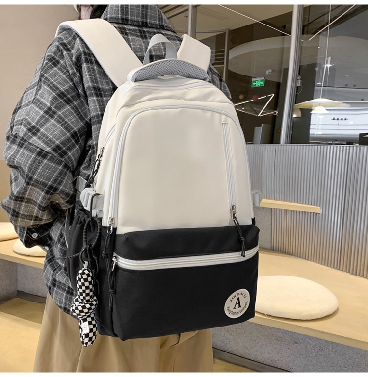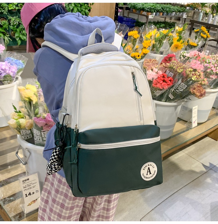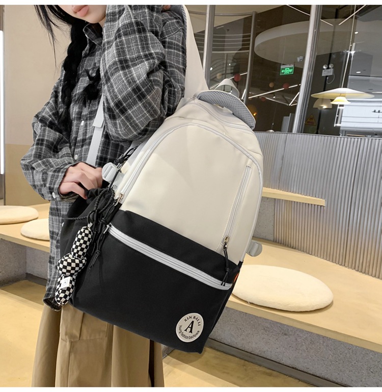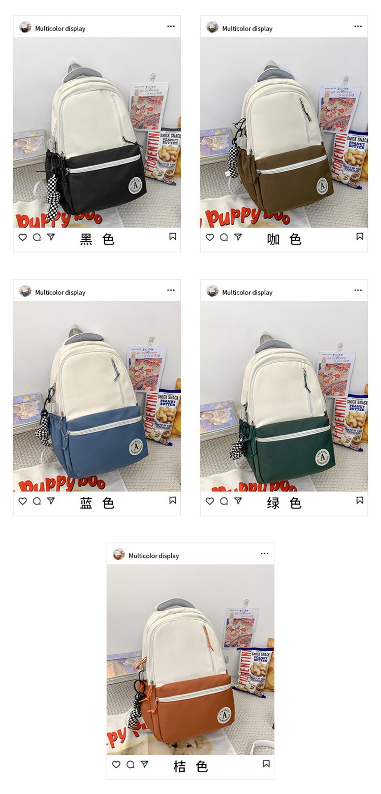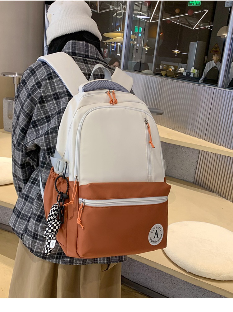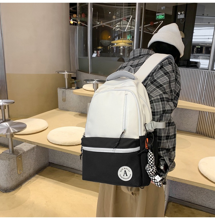 双肩包拼色简约时尚潮流旅行背包女休闲高中大学生书包