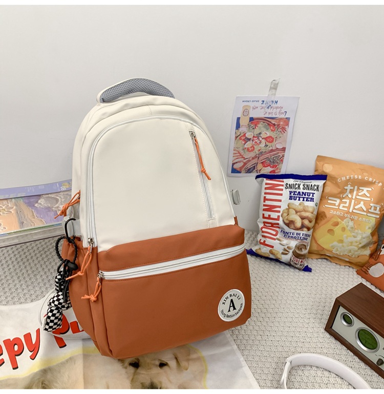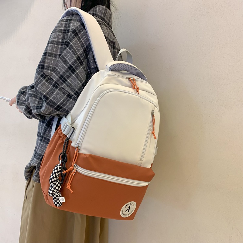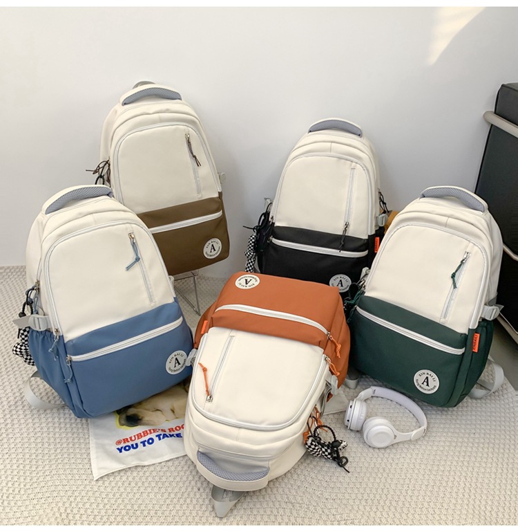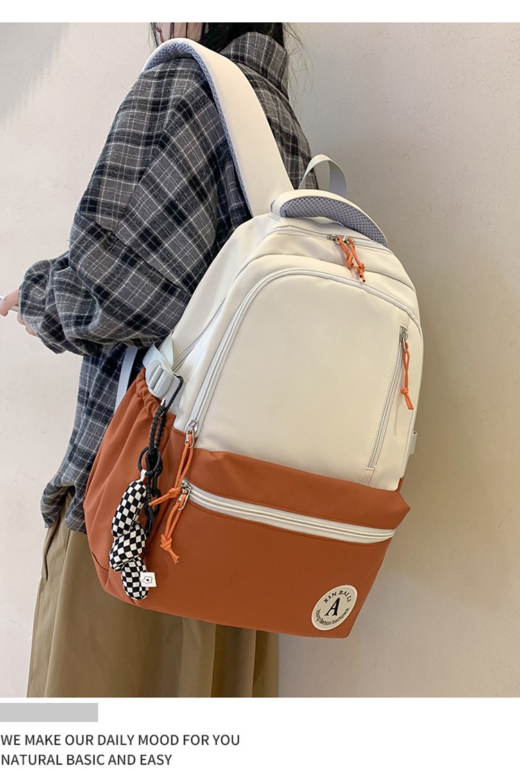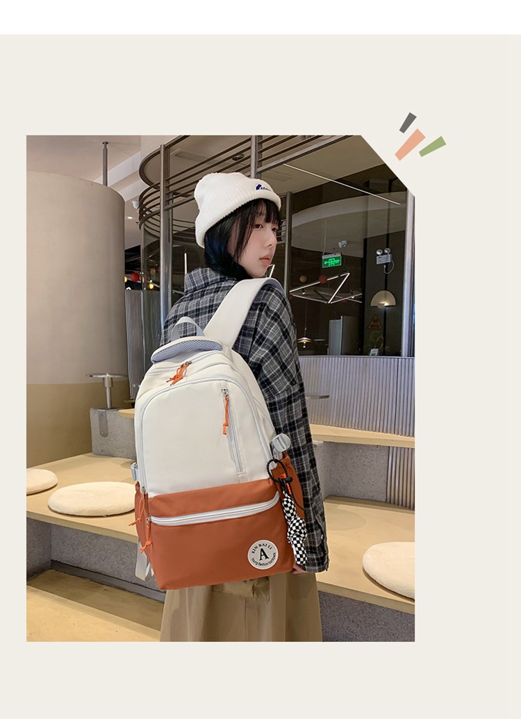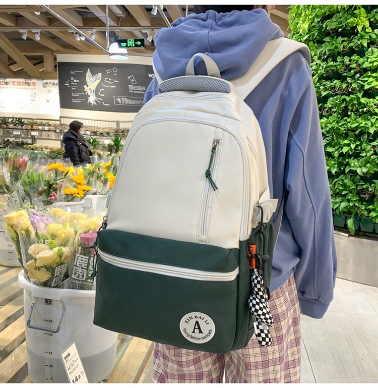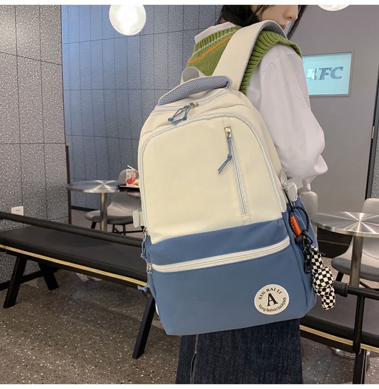 双肩包拼色简约时尚潮流旅行背包女休闲高中大学生书包