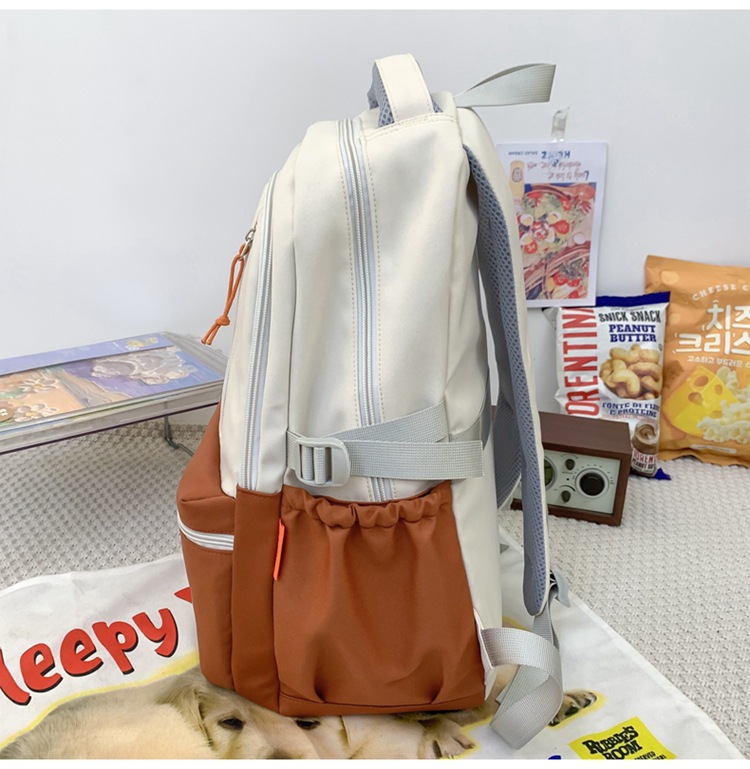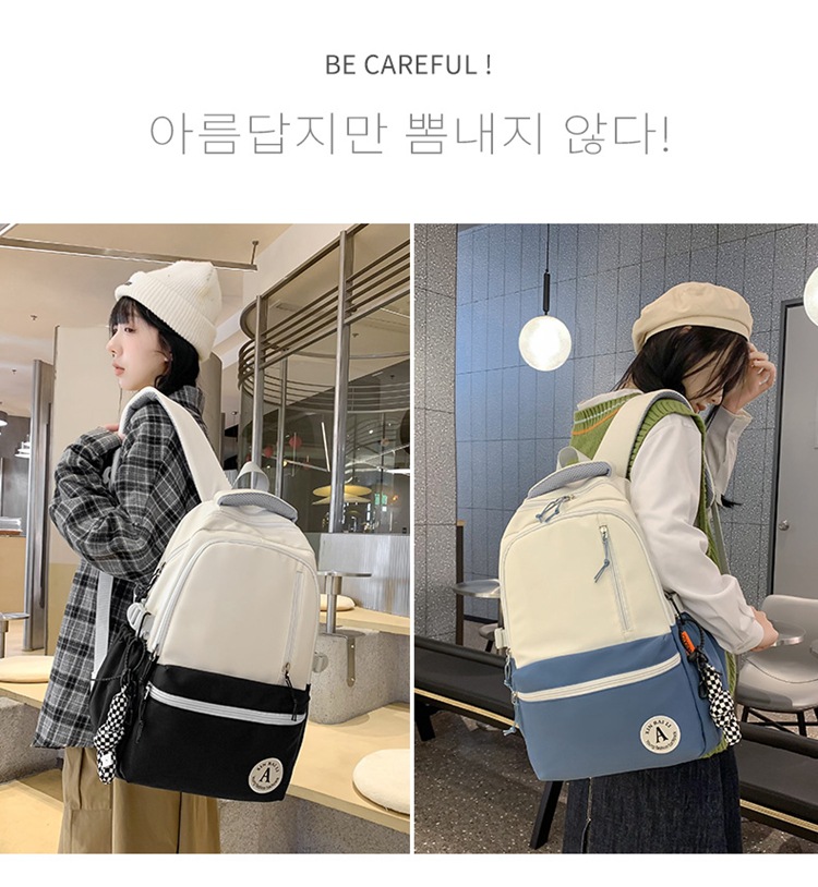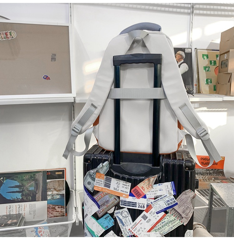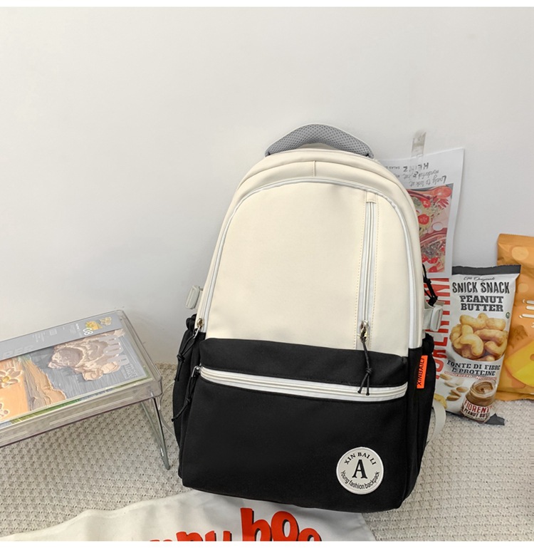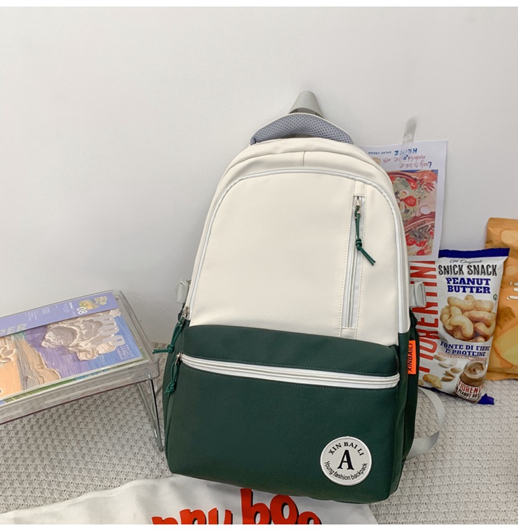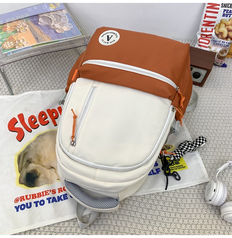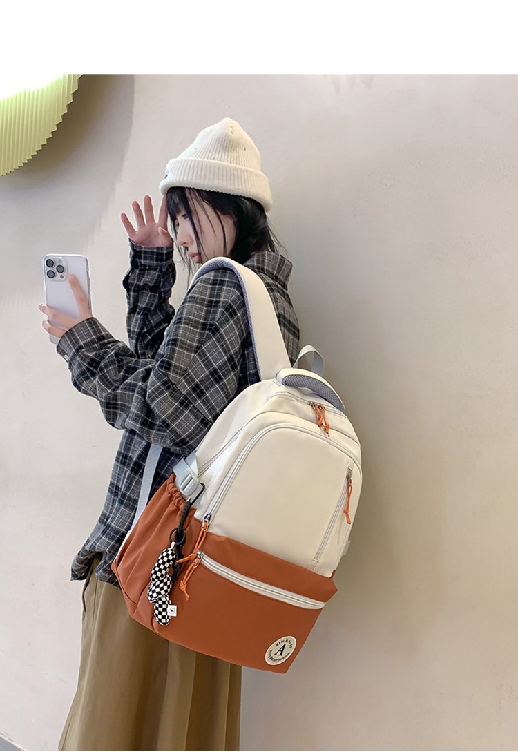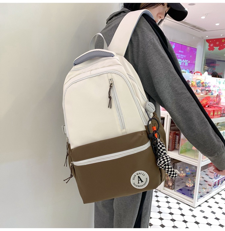双肩包拼色简约时尚潮流旅行背包女休闲高中大学生书包