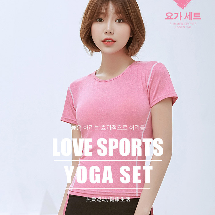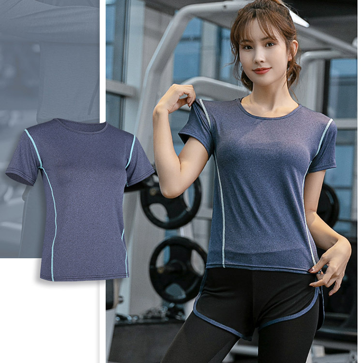 2023春季新款专业瑜伽健身运动服女士圆领上衣显瘦型短袖