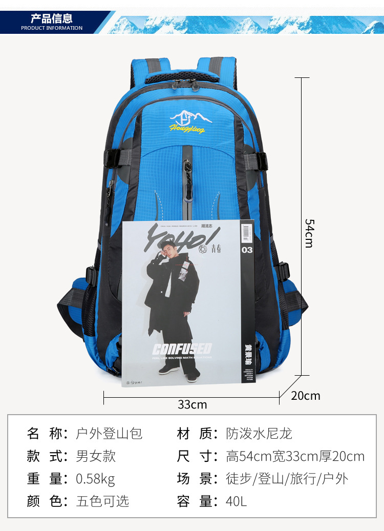 跨境旅行大容量男女运动健身户外徒步登山骑行露营学生双肩背包