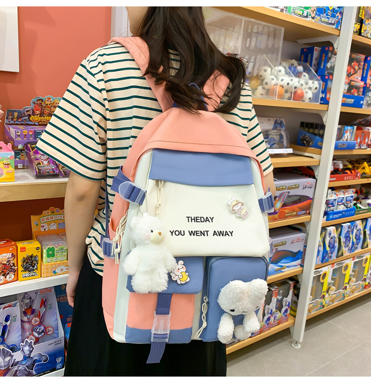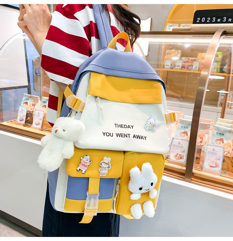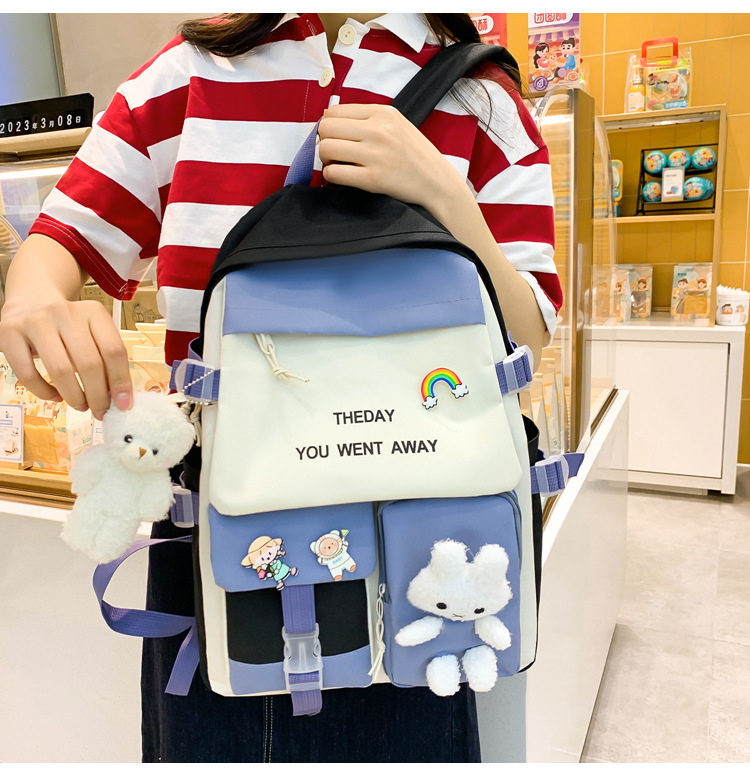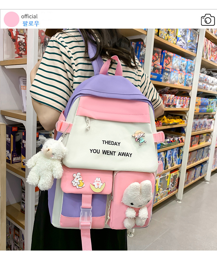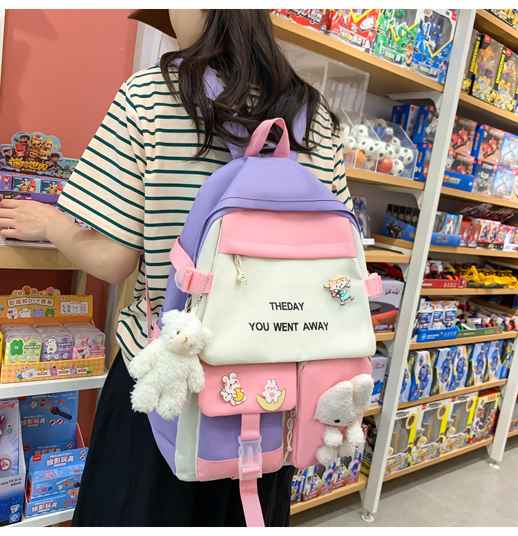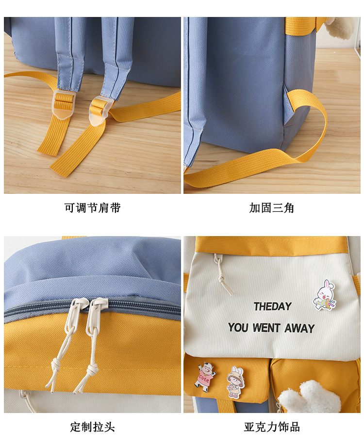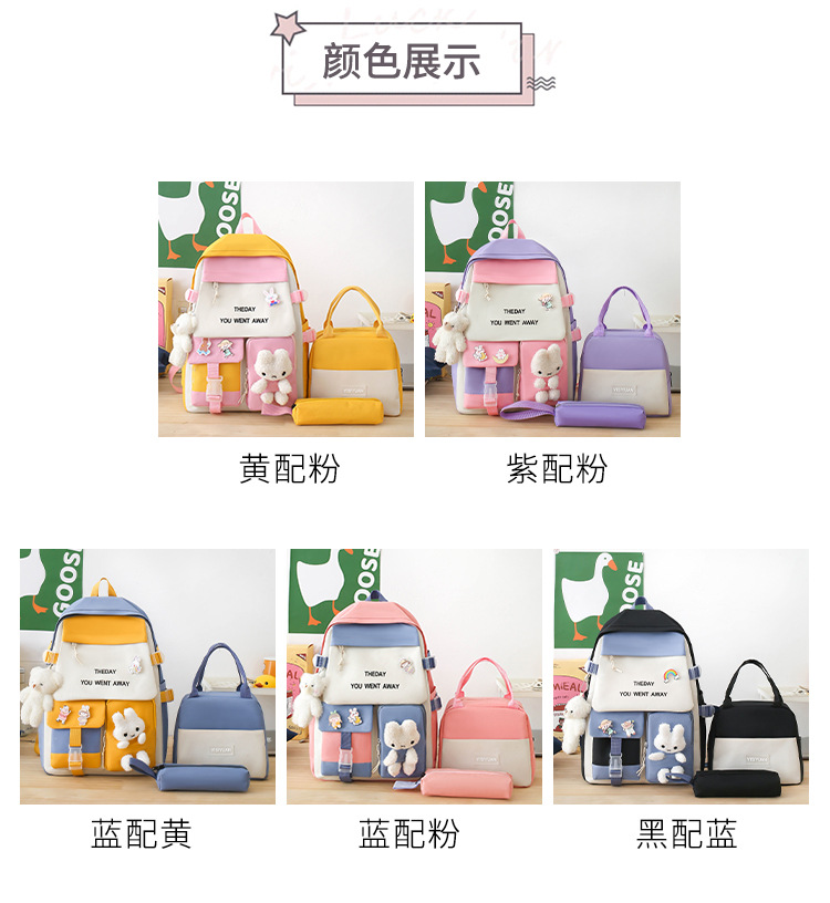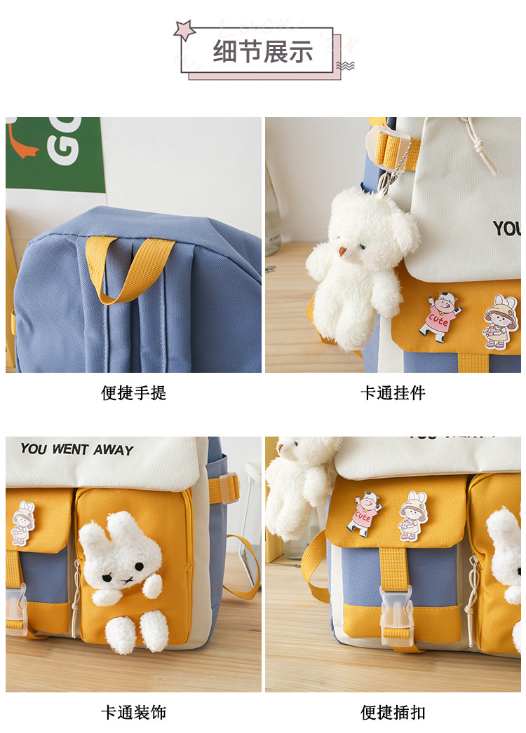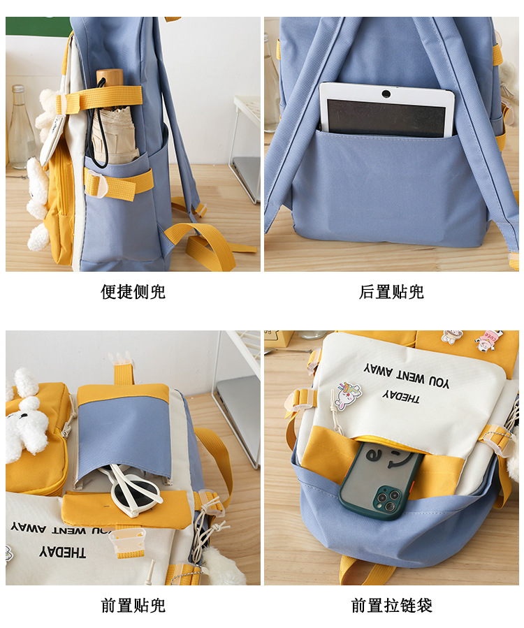 校园书包便捷大容量拼色时尚背包三件套可爱清新甜美少女感双肩包