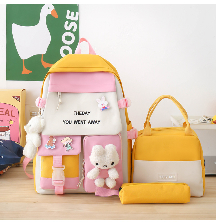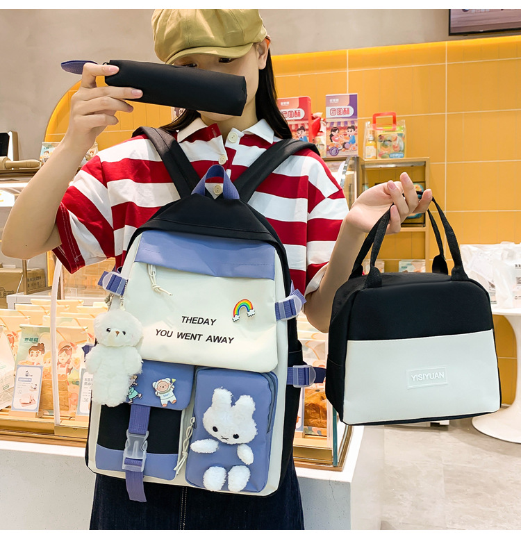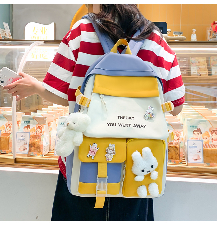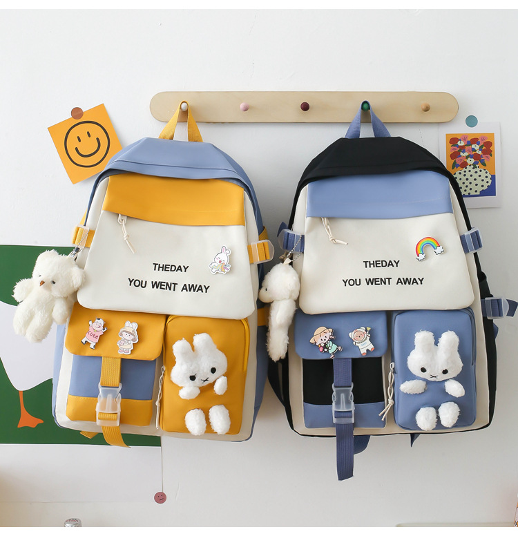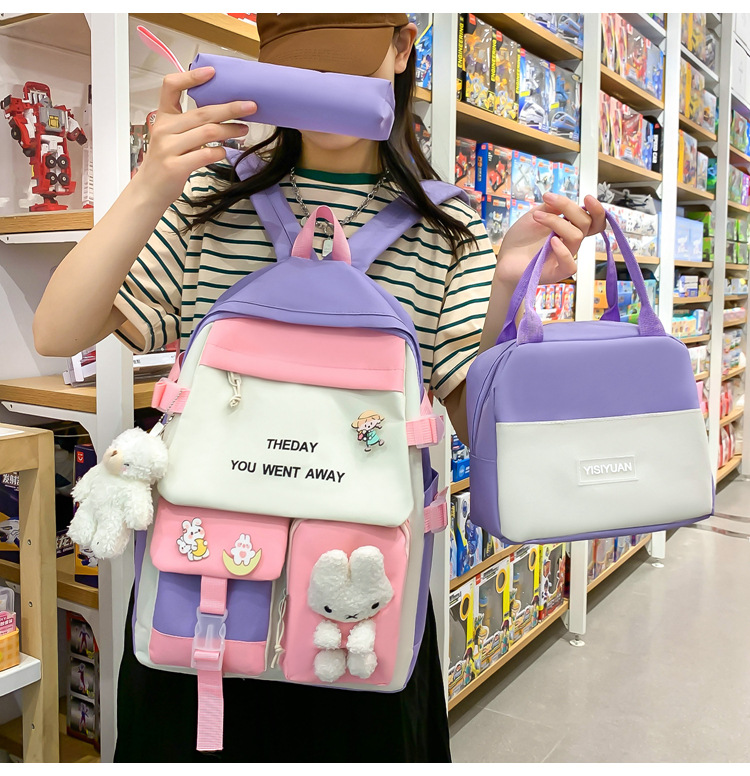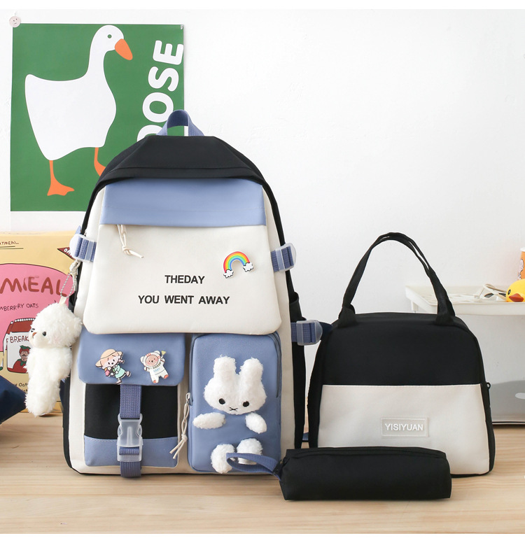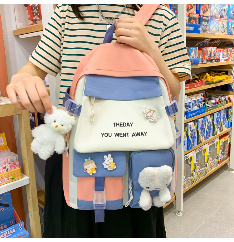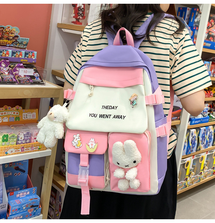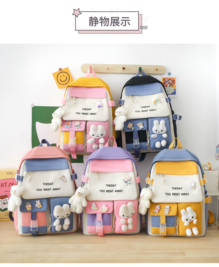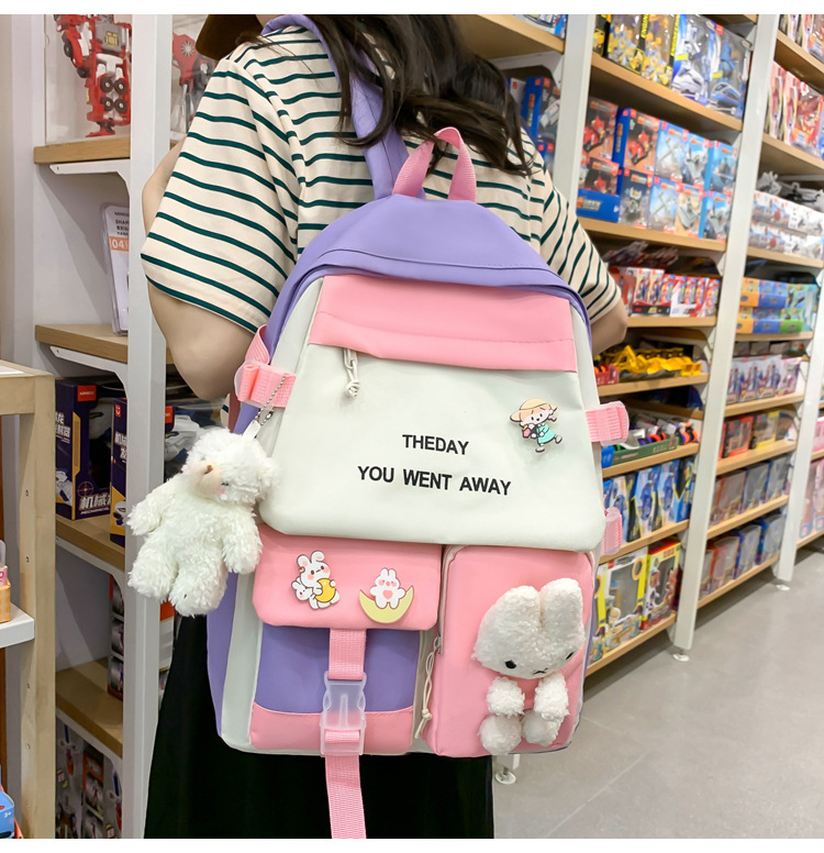校园书包便捷大容量拼色时尚背包三件套可爱清新甜美少女感双肩包