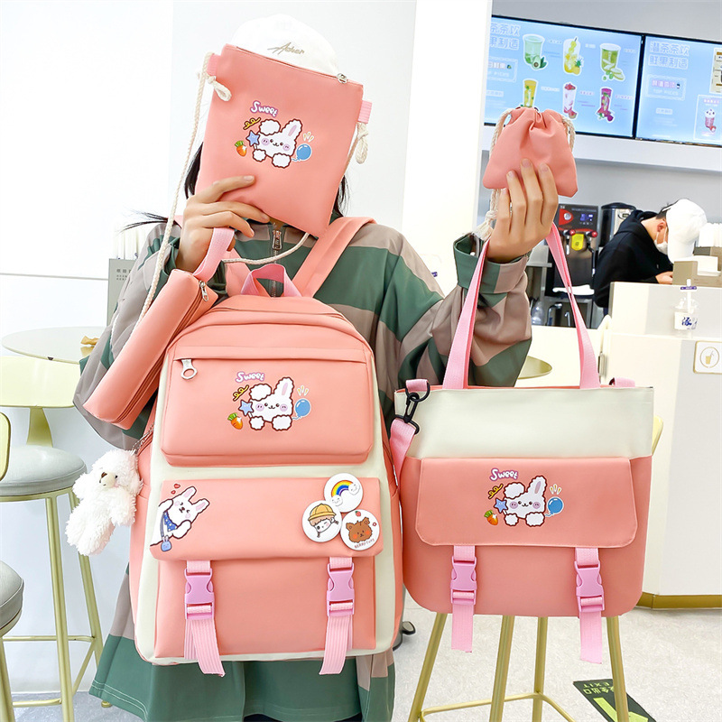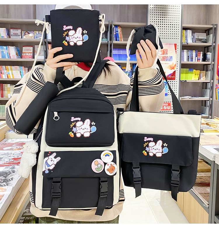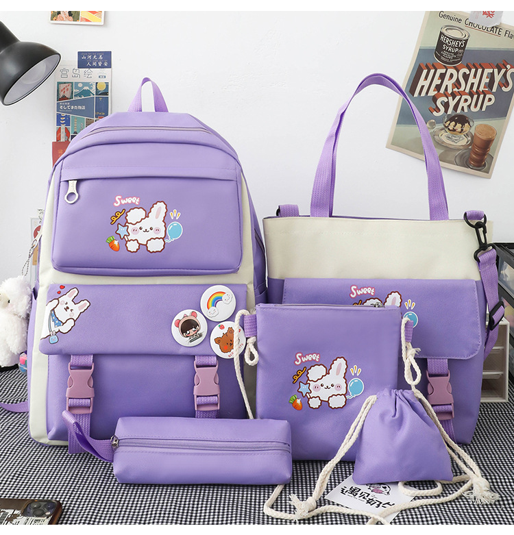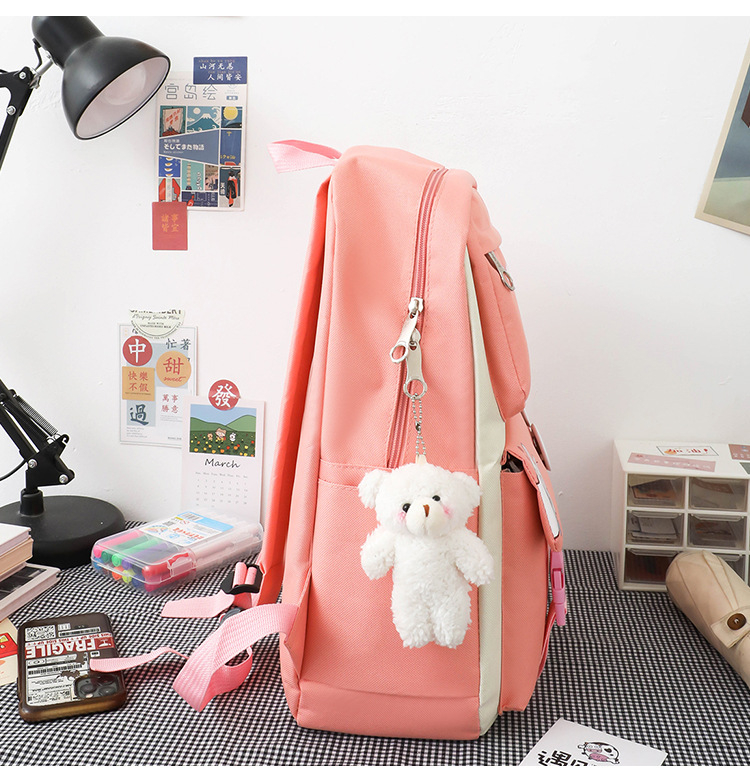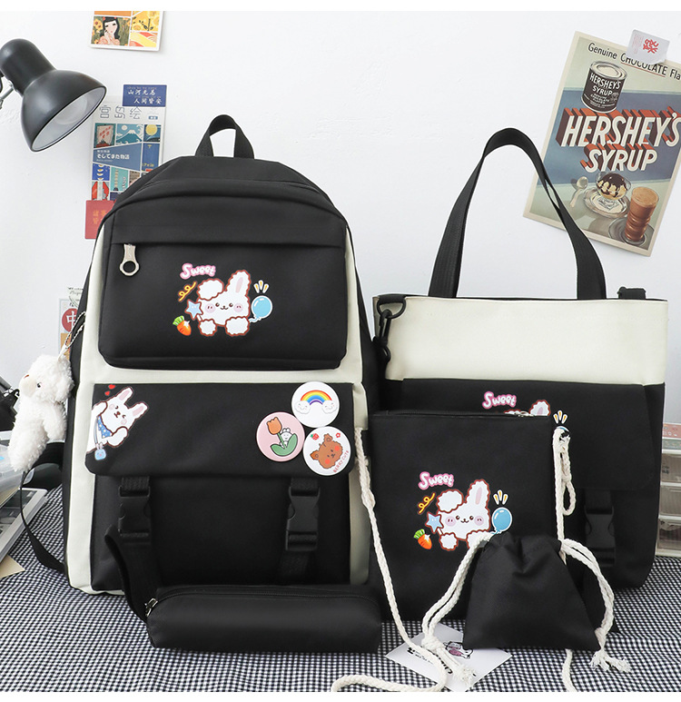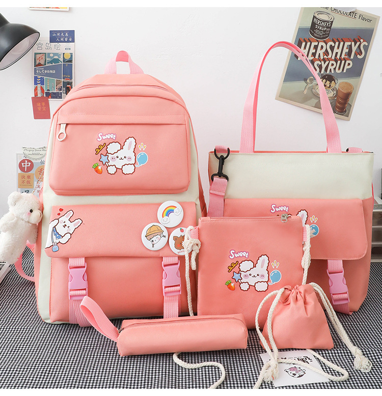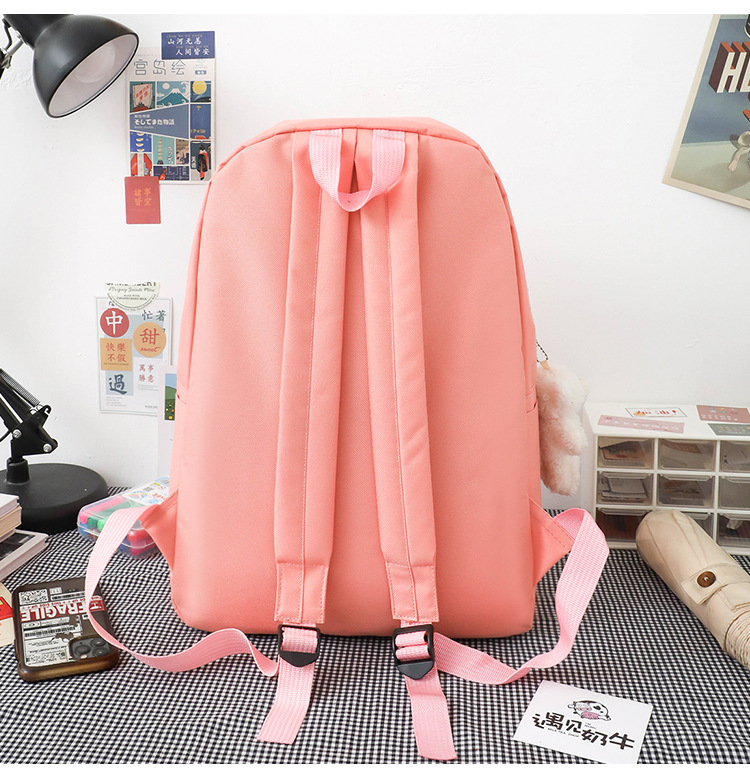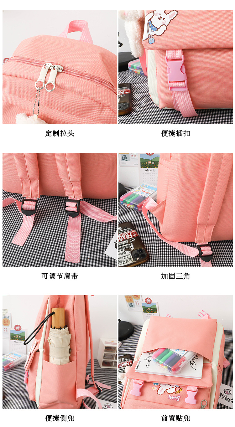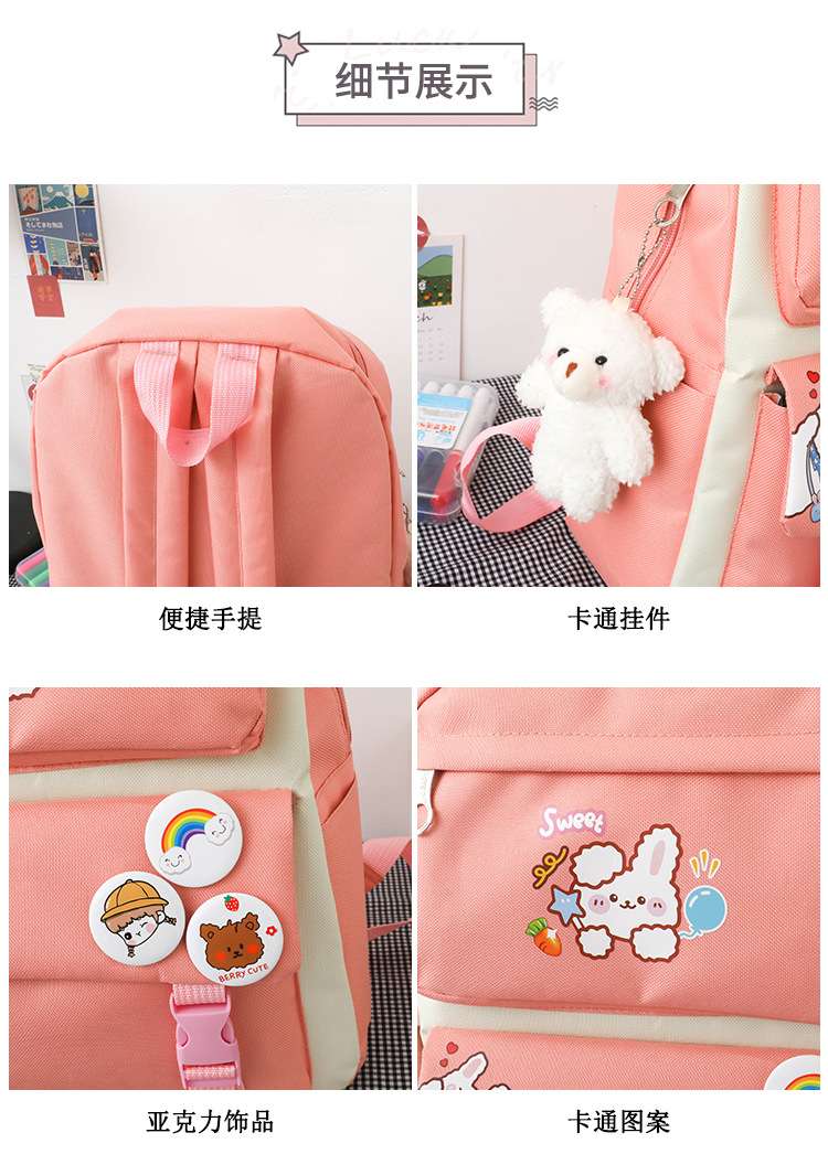 新款大容量韩版学生书包女小学生补课双肩包五件套中学生休闲背包