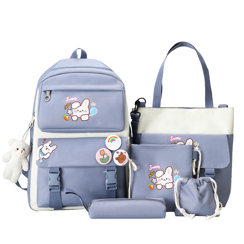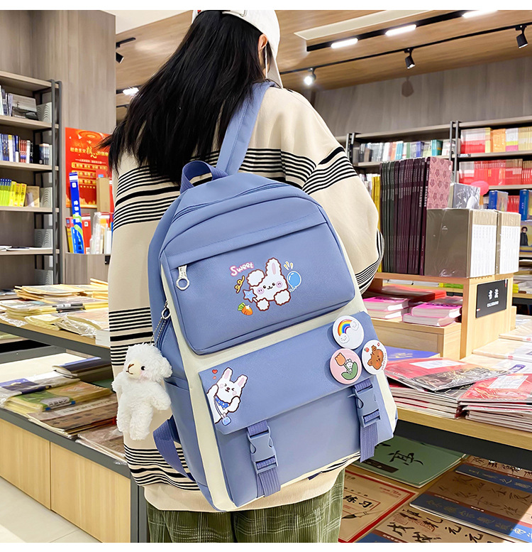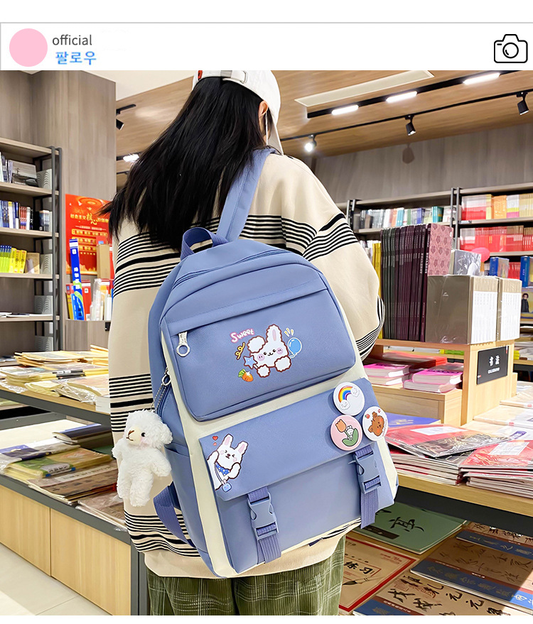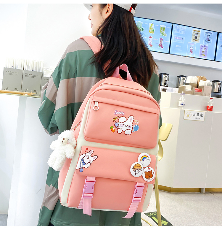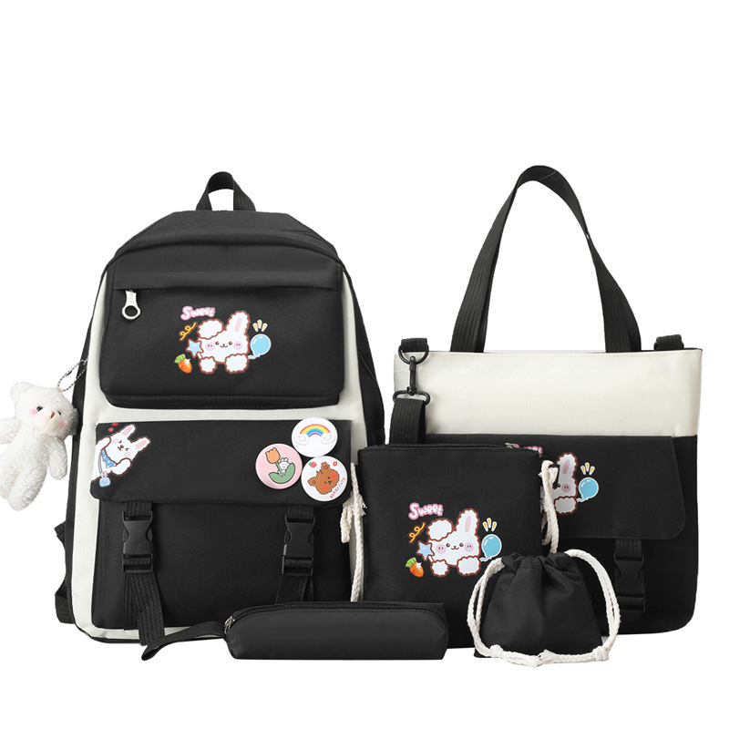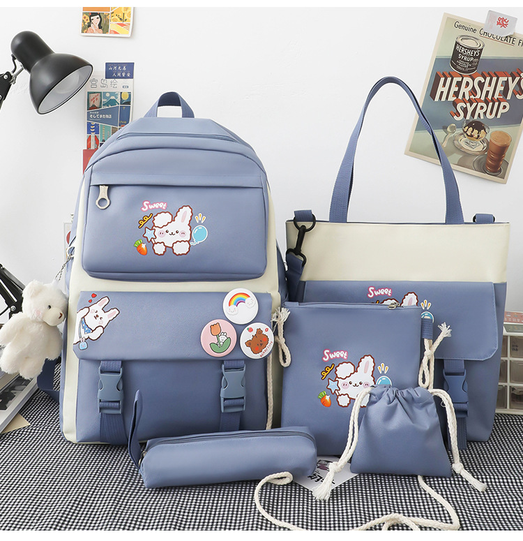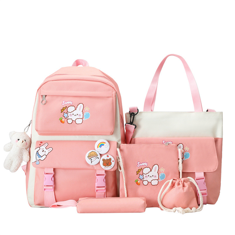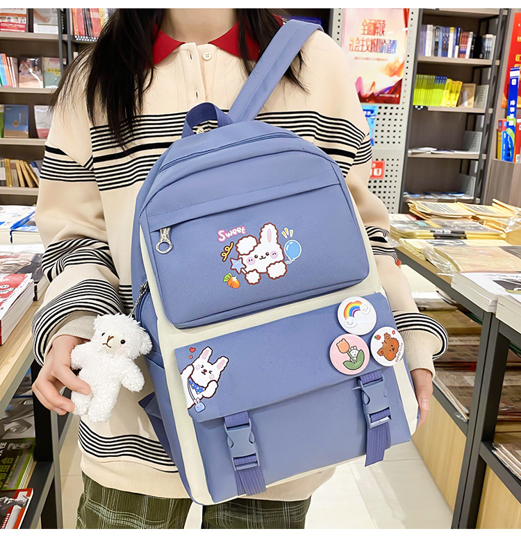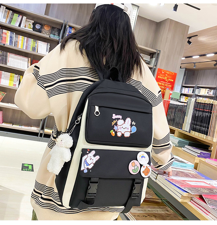新款大容量韩版学生书包女小学生补课双肩包五件套中学生休闲背包