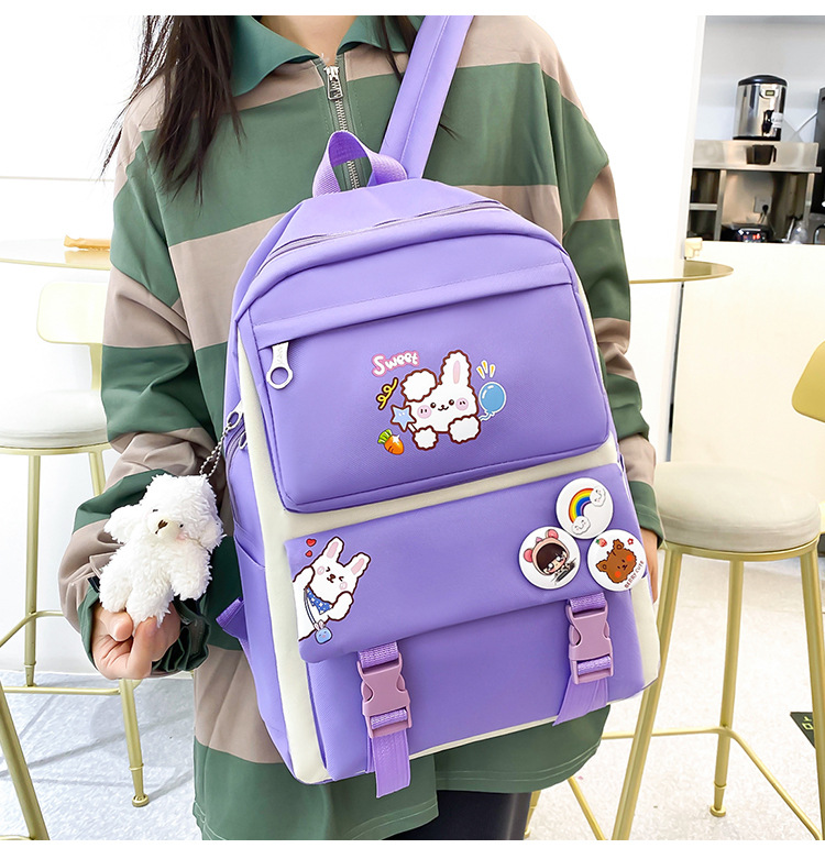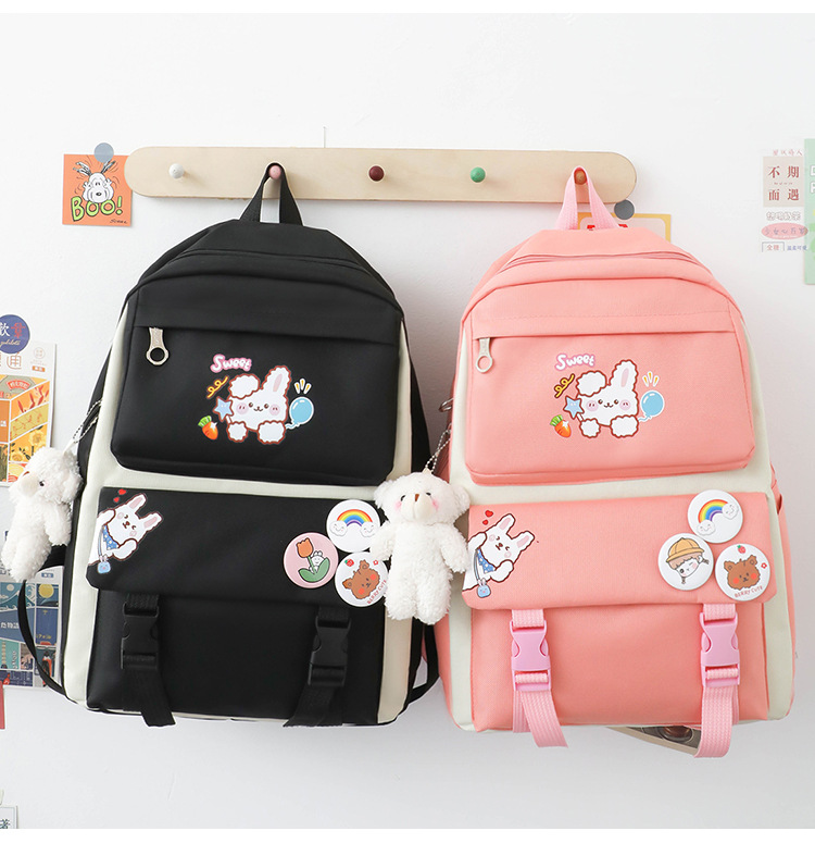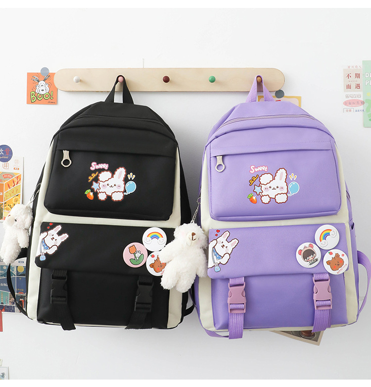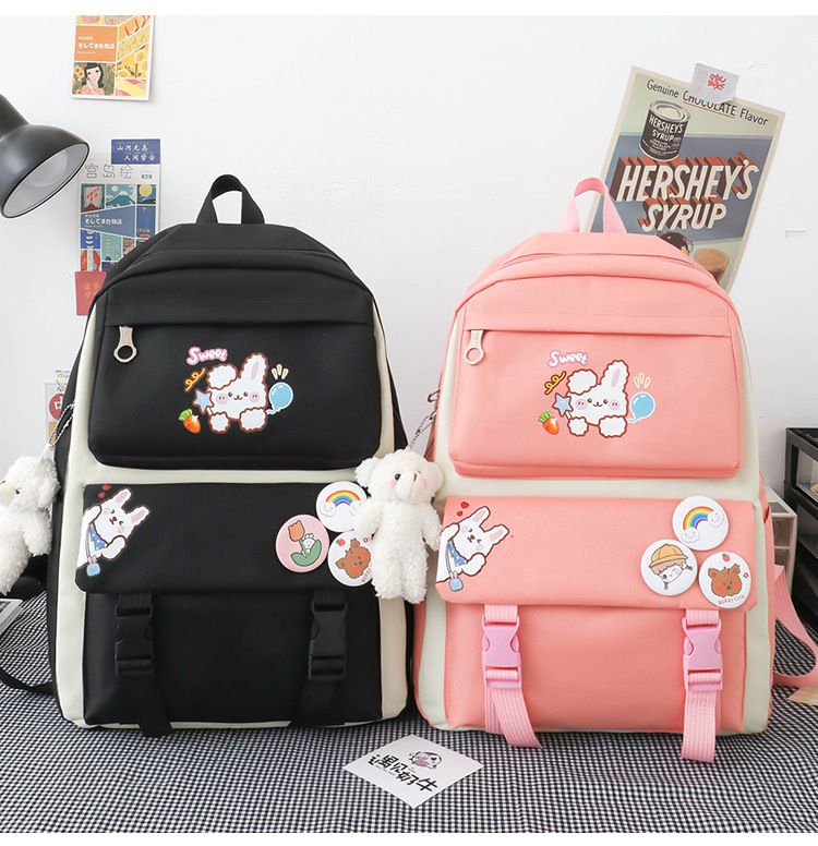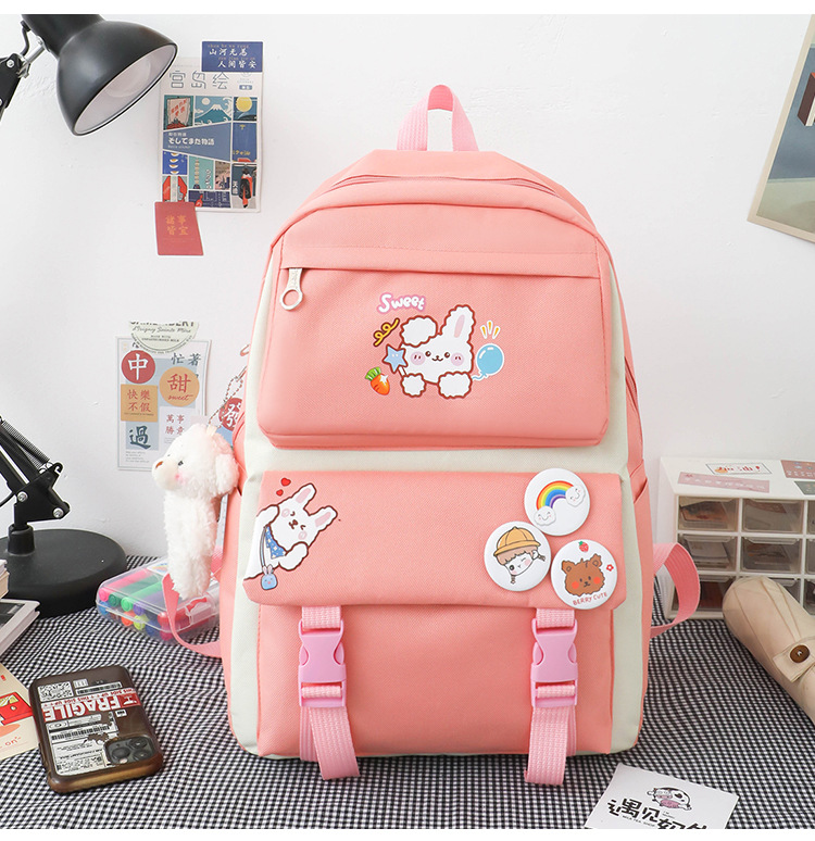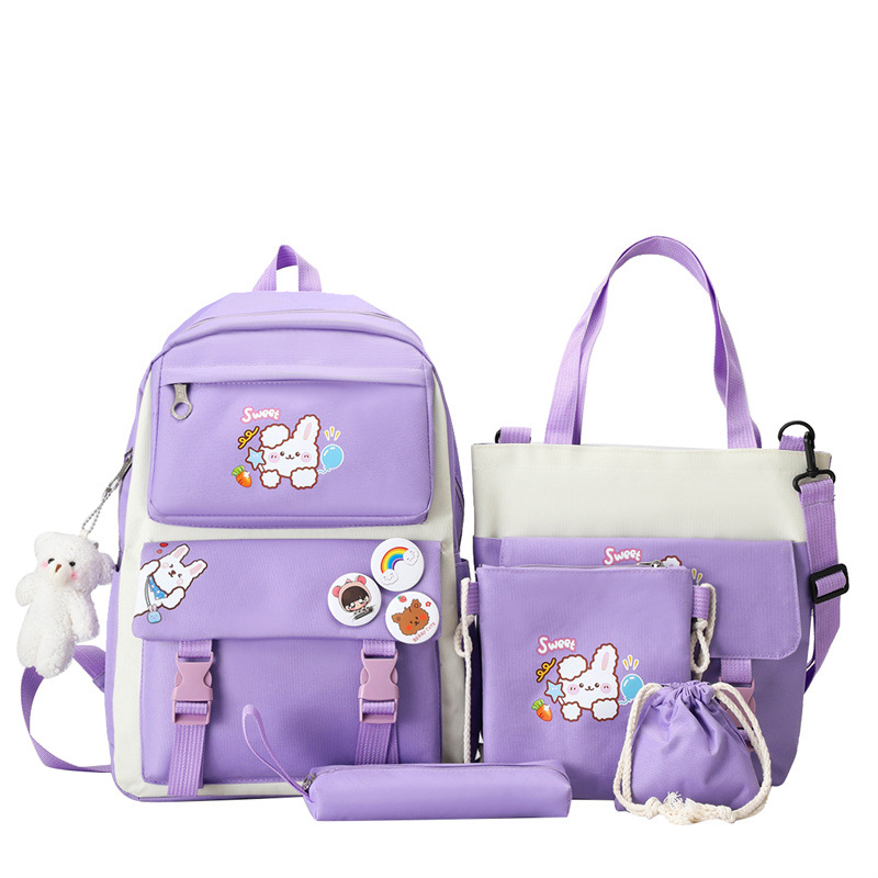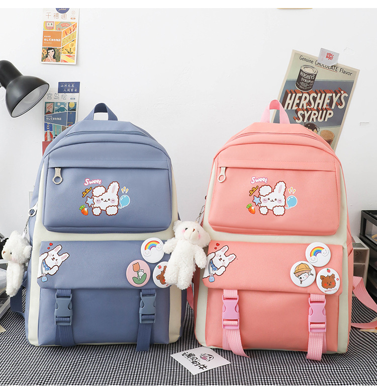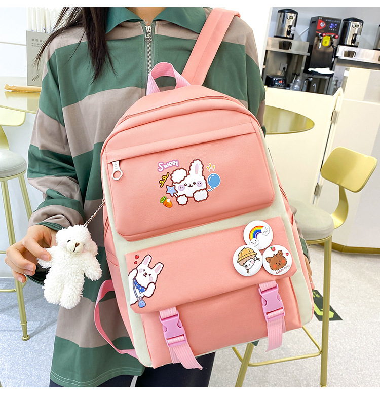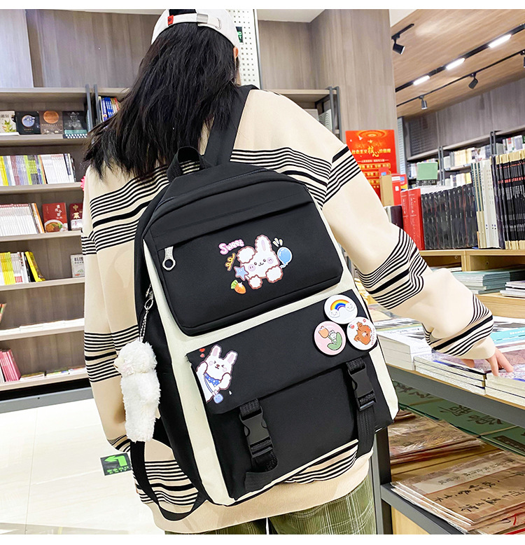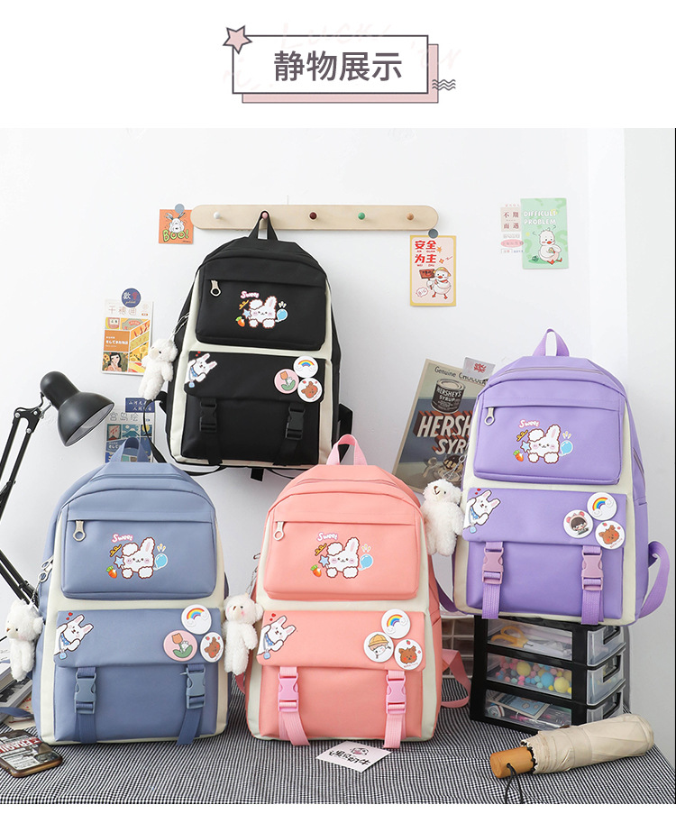 新款大容量韩版学生书包女小学生补课双肩包五件套中学生休闲背包