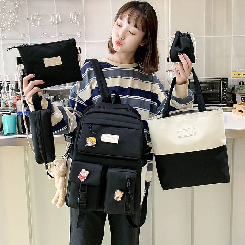 韩版ins书包女高中校园背包原宿风大容量帆布大学生双肩包女定 制
