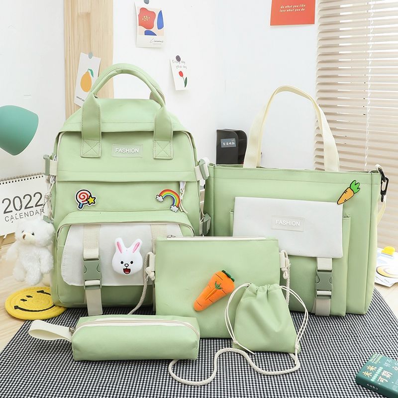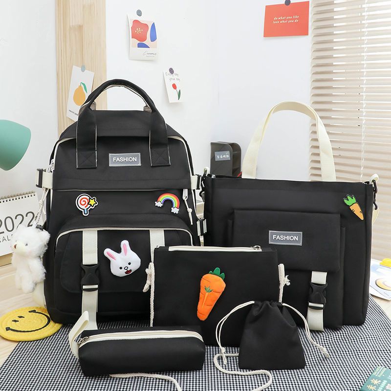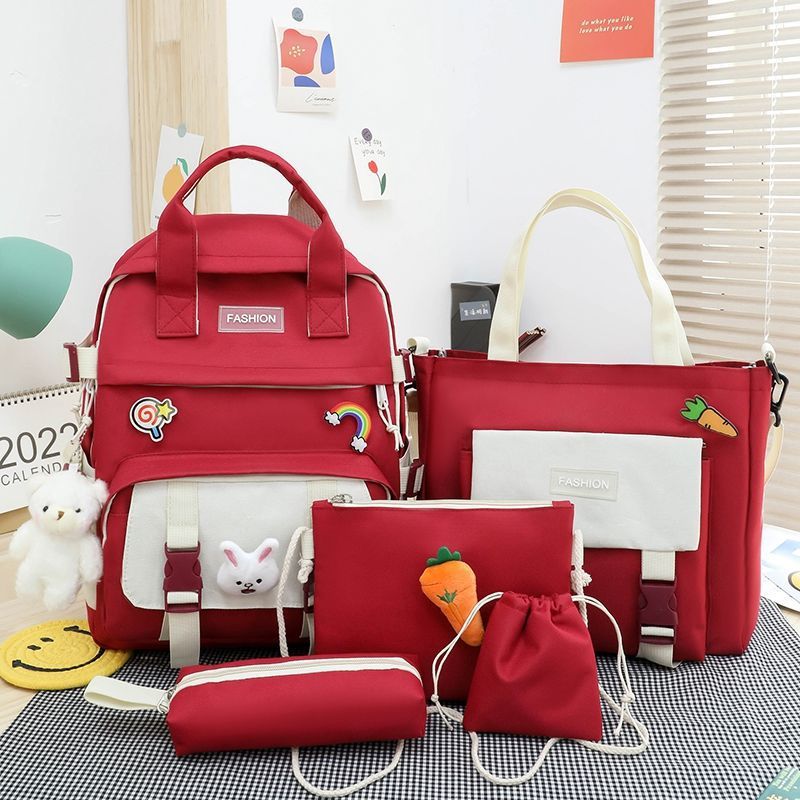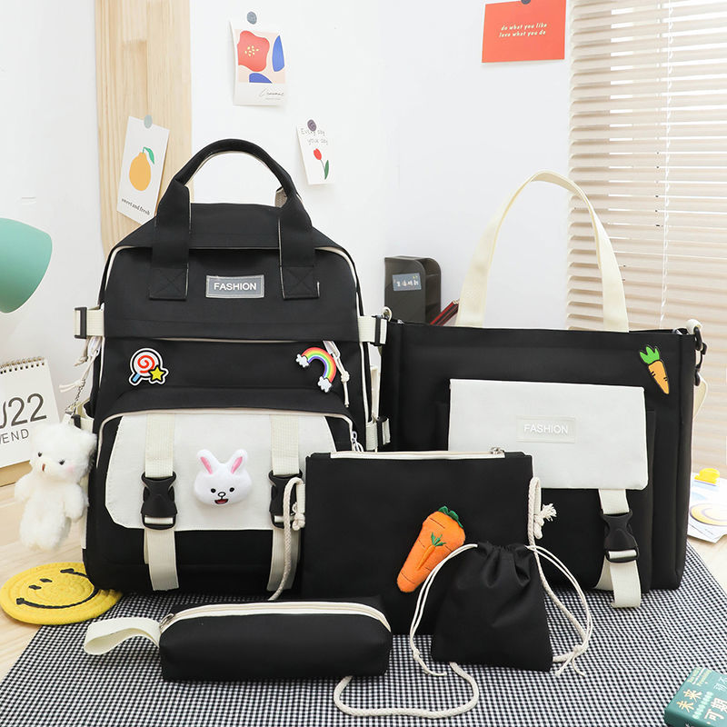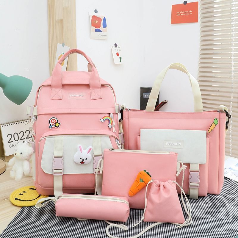 五件套书包女韩版撞色原宿大容量手提背包轻便小学生双肩跨境批发