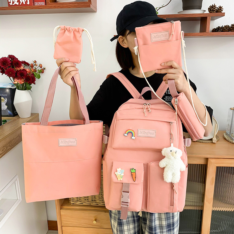 新款小学生书包女韩版原宿风大容量校园五件套女生背包学生双肩包