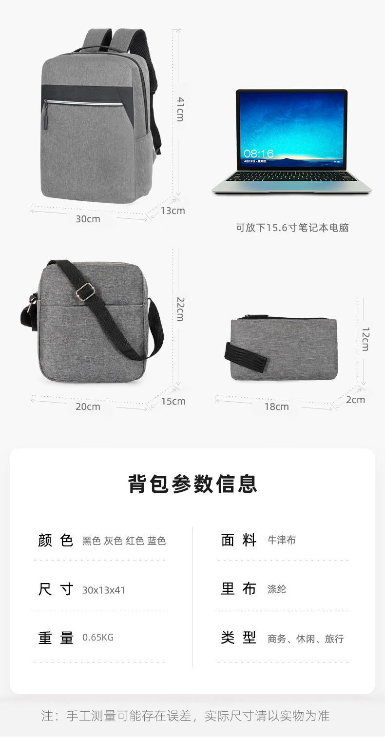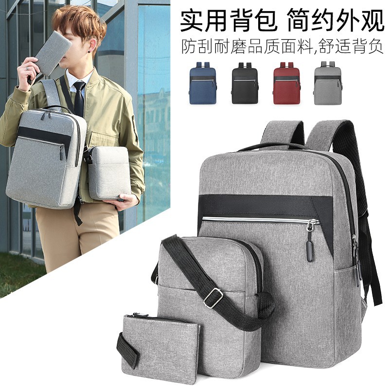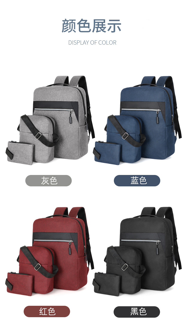 新款简约时尚拼色双肩包三件套休闲男士单肩包大学生书包潮流背包