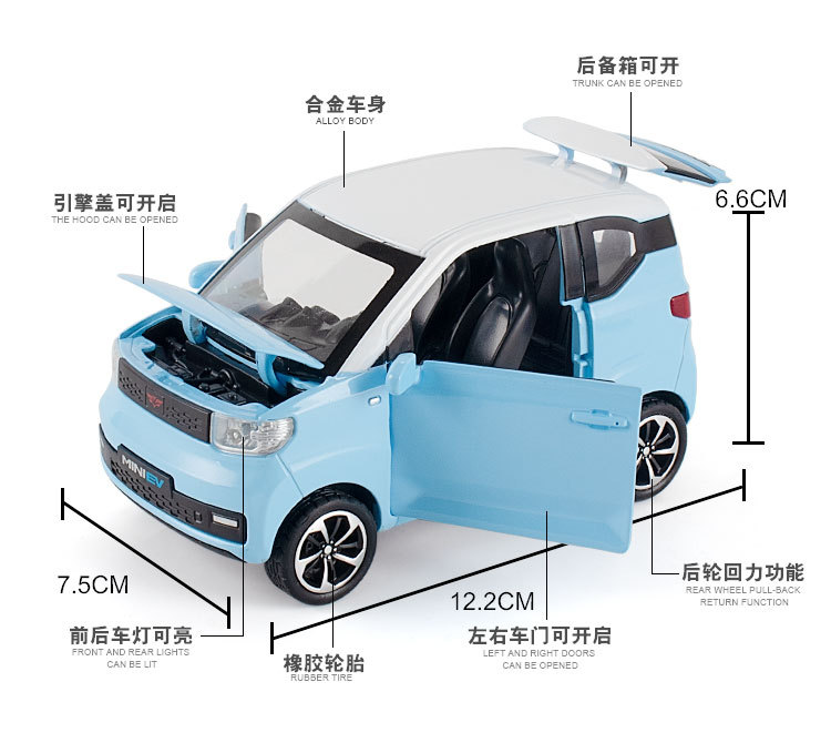 1:24菱宏光mini车模EV合金汽车模型声光回力玩具车仿真车载收藏款