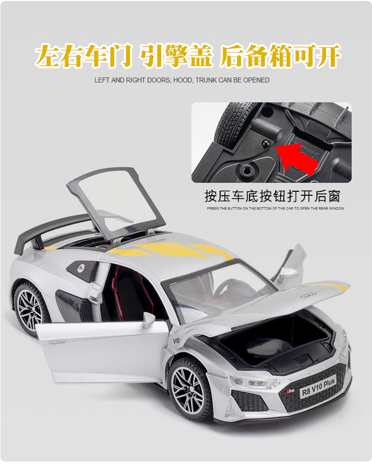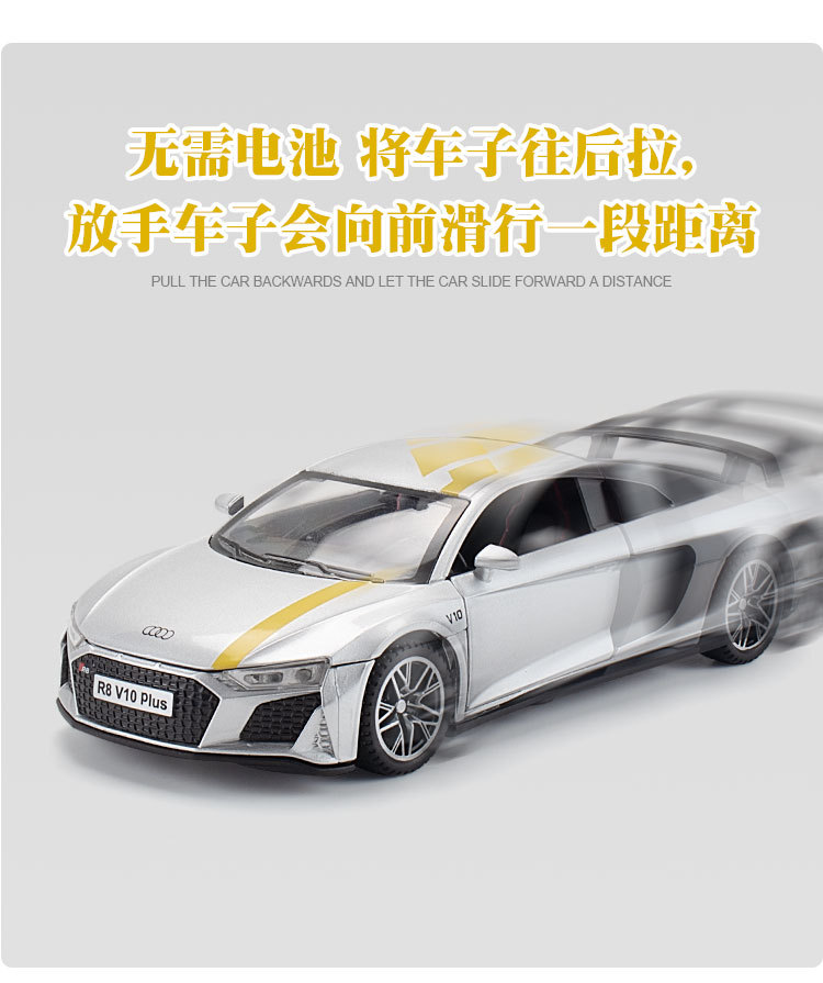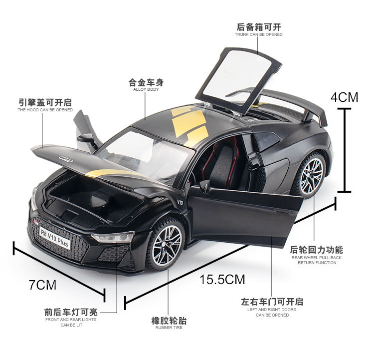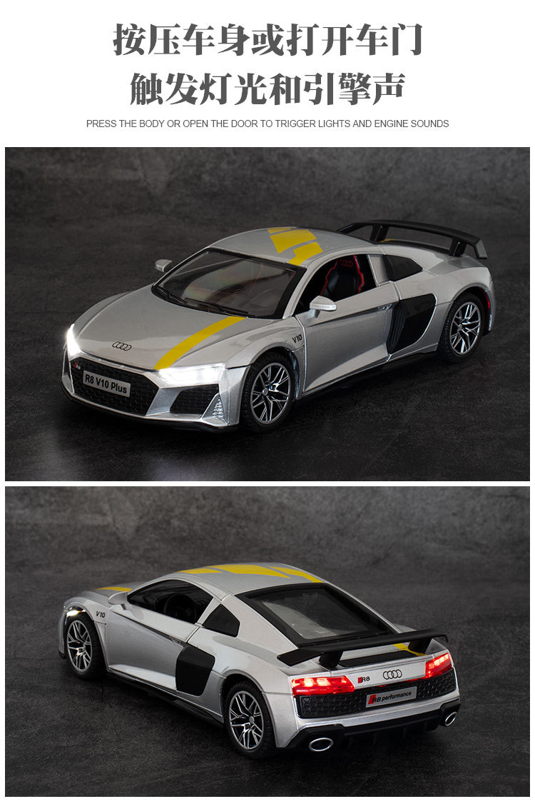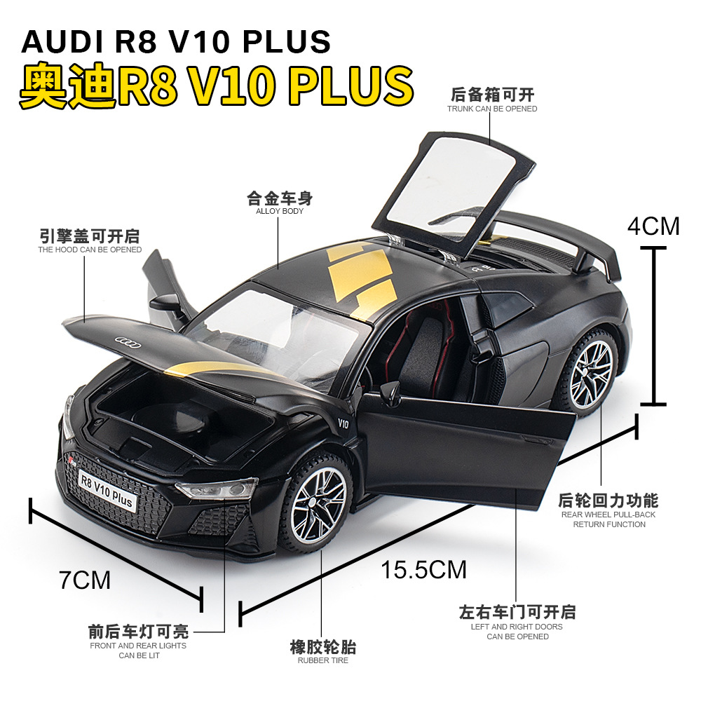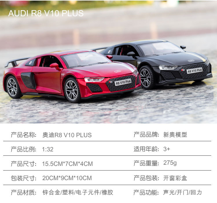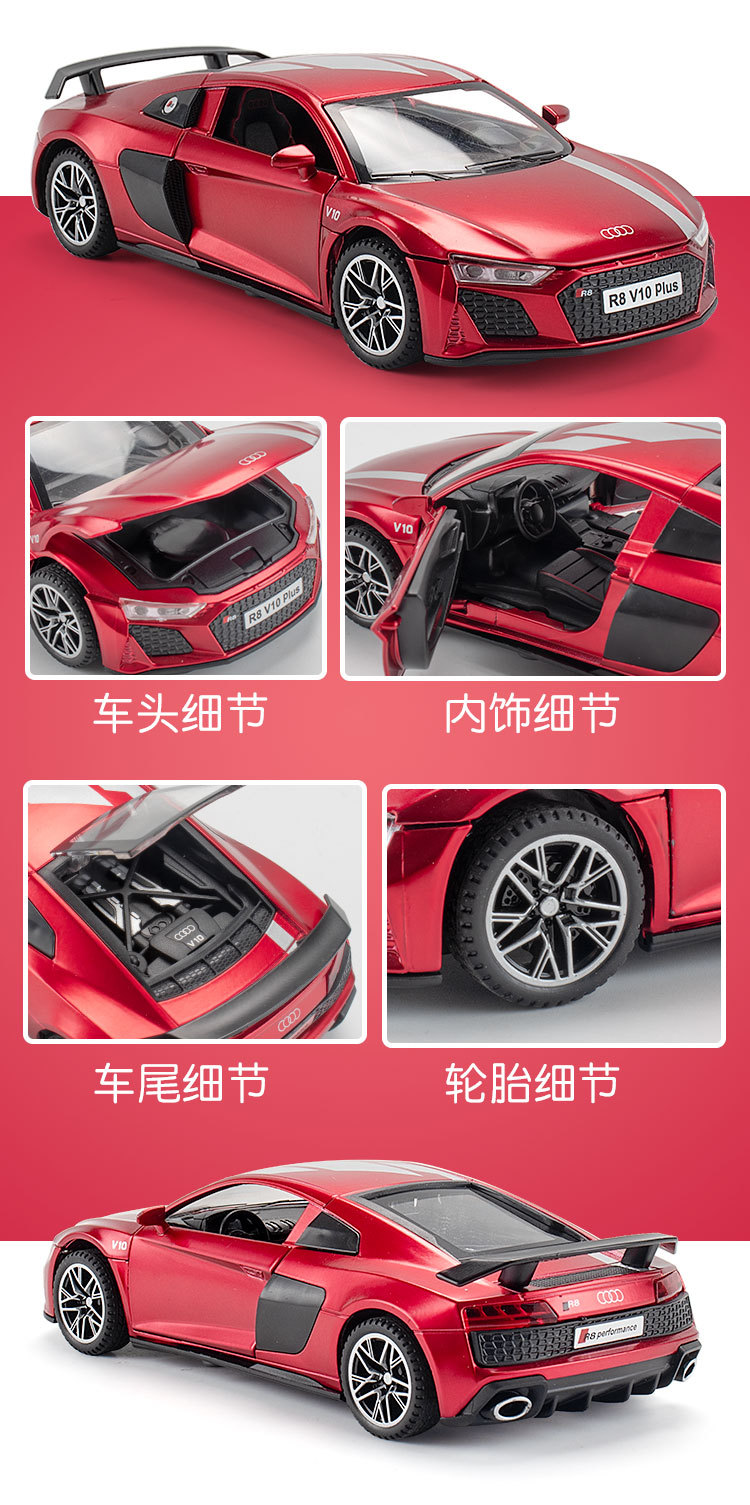1:32奥迪R8V10PLUS赛车仿真合金玩具车男孩汽车模型勒芒GT模型