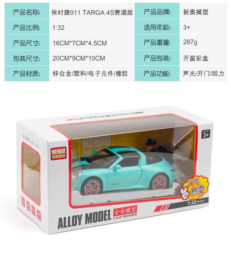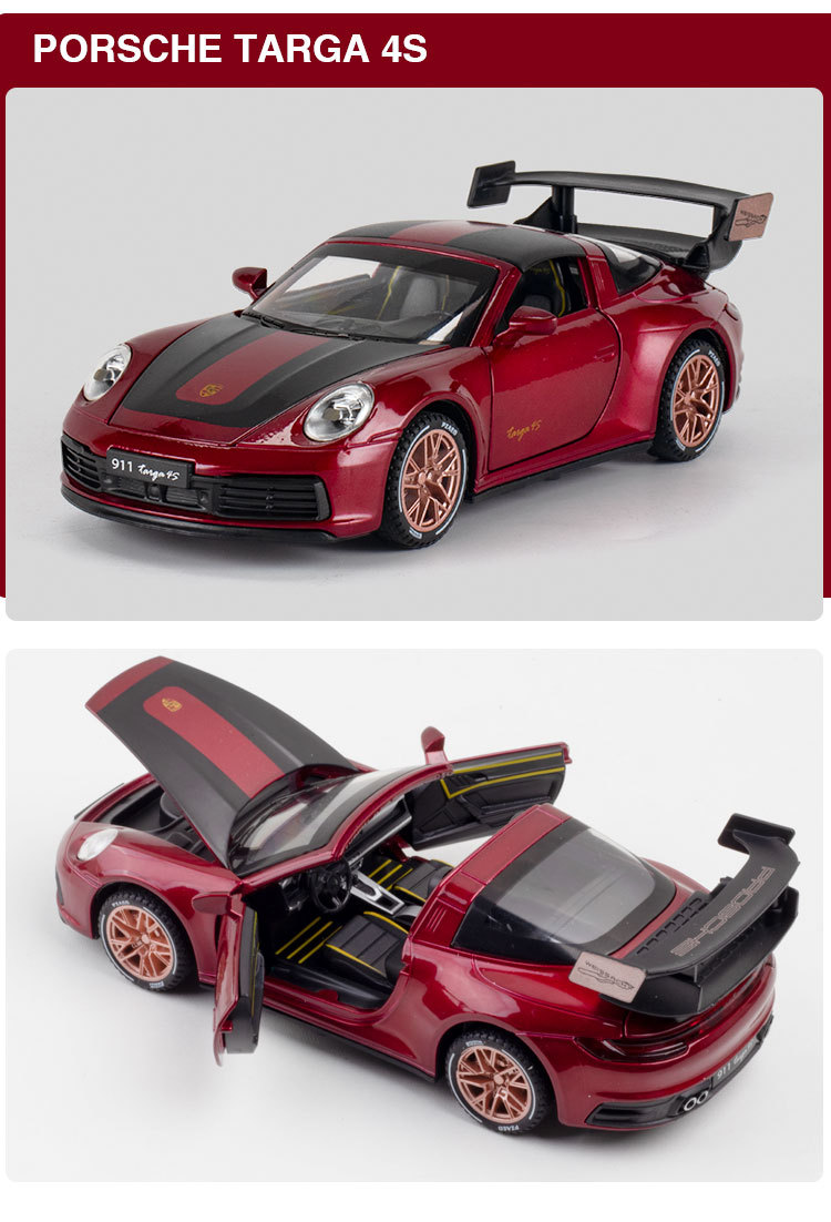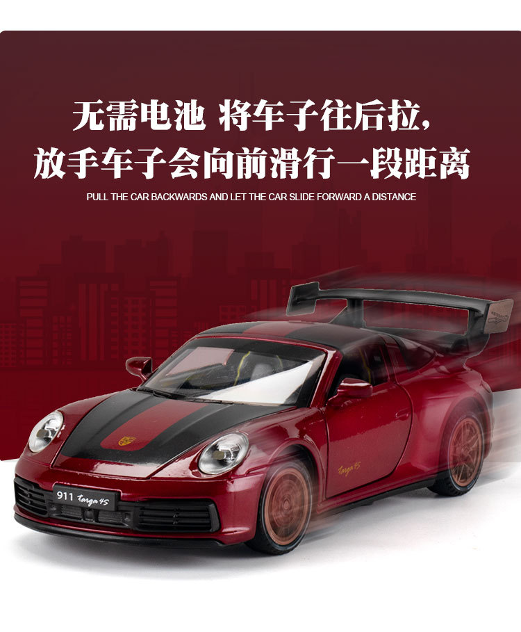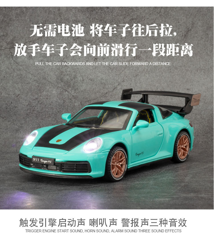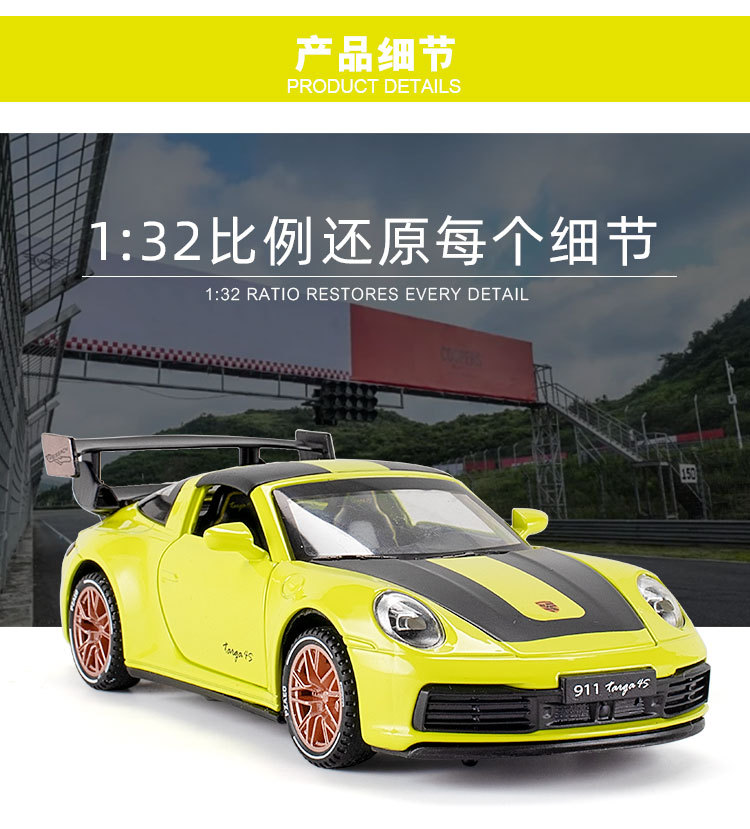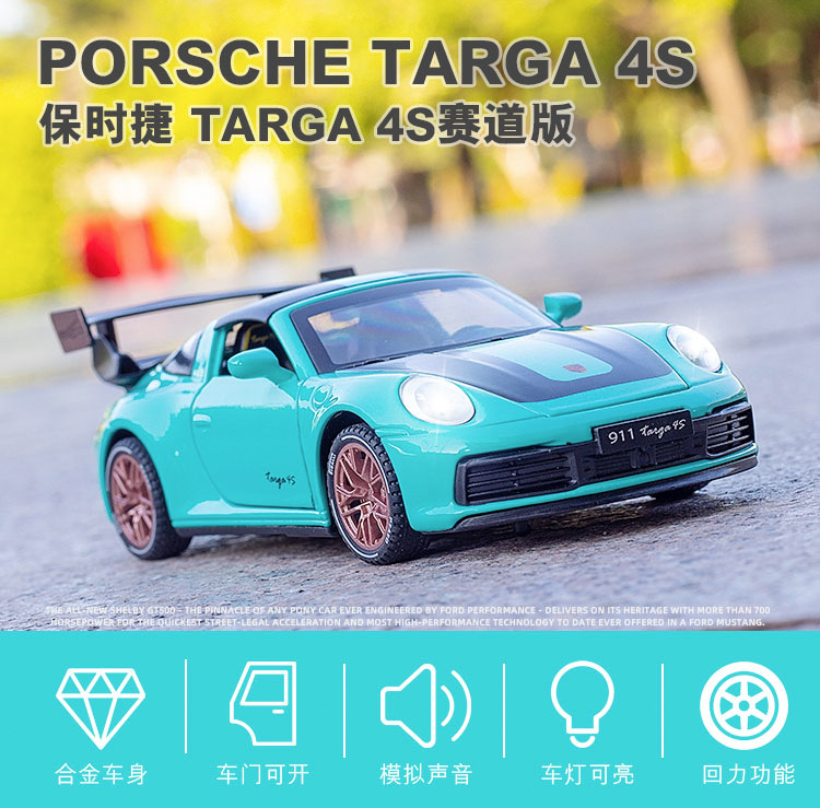 1:32保时捷911Targa4s赛道版汽车模型男孩金属玩具车收藏仿真