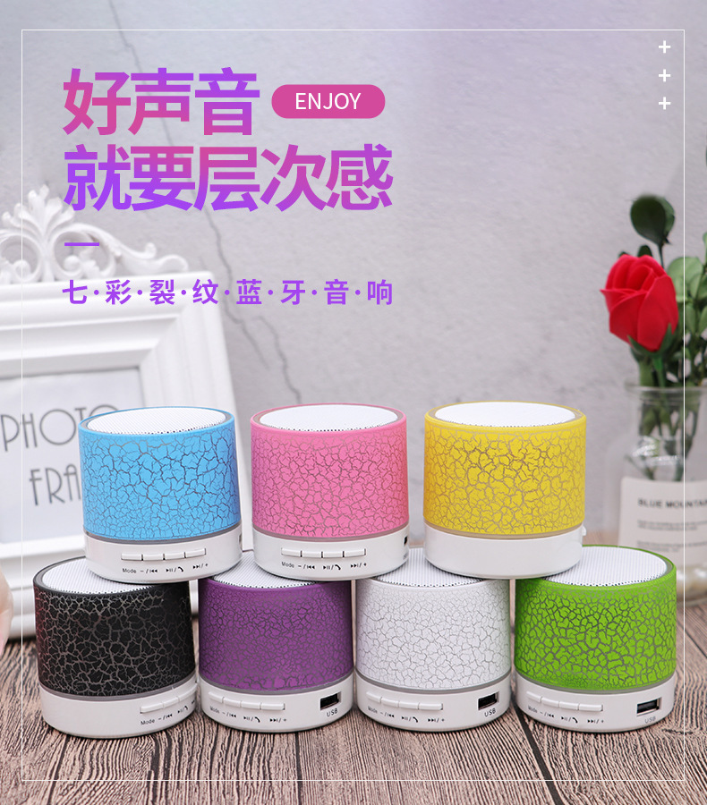 新款迷你裂纹蓝牙音响 便携式插卡低音炮音响led发光无线音箱礼品