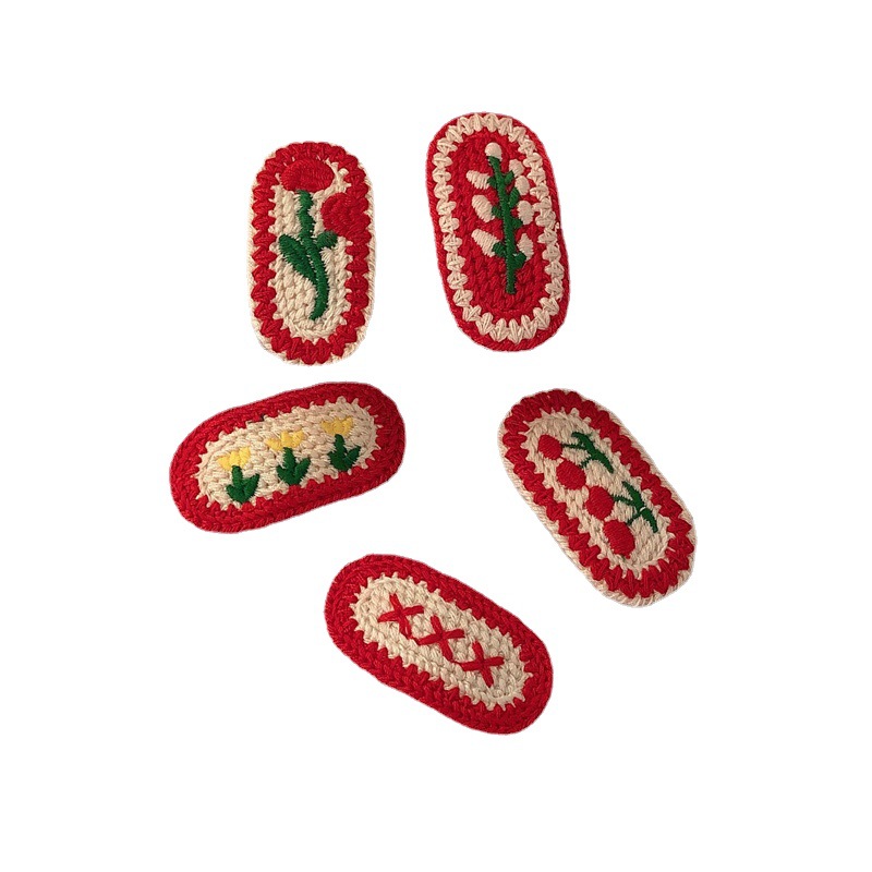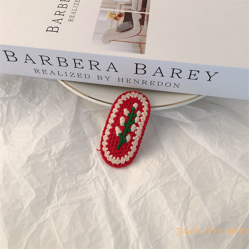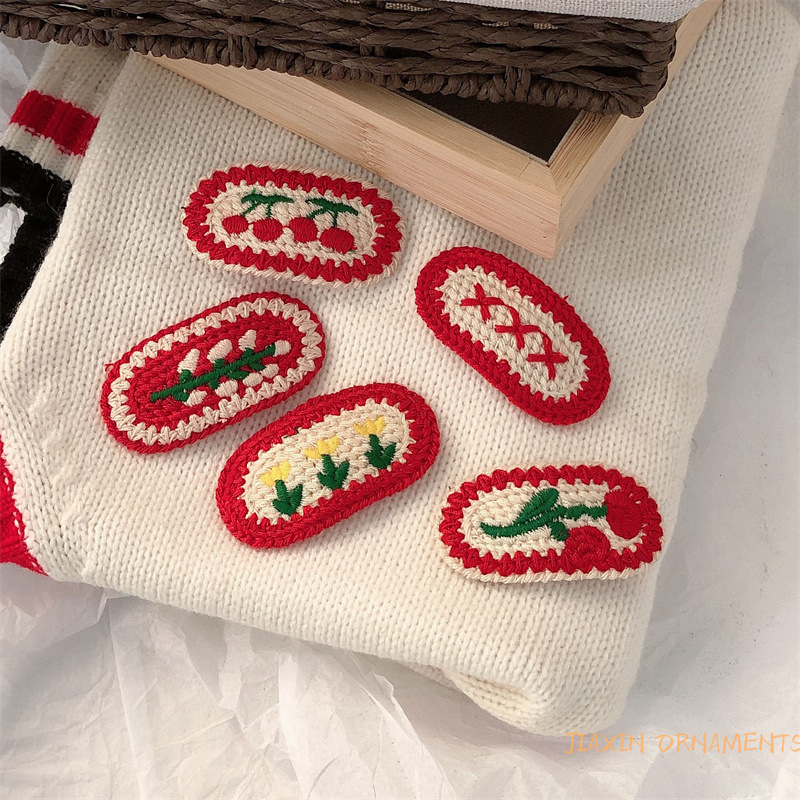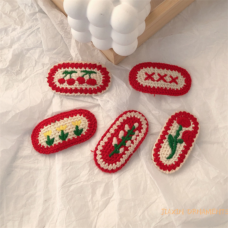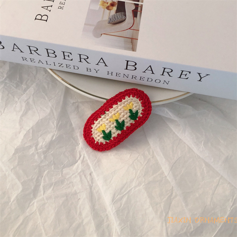 红色毛线花朵发夹女可爱前额碎发侧边刘海夹子甜美发卡BB夹头饰